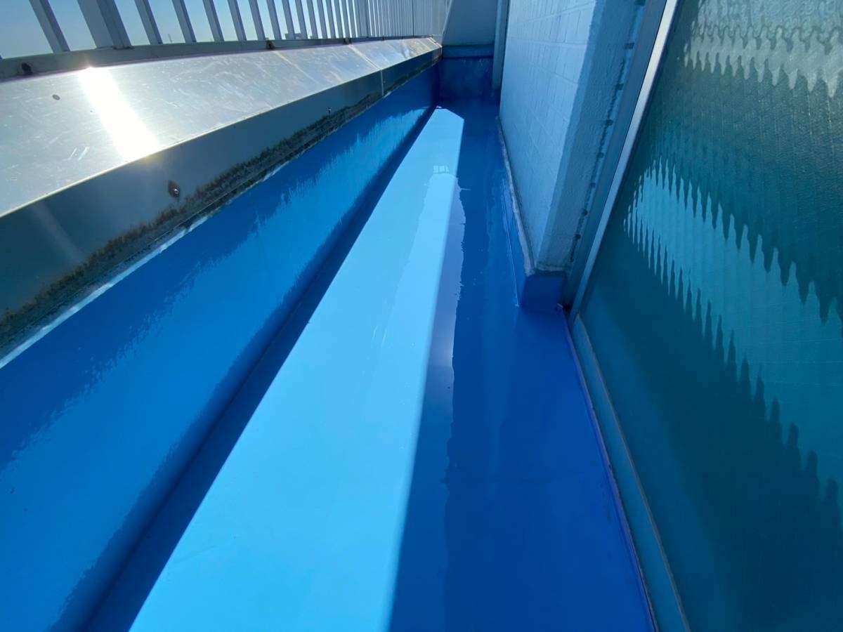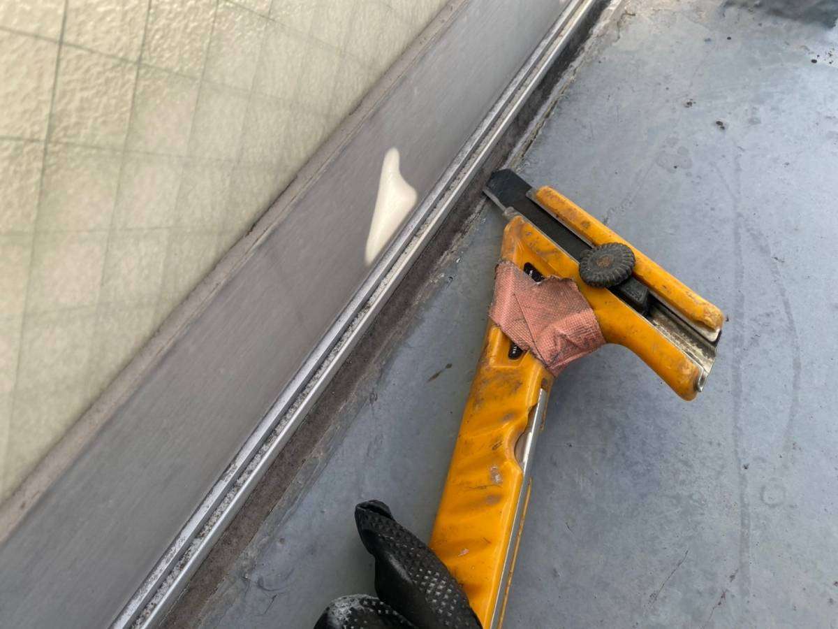 名東区Rマンション様の昨日の作業内容は、13階東面のベランダのシーリング作業とプライマー塗布・ウレタン樹脂1層目、2層目塗装作業を行っています。