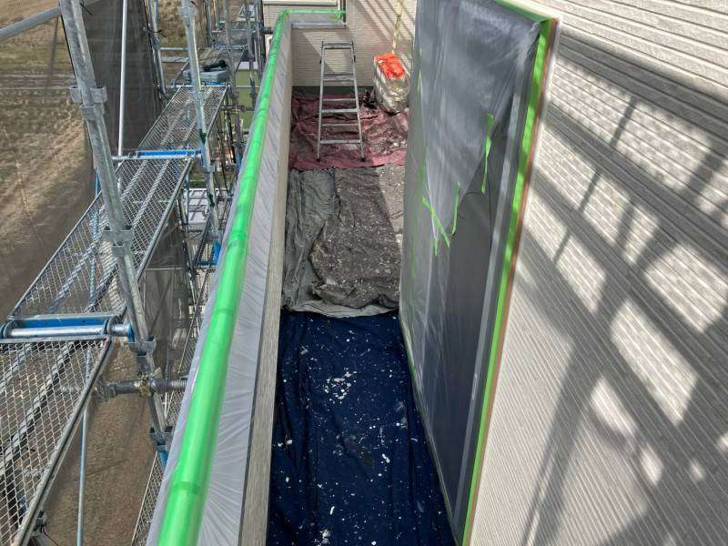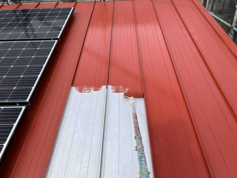 昨日の作業内容は、養生作業・屋根の下塗り塗装作業を行っていました!