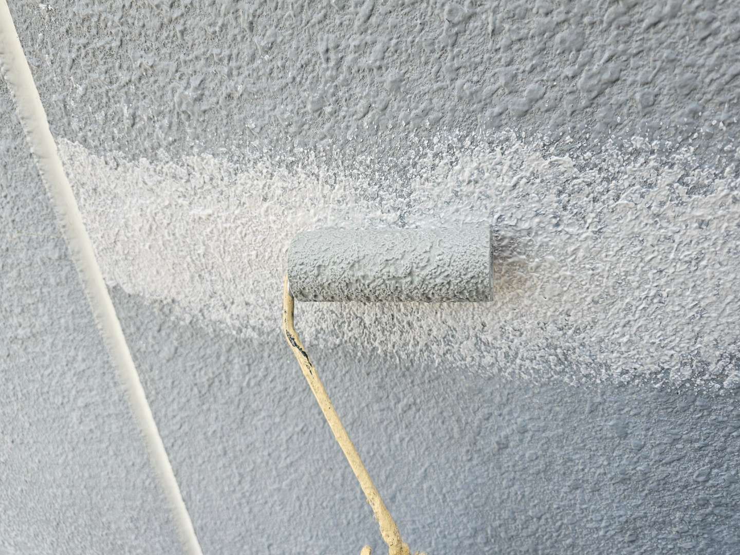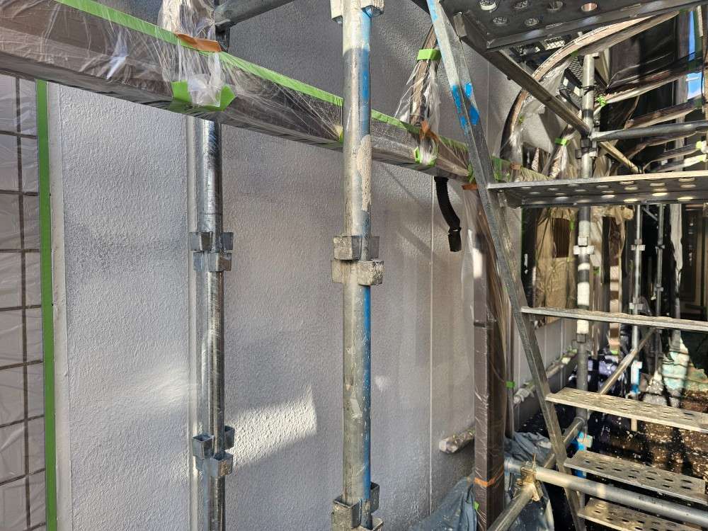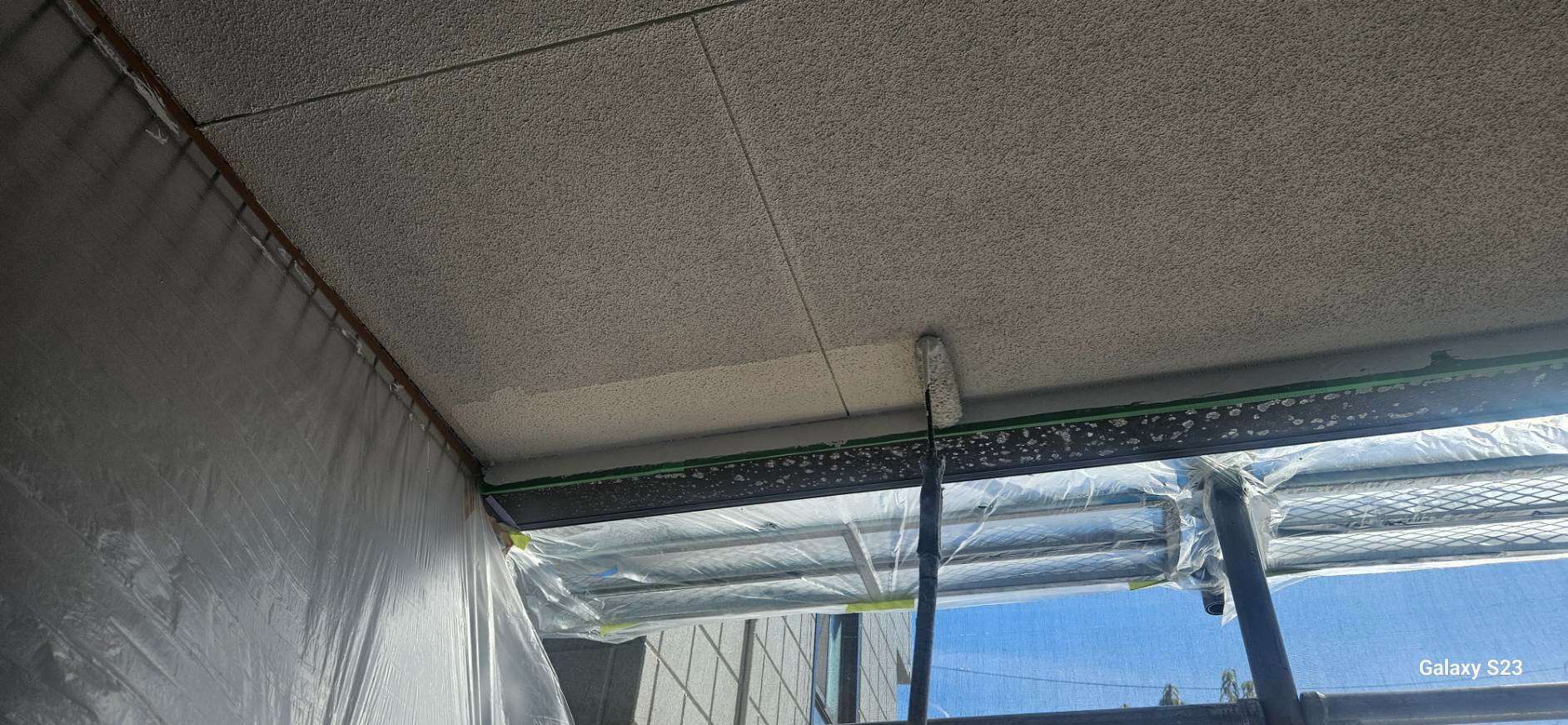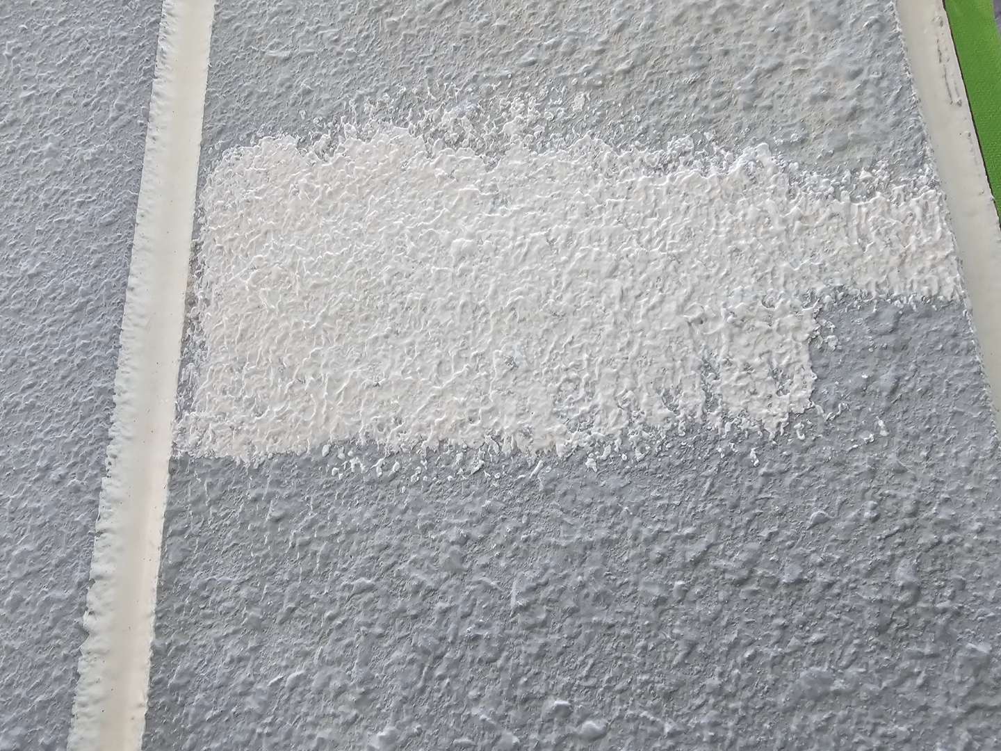 W様邸の作業は、クラックパテ補修後に柄付け作業・タイルの補修作業・外壁の下塗り塗装・屋根の中塗り塗装・軒天の上塗り1回目、2回目塗装作業を行っていました。