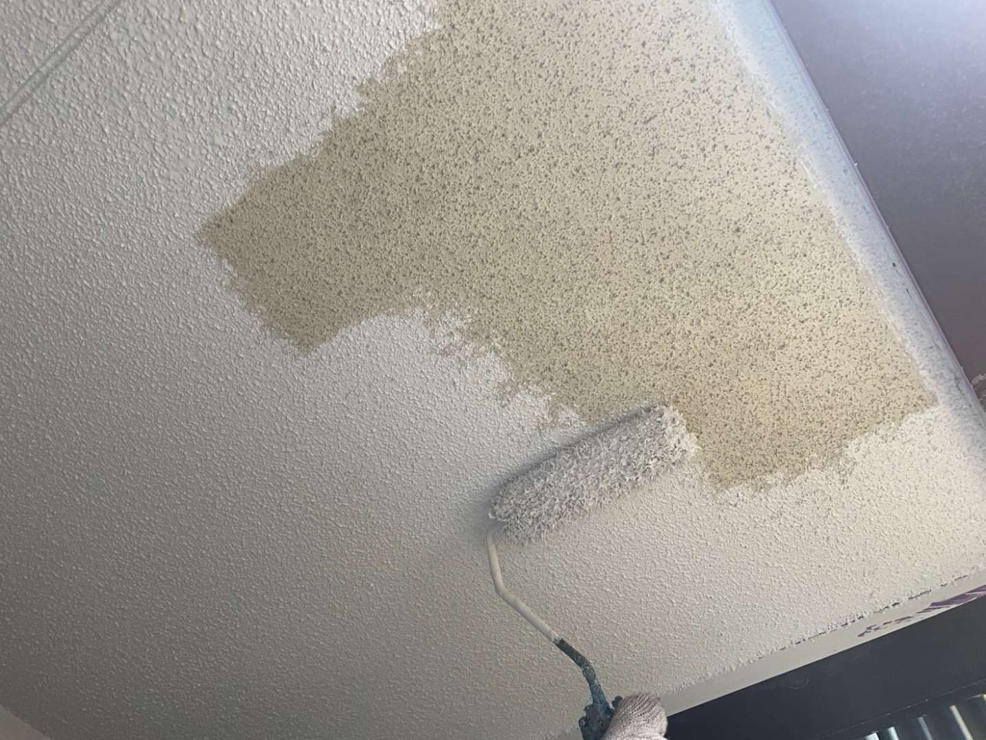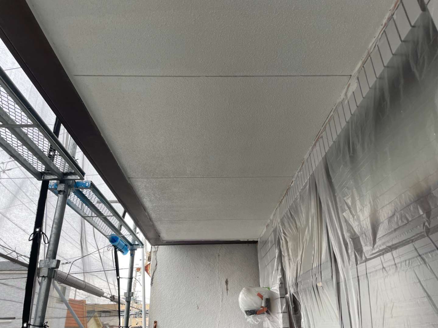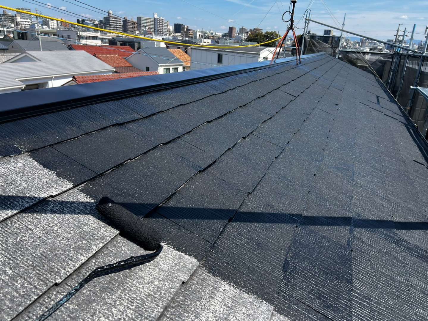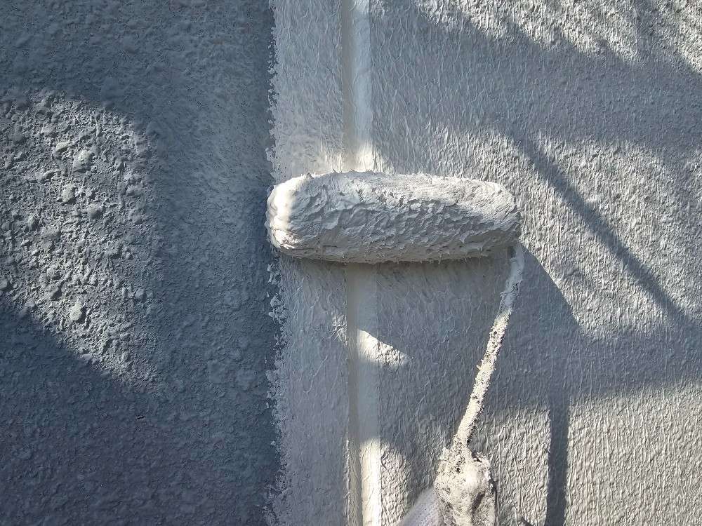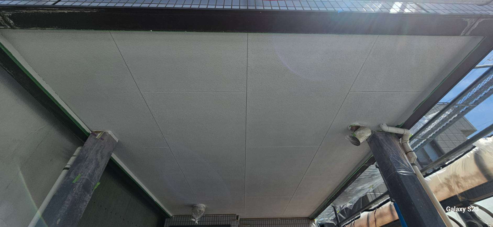 W様邸の作業は、クラックパテ補修後に柄付け作業・タイルの補修作業・外壁の下塗り塗装・屋根の中塗り塗装・軒天の上塗り1回目、2回目塗装作業を行っていました。