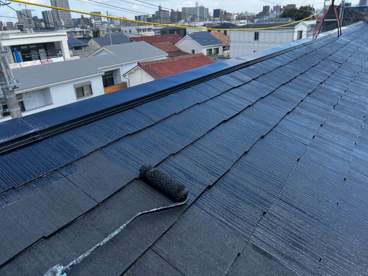 屋根上塗り塗装作業