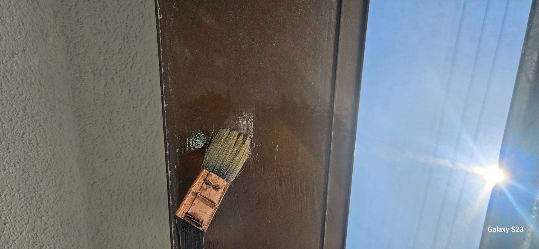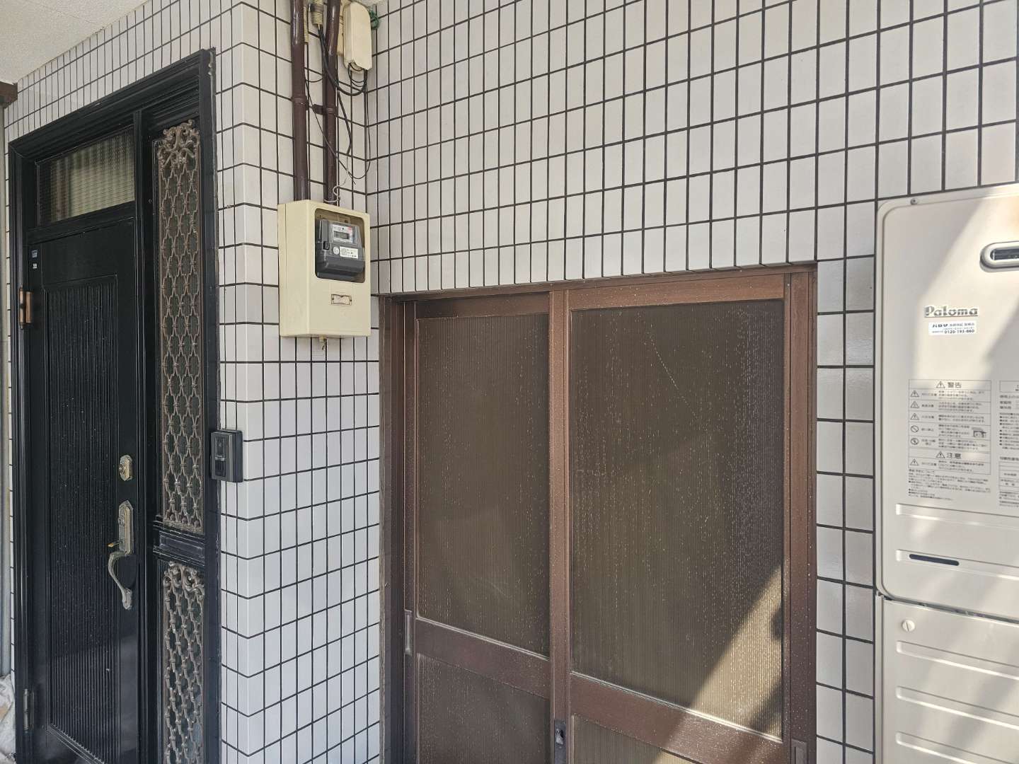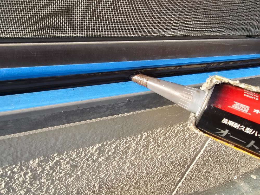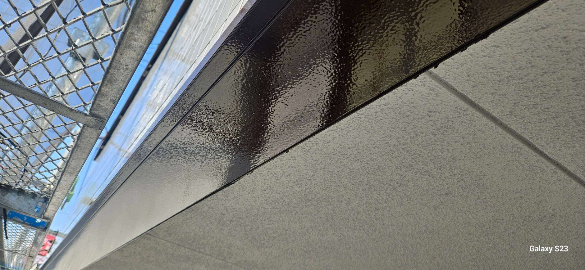 北区W様邸の昨日の作業内容は、タイル部のクリヤー2回目塗装と水切り部のケレン、プライマー塗装、上塗り1回目、2回目塗装、窓廻り面台部のコーキング補修、エアコンホースのまき直し作業を行っています。