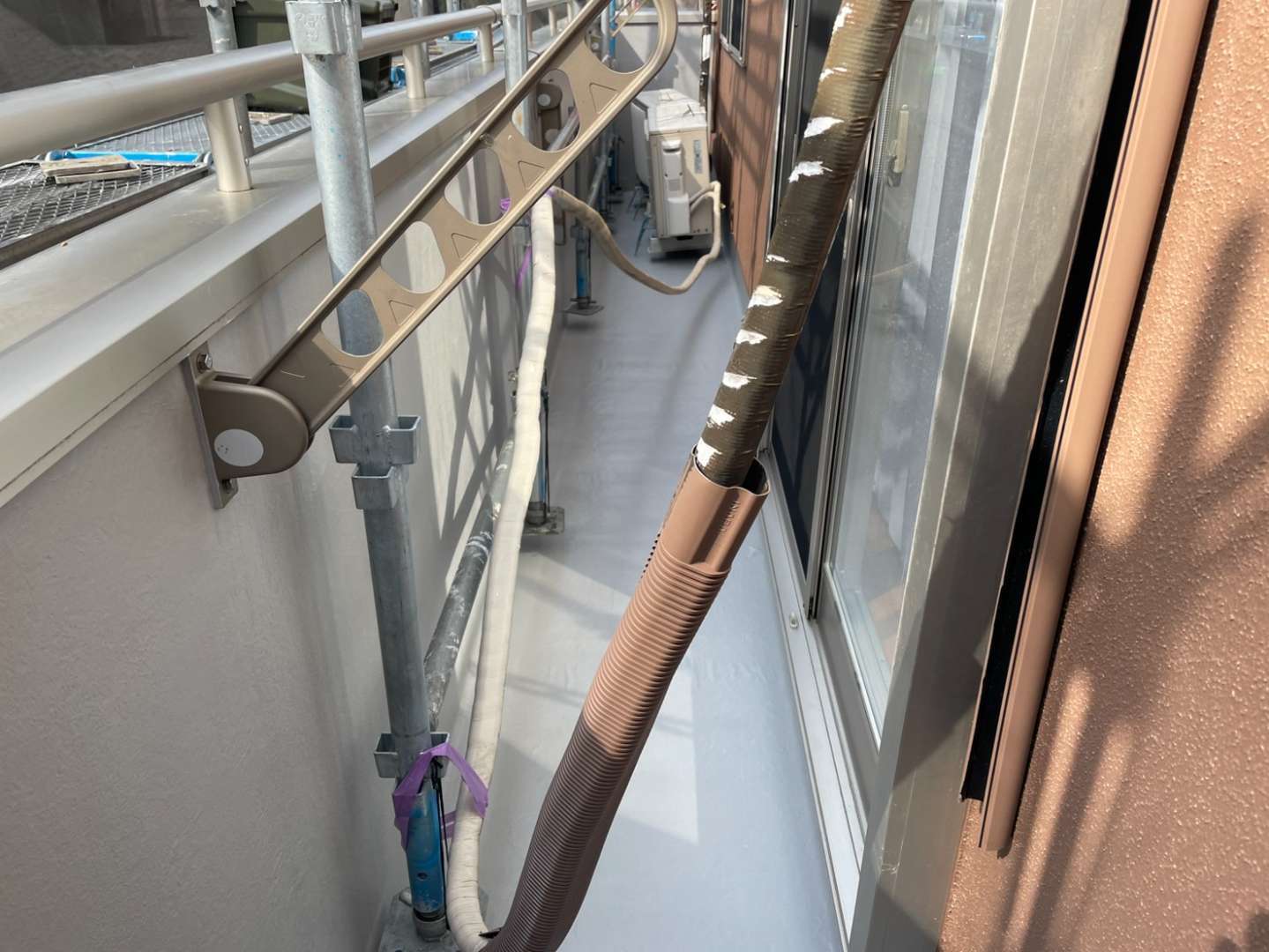 I様邸の昨日の作業は、ベランダのトップコート塗装作業・最終の塗装点検作業を行っていました。