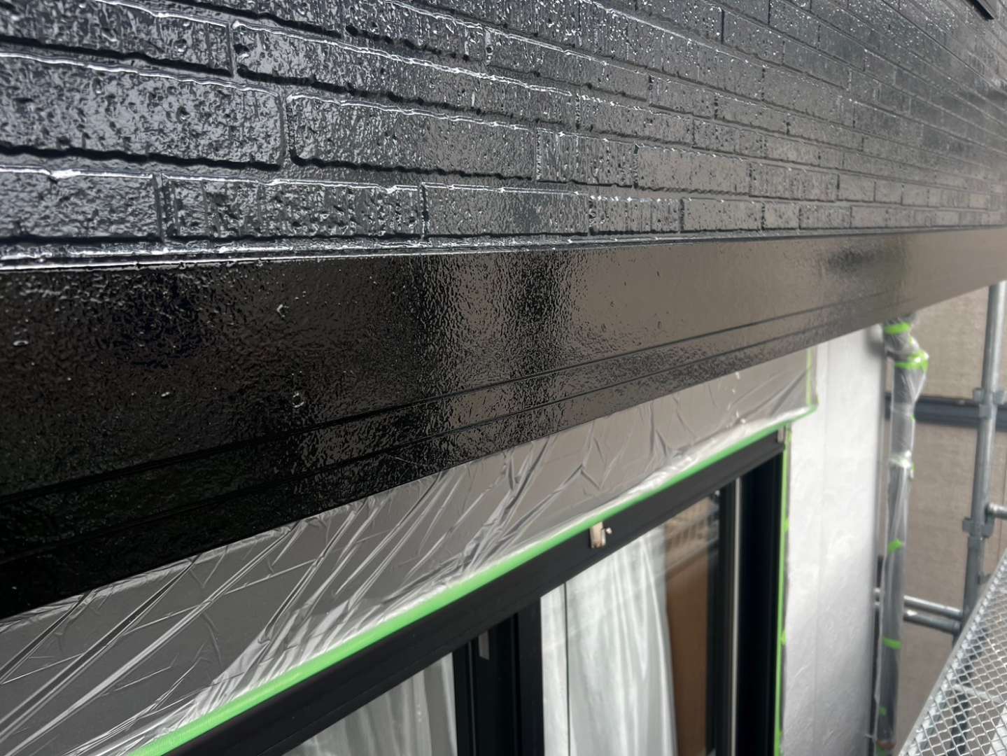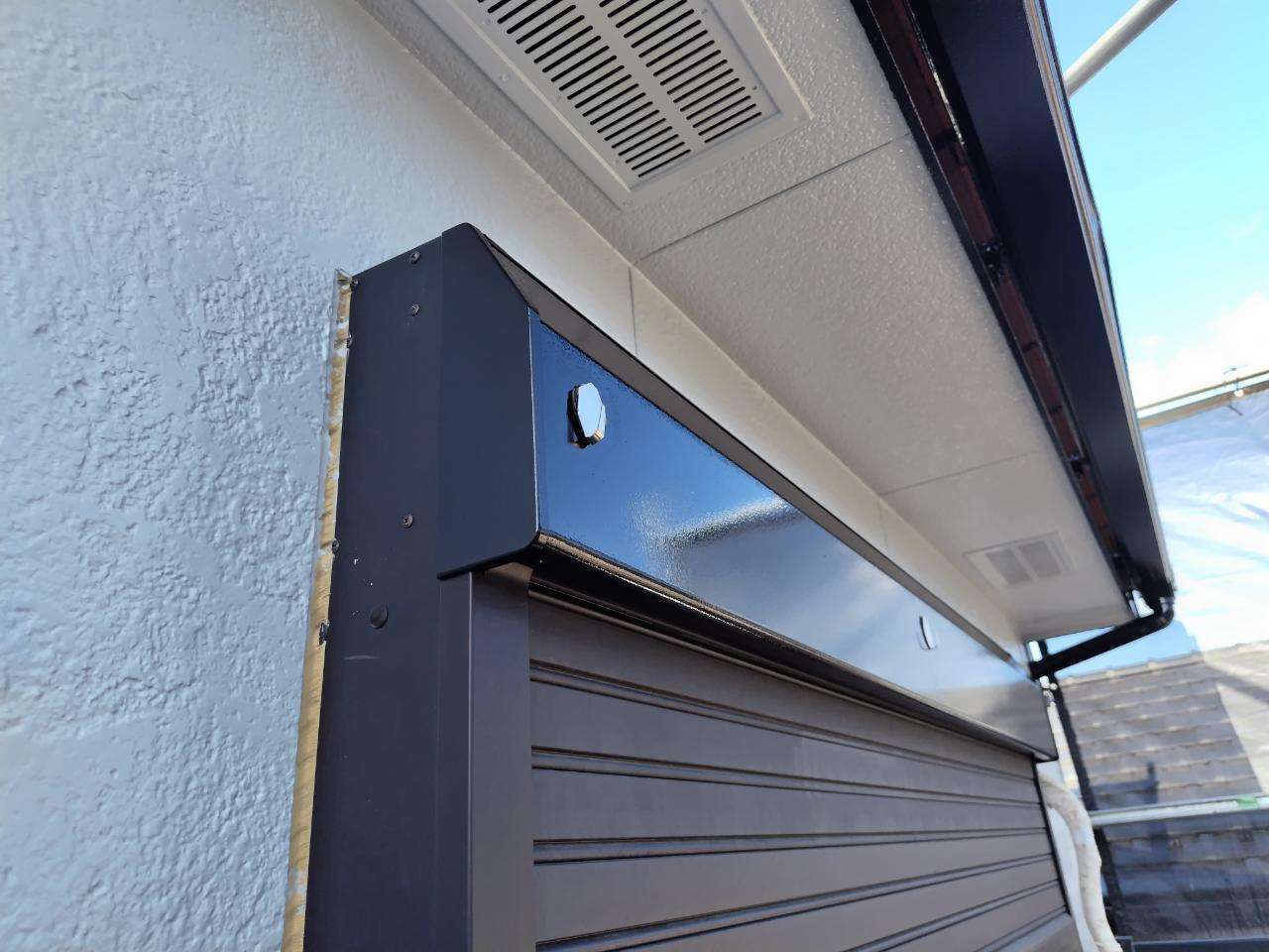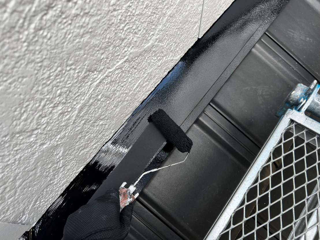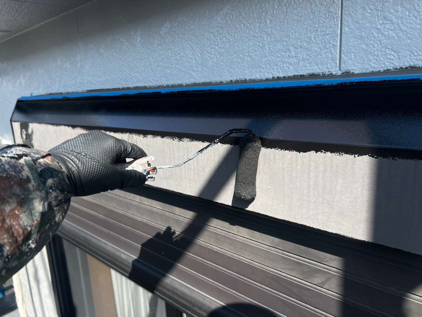 付帯部の下塗りは、破風板・帯板・シャッターボックス・庇・壁取り合い水切り・土台水切りを塗装しました。