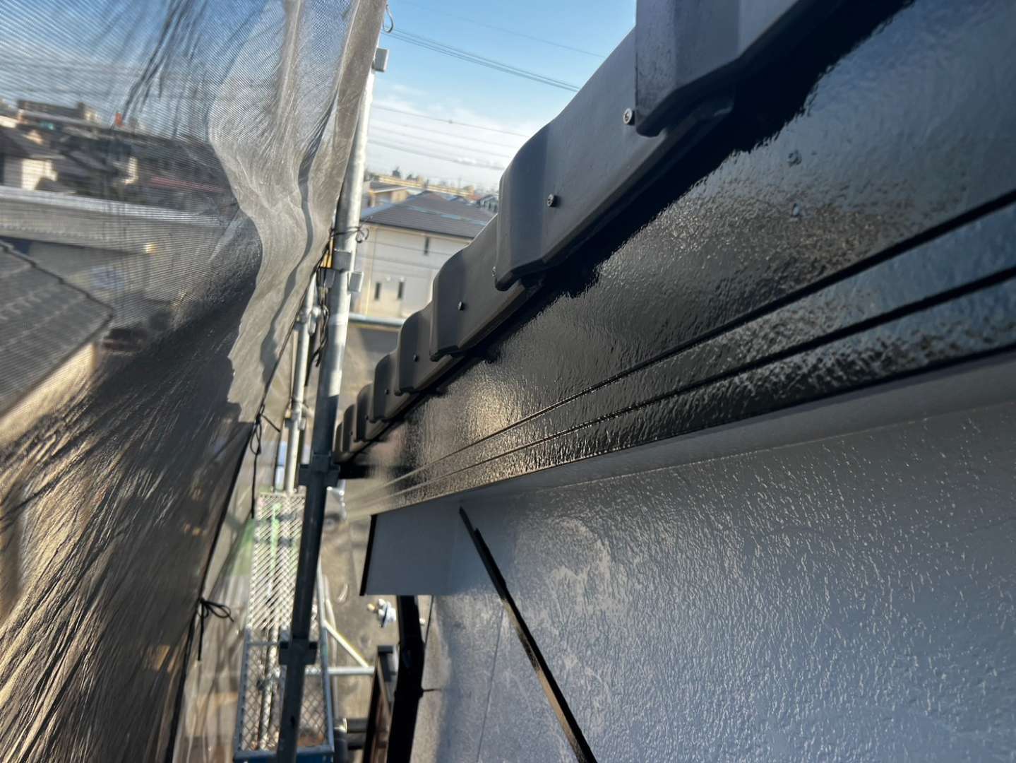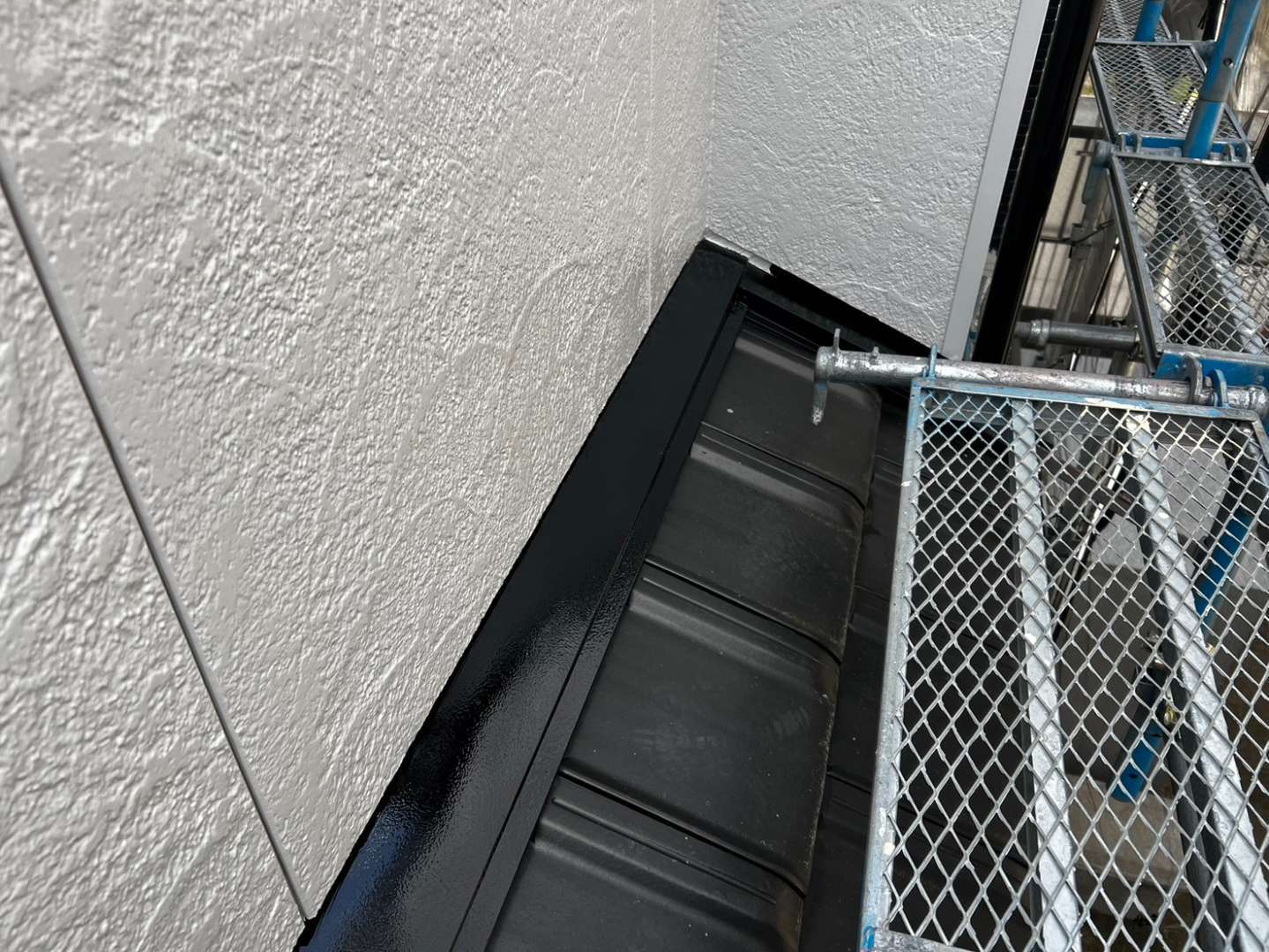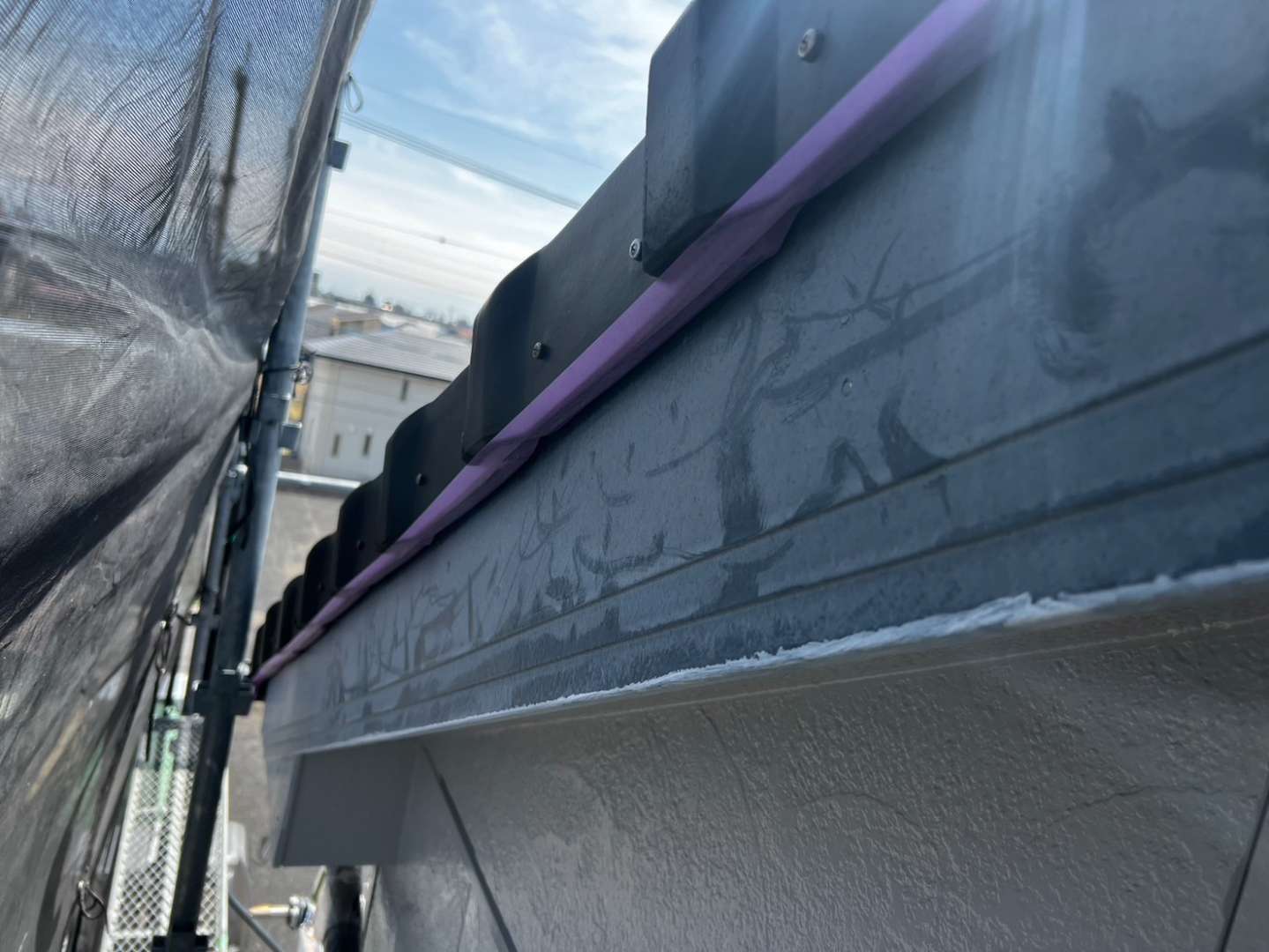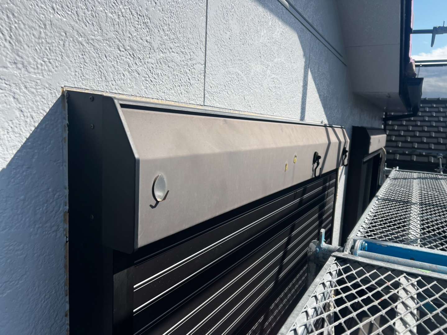 付帯部の下塗りは、破風板・帯板・シャッターボックス・庇・壁取り合い水切り・土台水切りを塗装しました。
