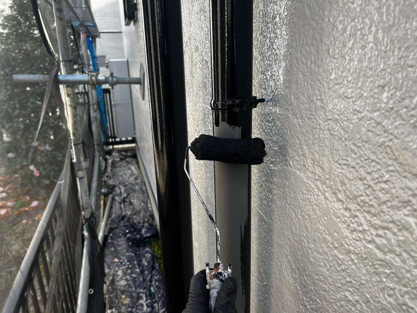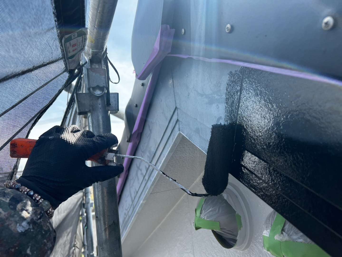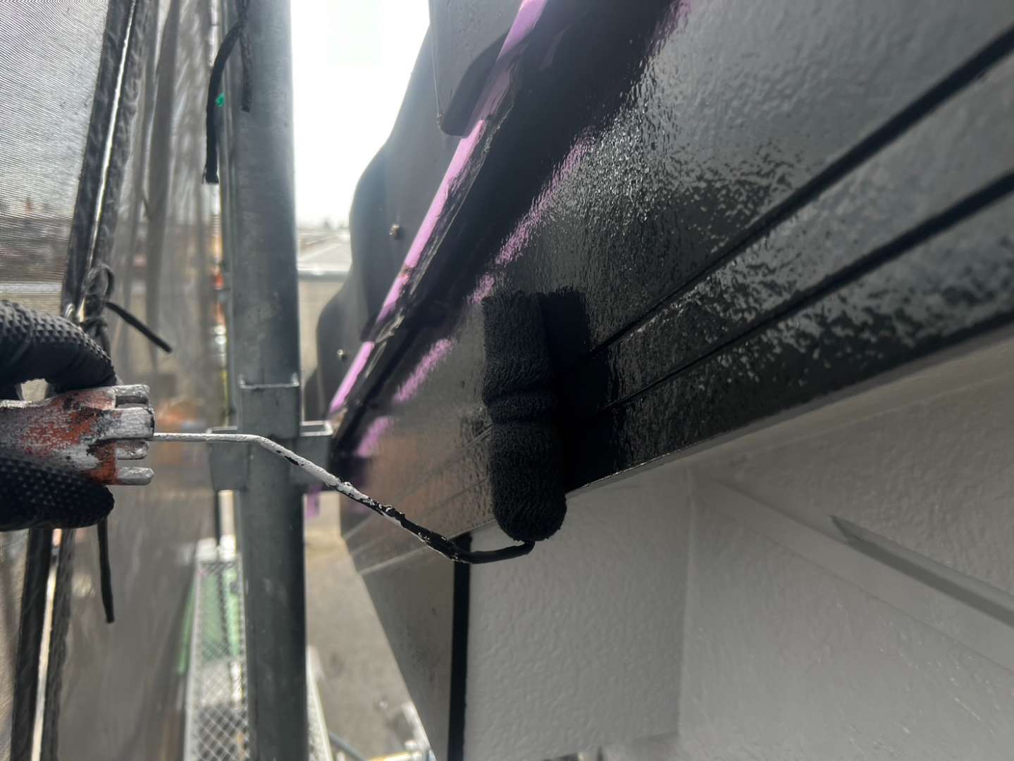 K様邸の昨日の作業は、付帯部の下塗り(錆止め含む)塗装、上塗り1回目・2回目塗装・