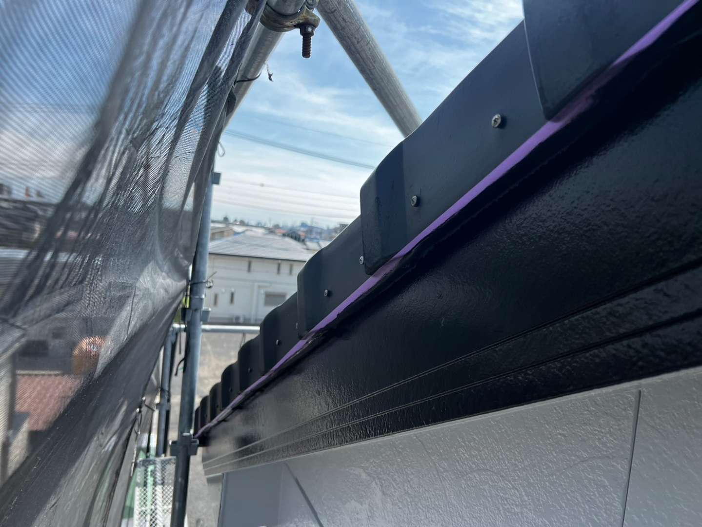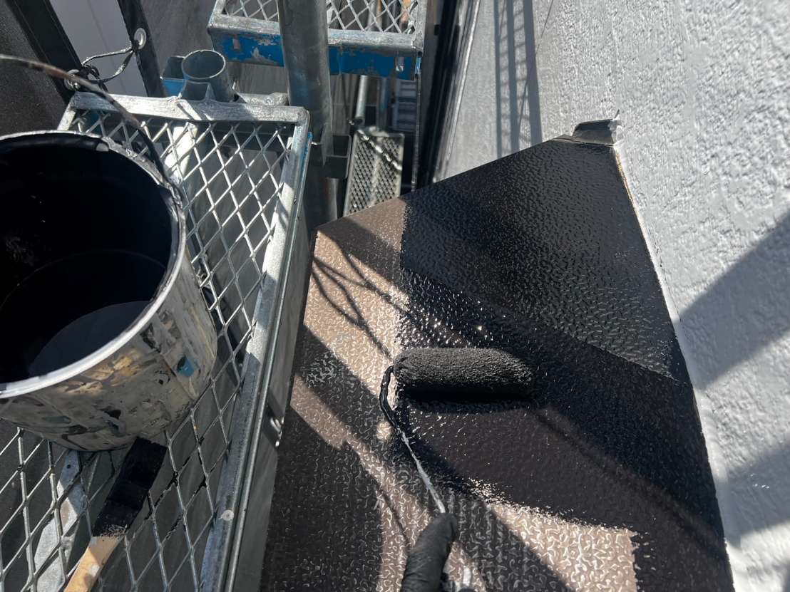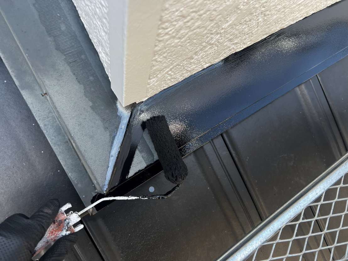 K様邸の昨日の作業は、付帯部の下塗り(錆止め含む)塗装、上塗り1回目・2回目塗装・