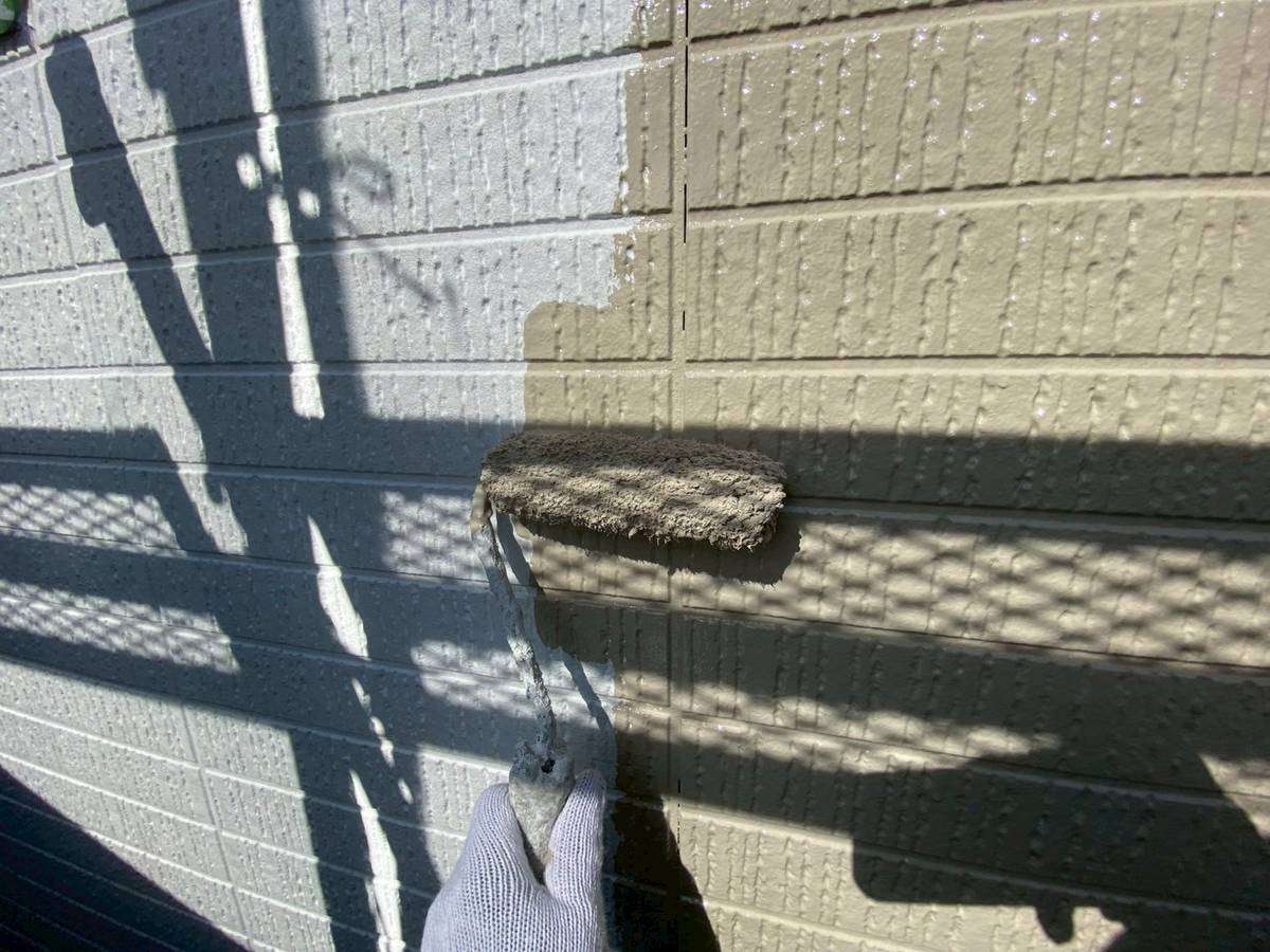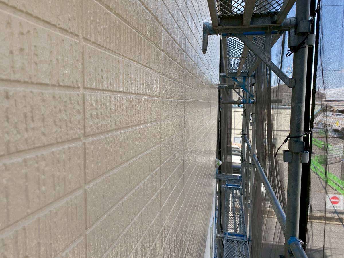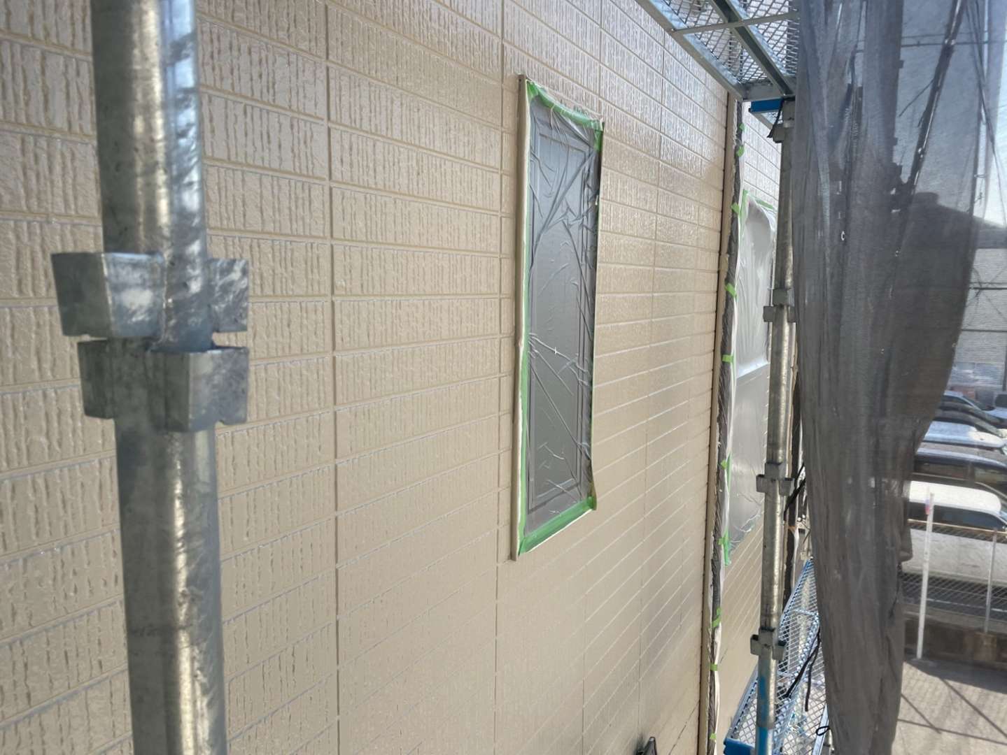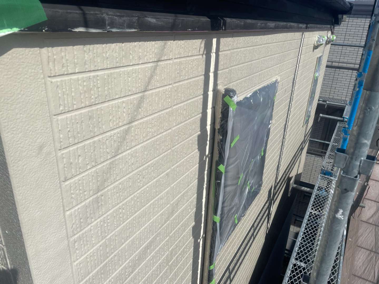 F様邸の昨日の作業は、外壁の中塗り塗装作業を行っていました。