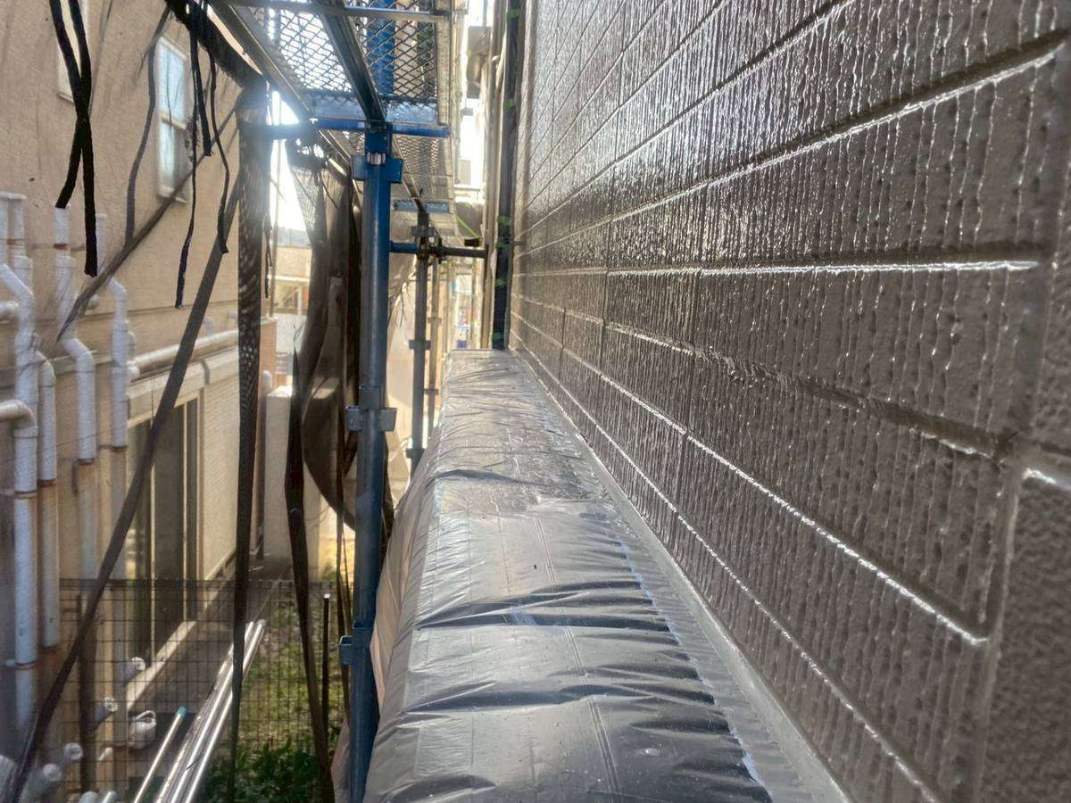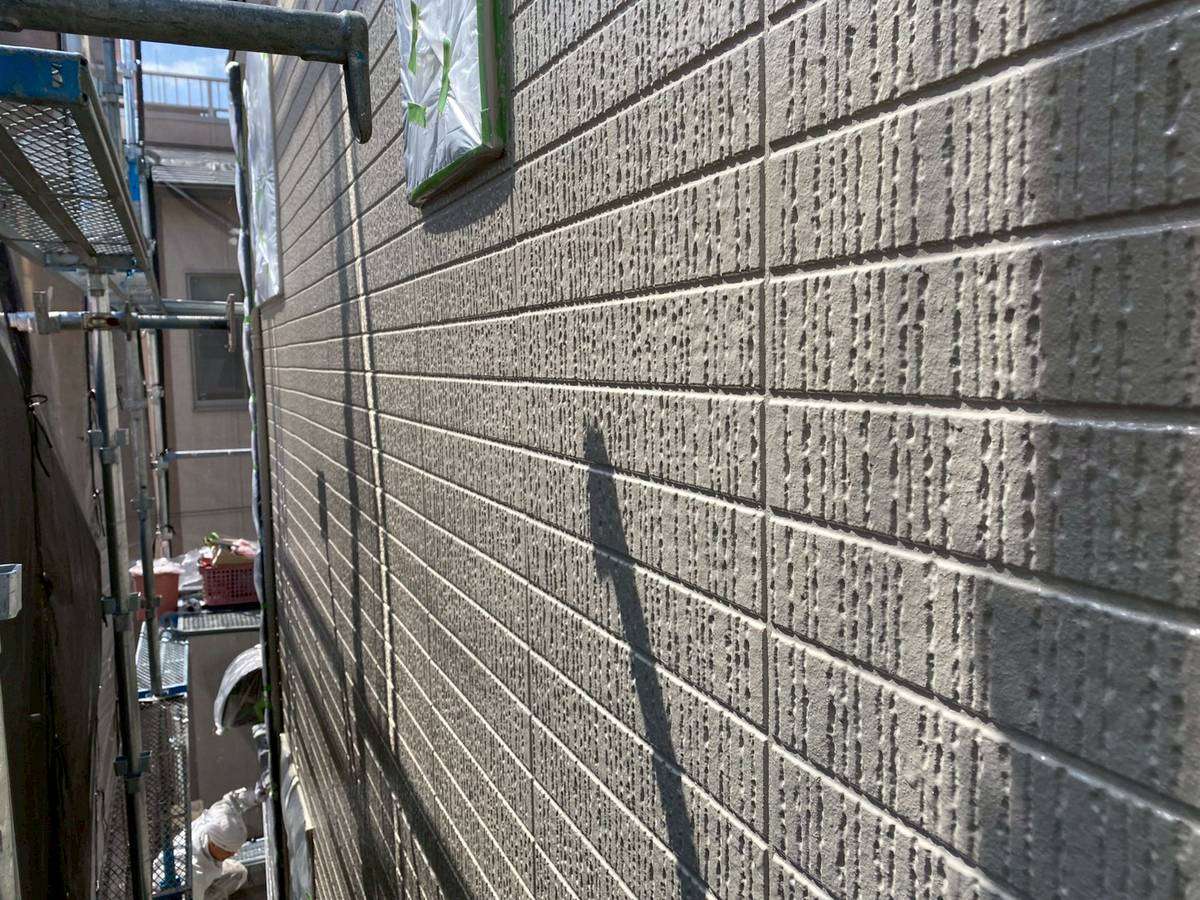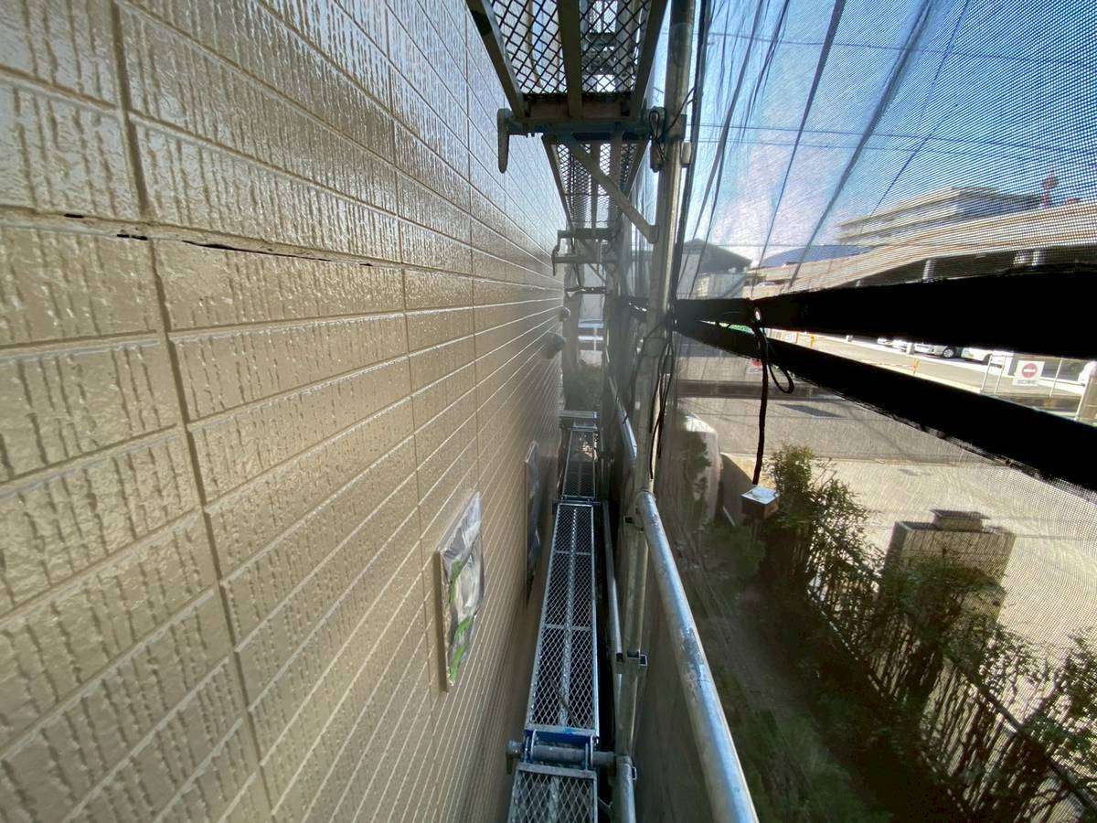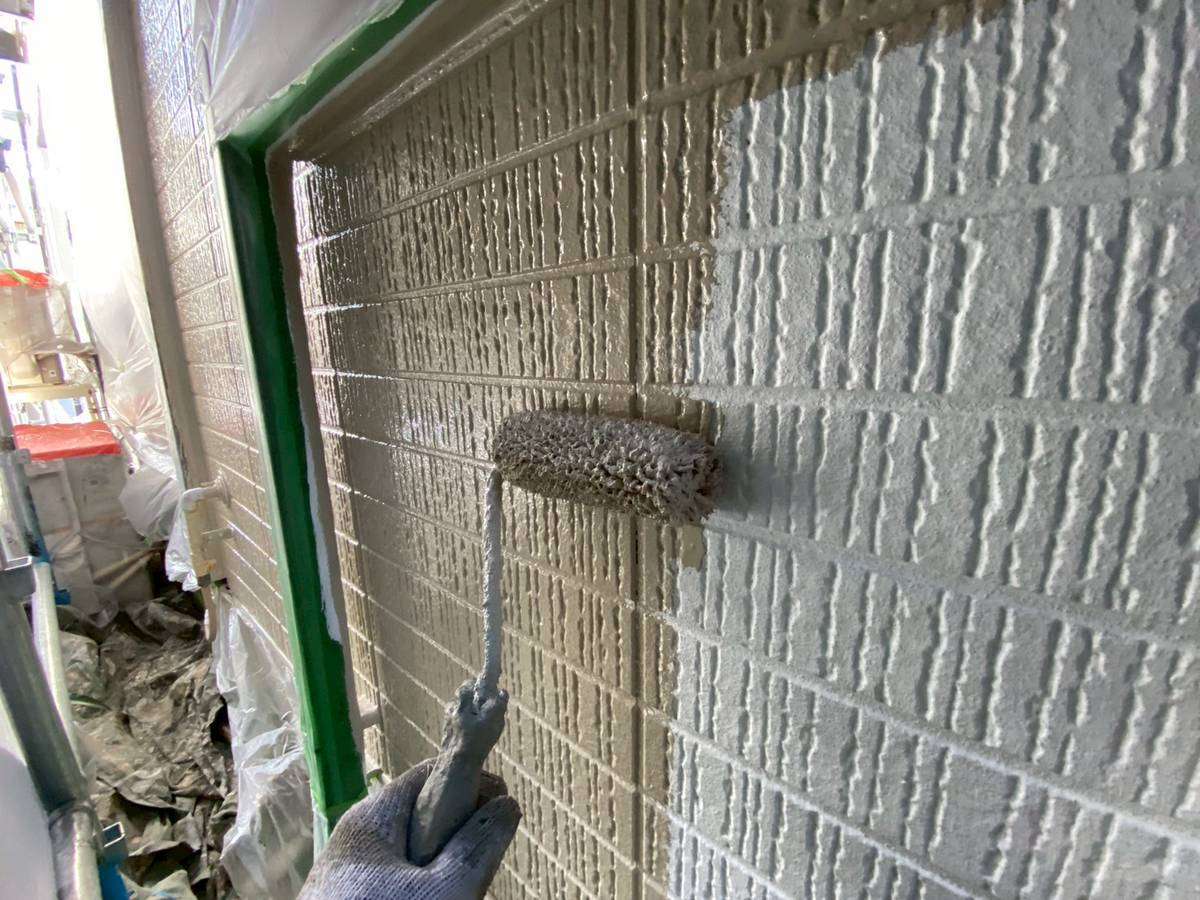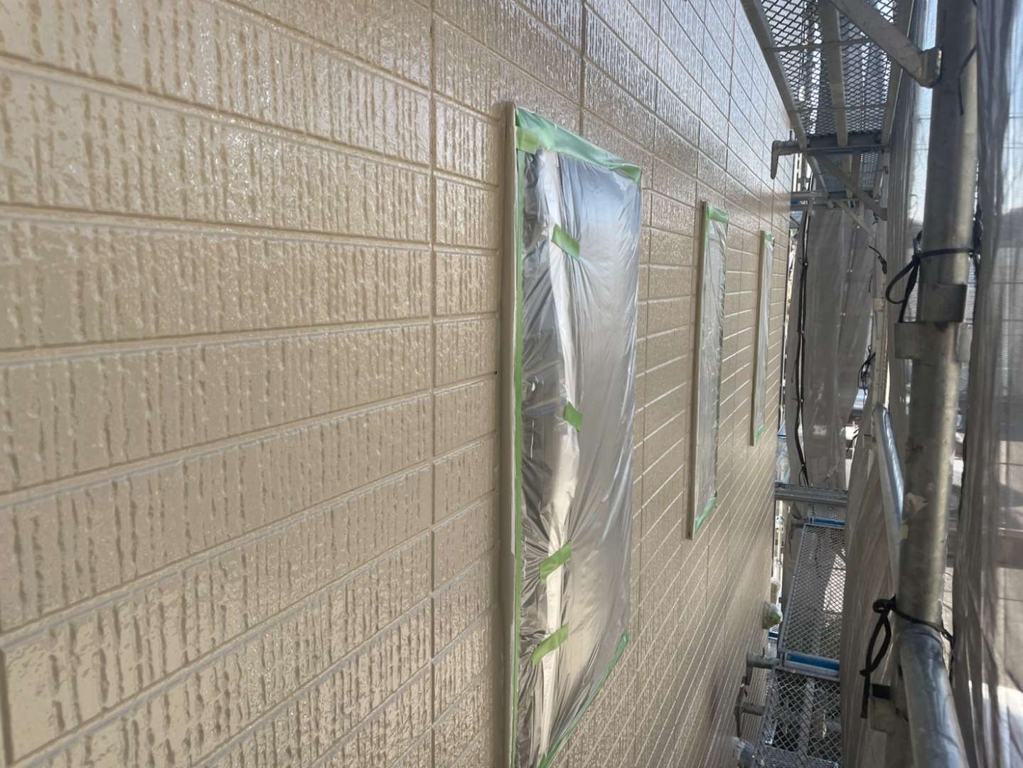 F様邸の昨日の作業は、外壁の中塗り塗装作業を行っていました。