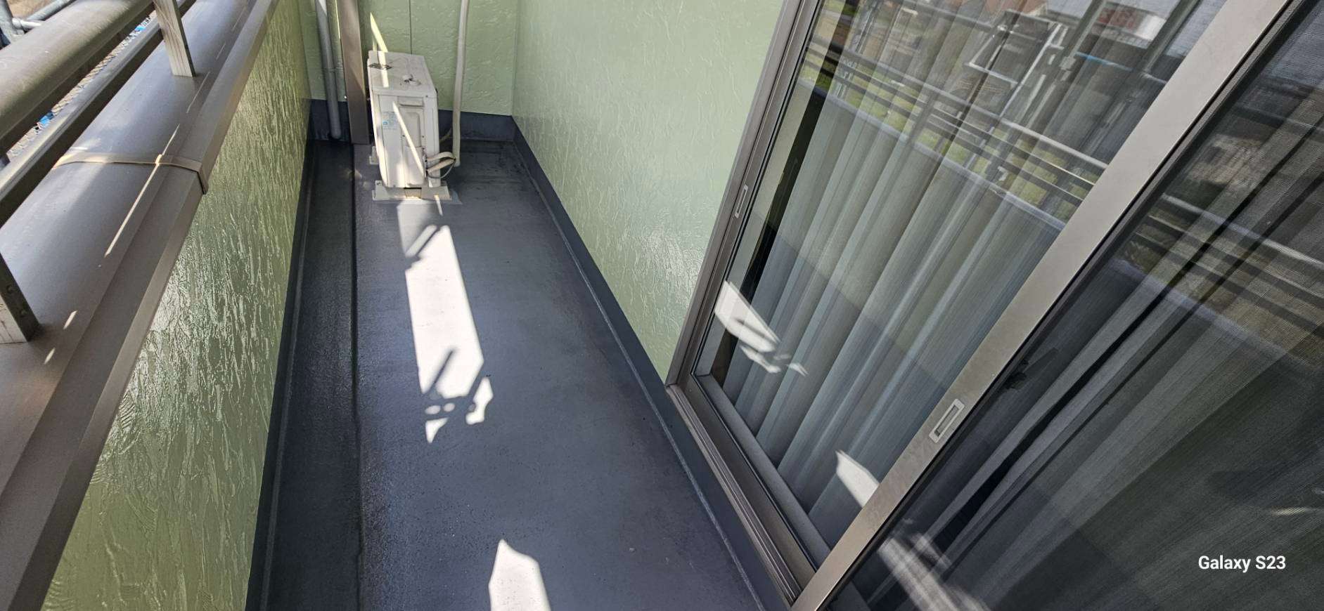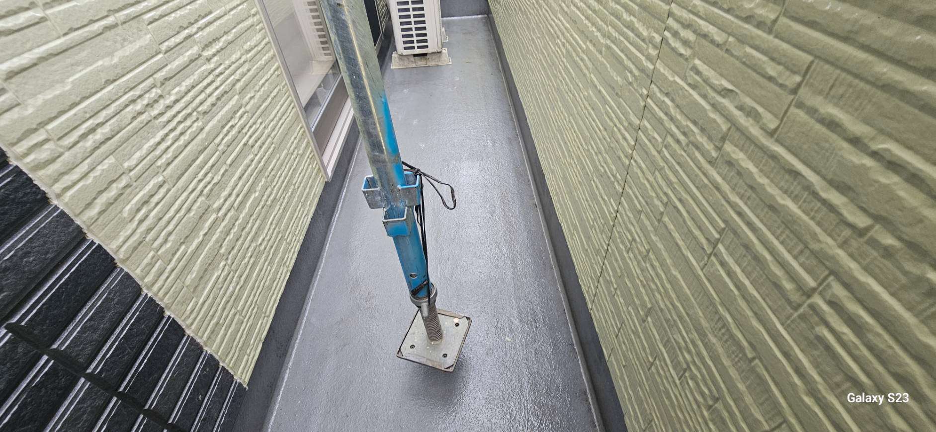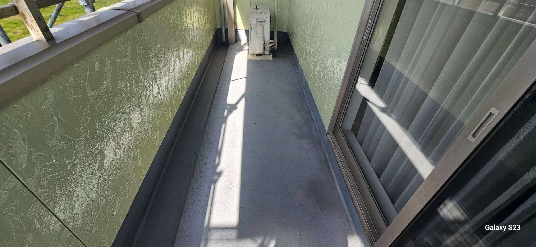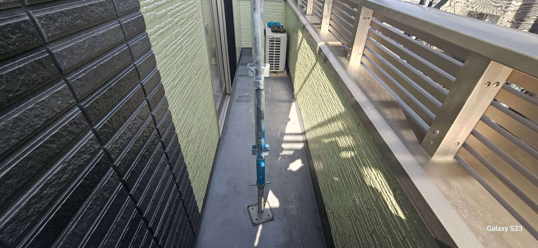 今日の作業は、ベランダのトップコート塗装・塗装部の点検作業予定です。