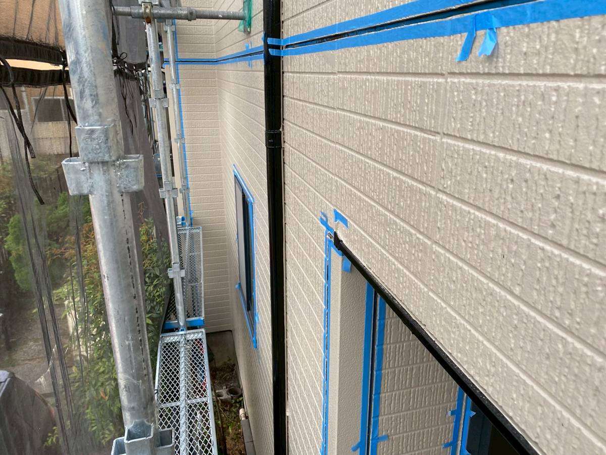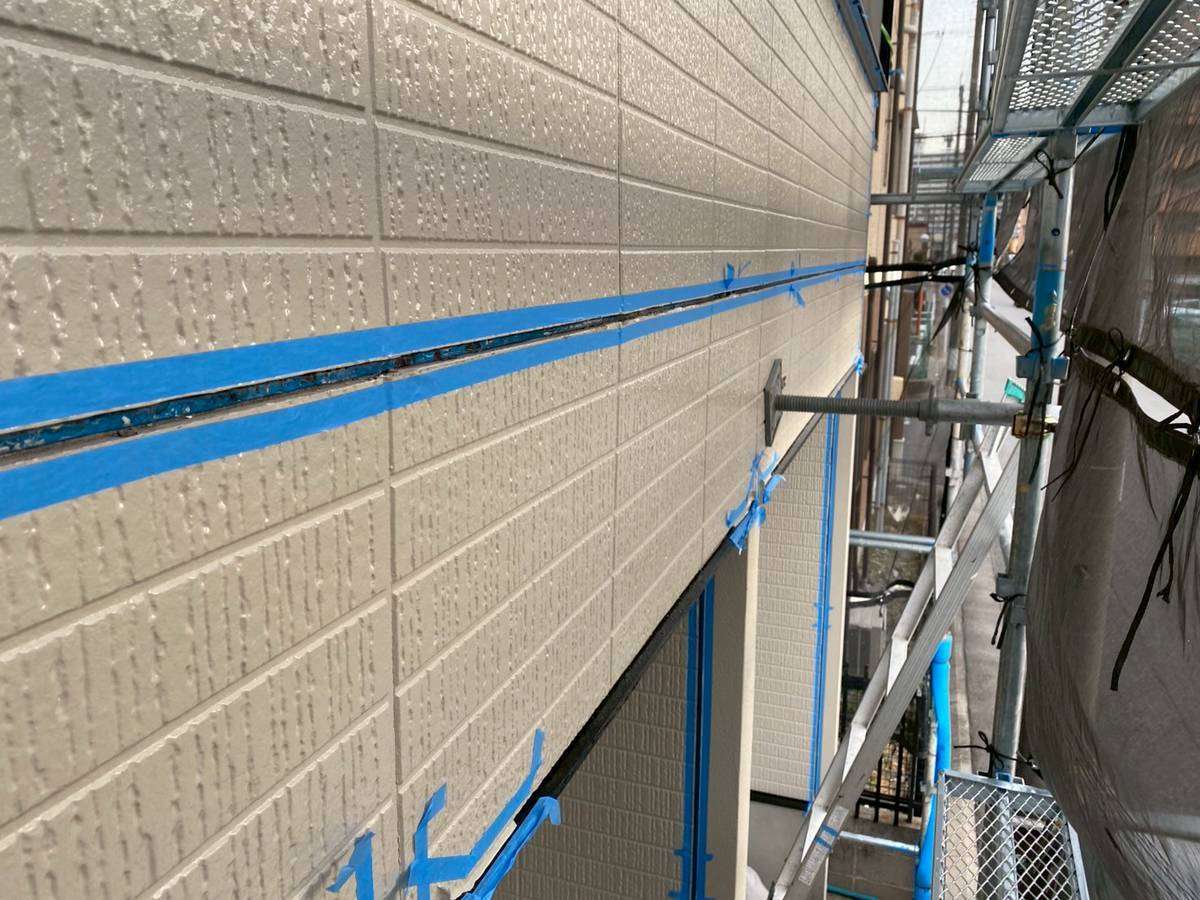 名古屋市南区のF様邸の昨日の作業内容をアップします!F様邸の昨日の作業は、コーキング(シーリング)作業の旧シーリング材撤去・養生テープ貼り・手すりのコーキング作業を行いました。