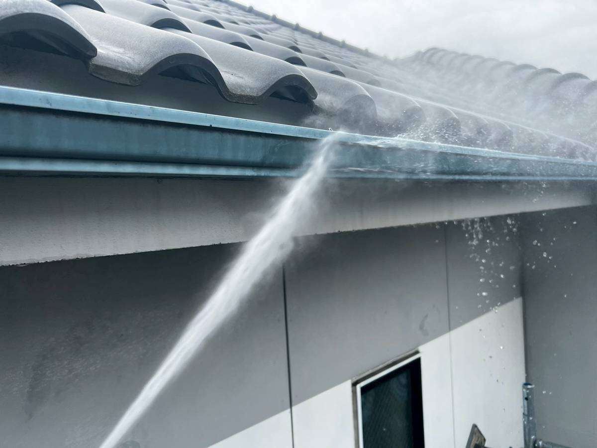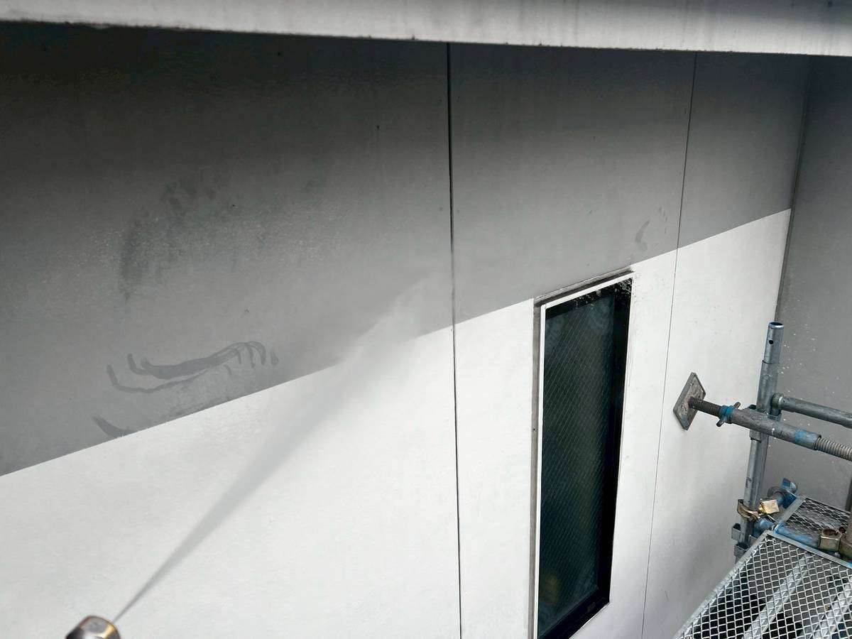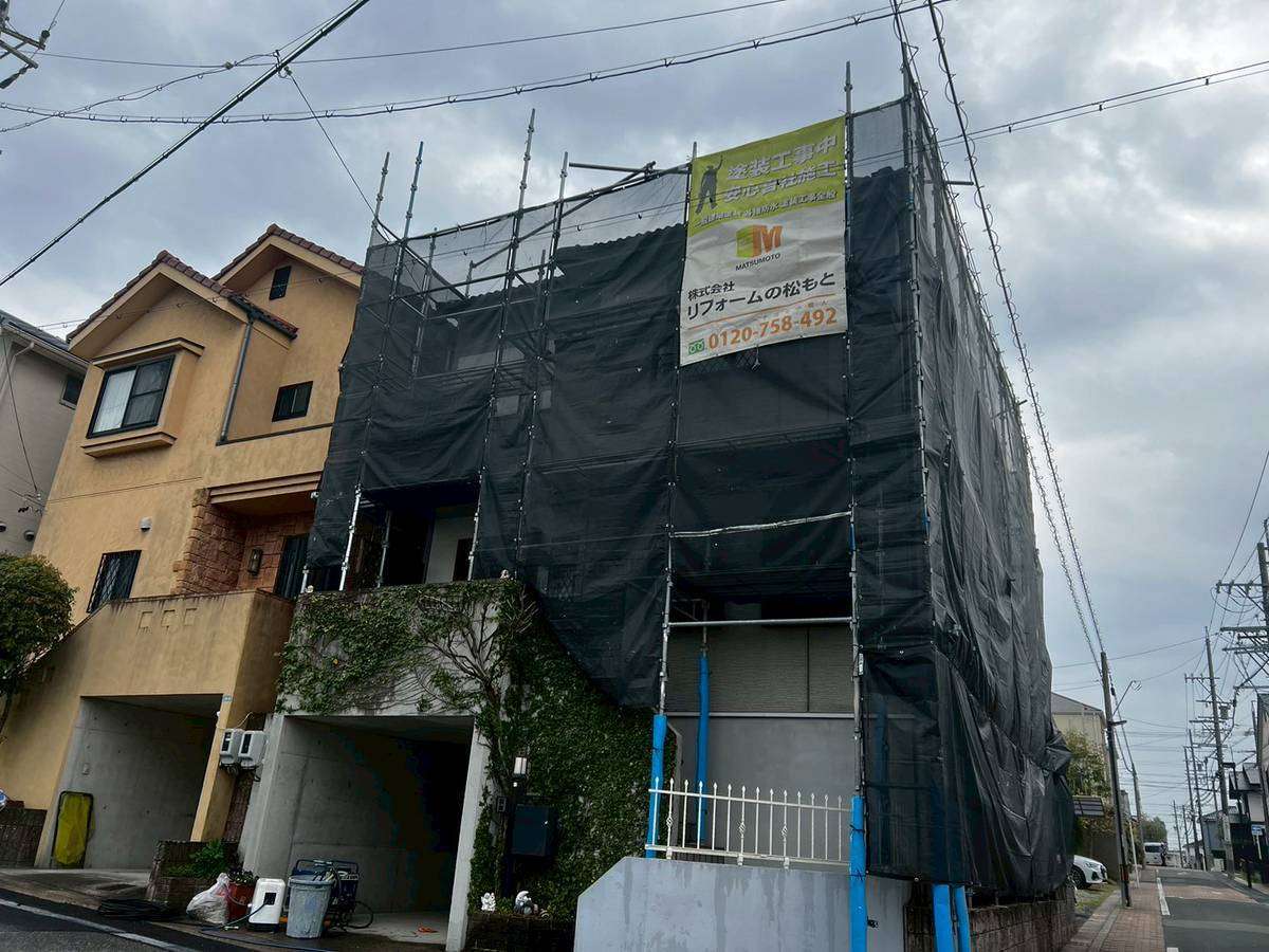 M様邸の作業は、仮設足場の組立・洗浄作業が完了しています。