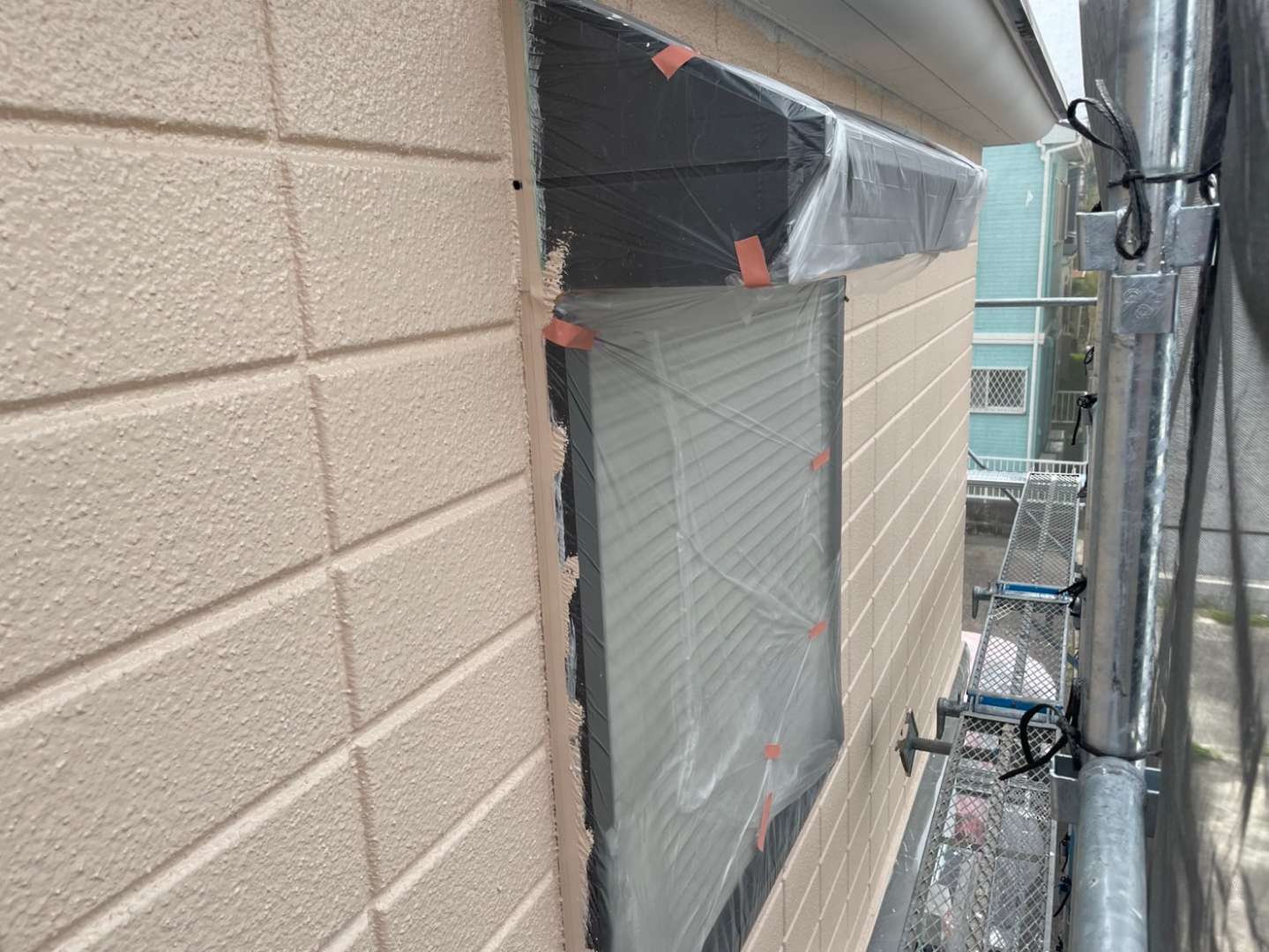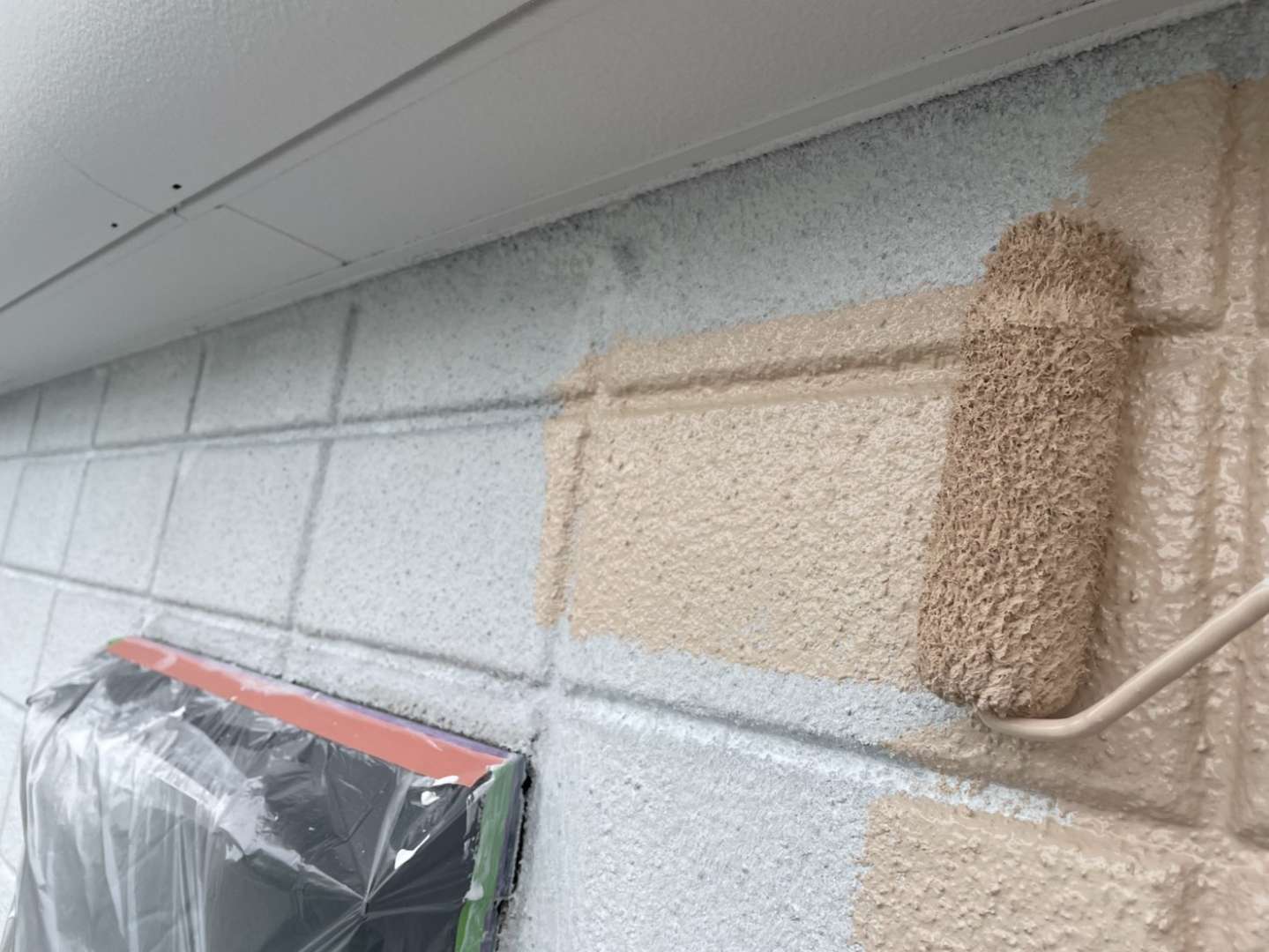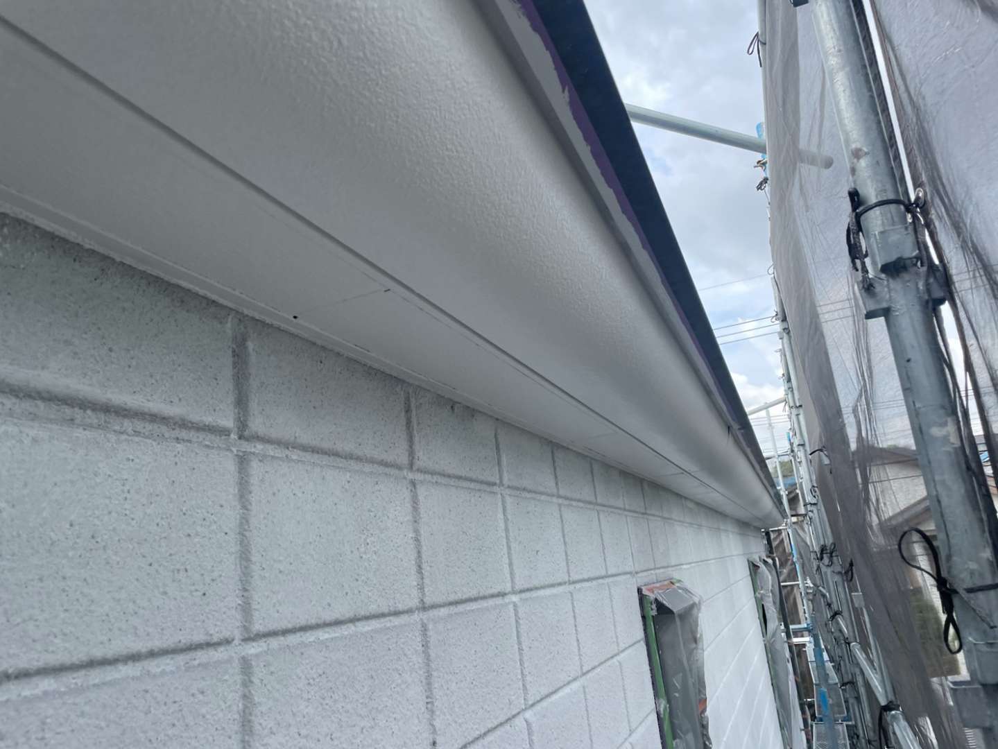 T様邸の昨日の作業は、軒天の1回目、2回目塗装・外壁の中塗り塗装作業を行っていました。