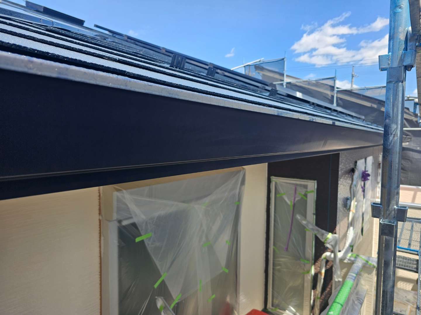 今日の作業は、屋根の上塗り・付帯部の上塗り1回目塗装作業予定です。
