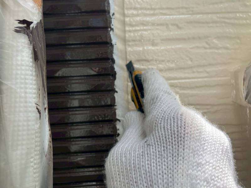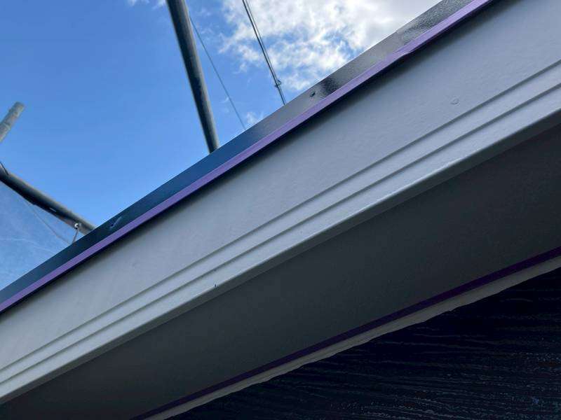 H様邸の昨日の作業は、付帯部塗装作業の破風板・鼻隠し板の下塗り塗装・コーキング(シーリング)の旧シーリング材撤去・テープ養生作業を行っていました。
