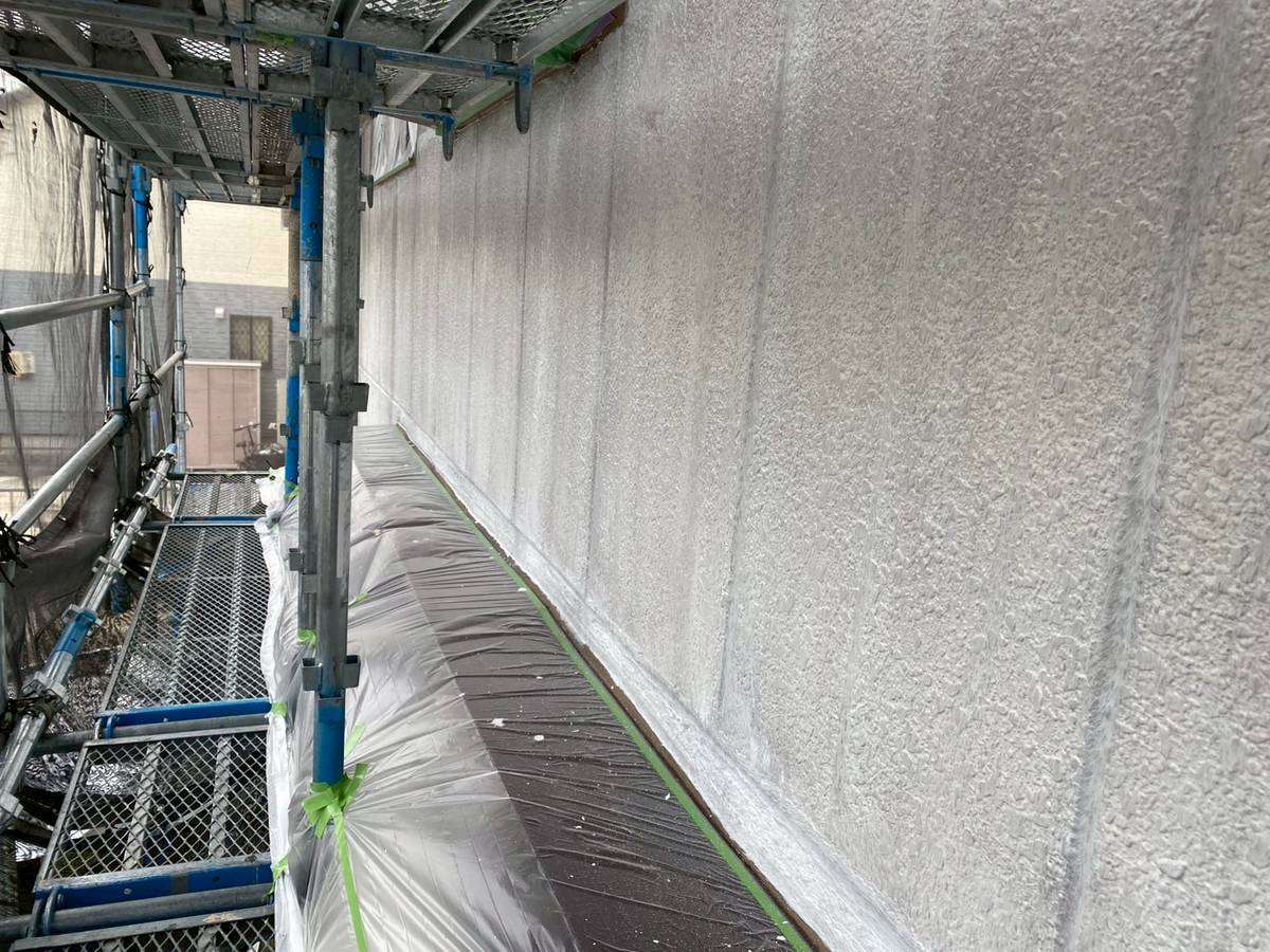 昨日のM様邸の作業は、外壁の下塗り塗装・階段鉄部のケレン・錆止め塗装作業を