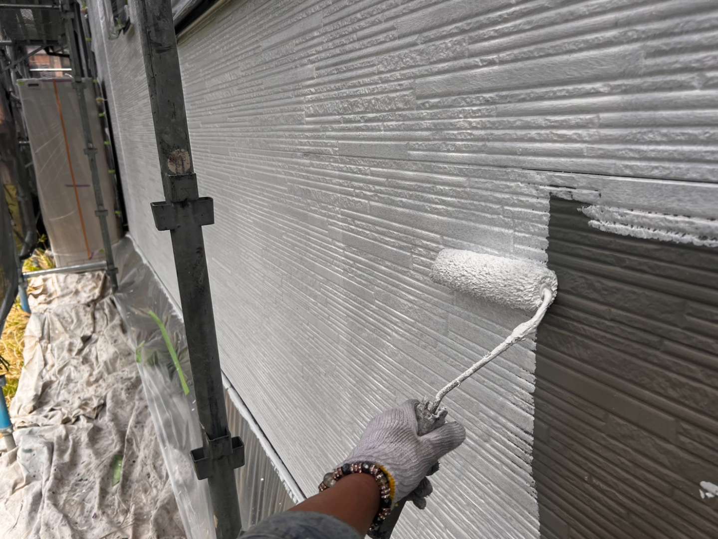 外壁下塗り塗装作業