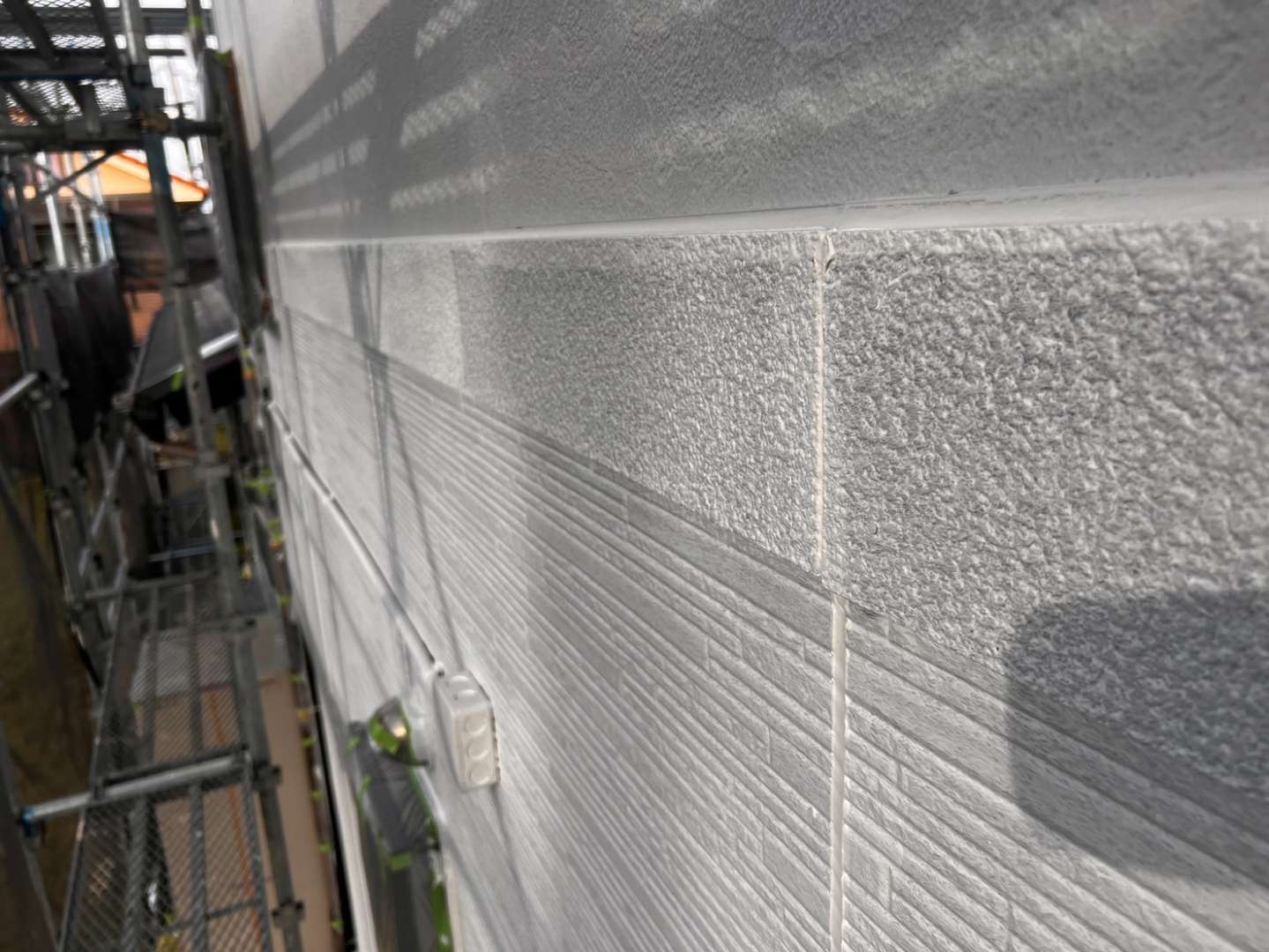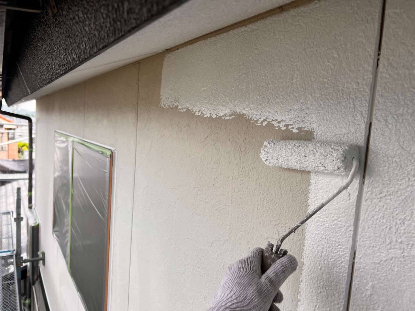 O様邸の作業は、外壁の下塗り塗装・軒天1回目塗装作業を行っていました。