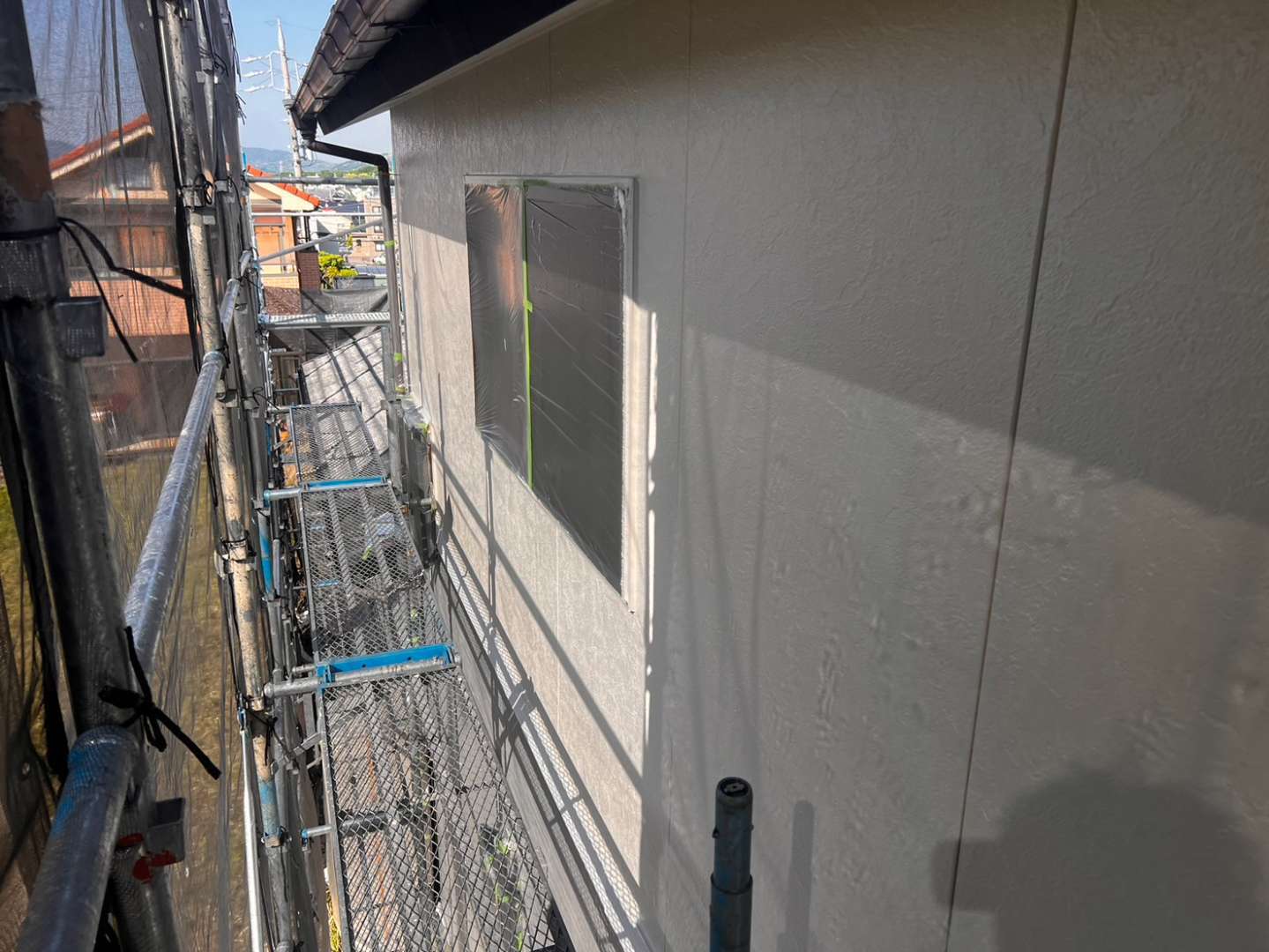 O様邸の昨日の作業は、軒天2回目塗装・外壁の中塗り塗装・破風板・鼻隠し板の下塗り塗装作業を行っていました。