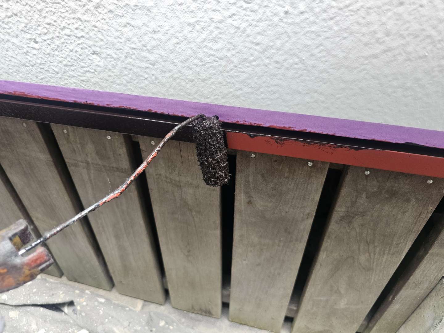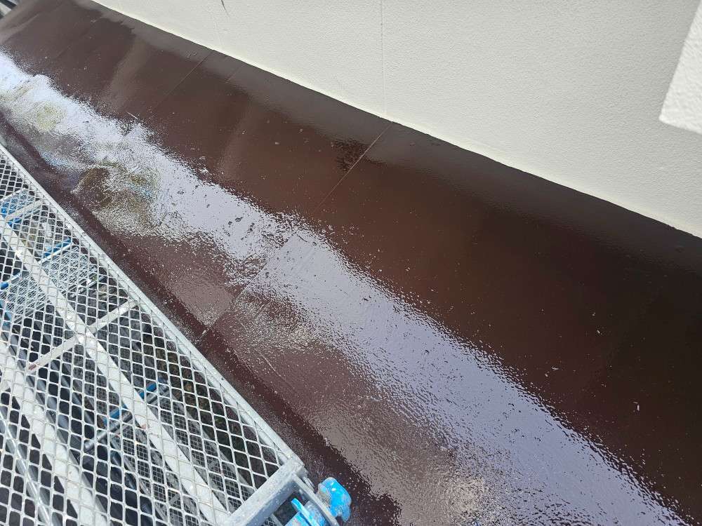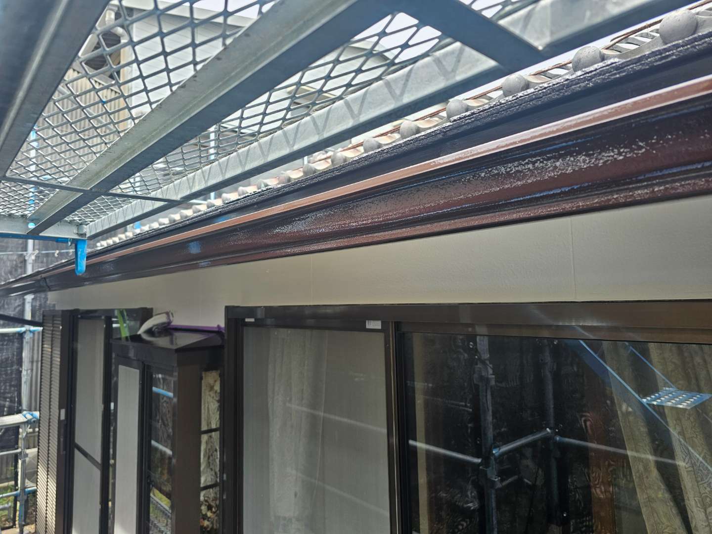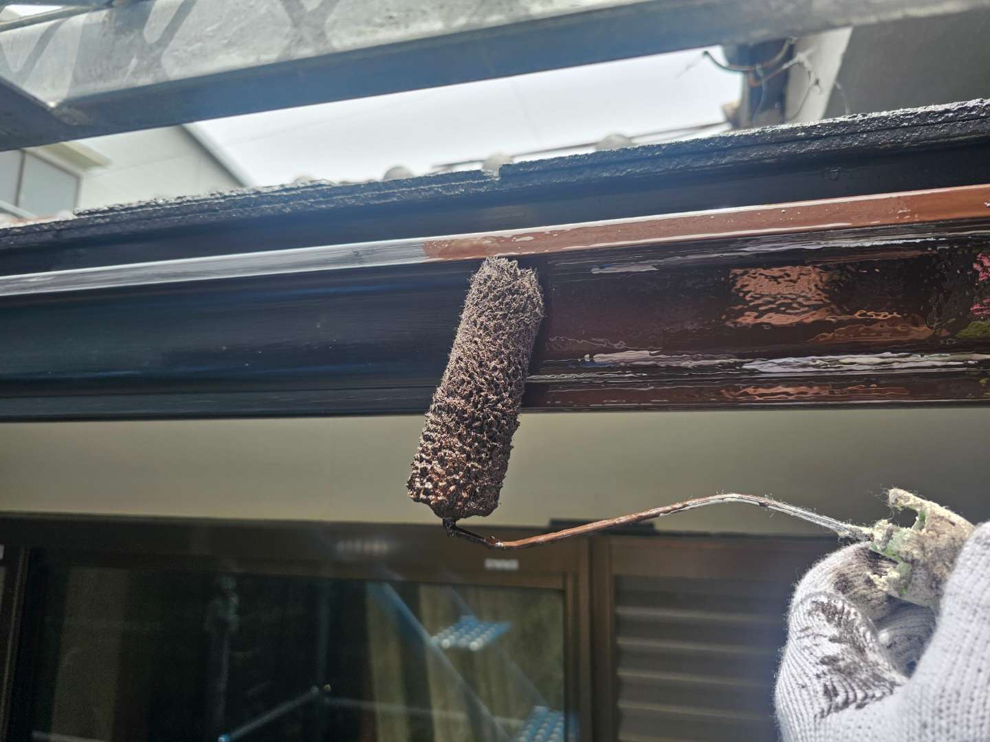 Y様邸の昨日の作業は、付帯部塗装の庇・水切り・雨樋の上塗り1回目塗装作業を