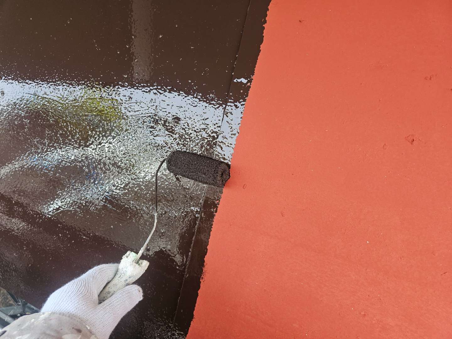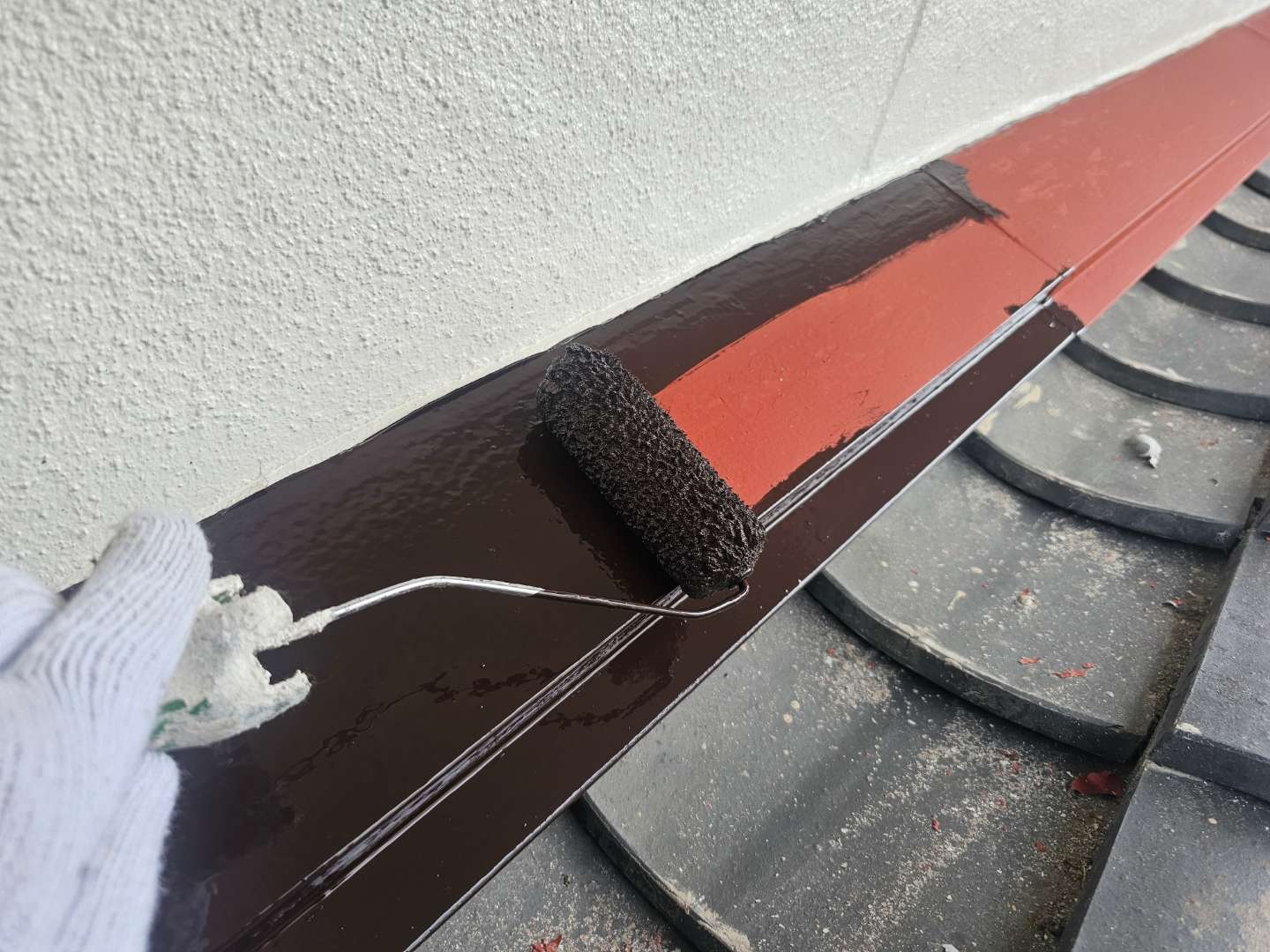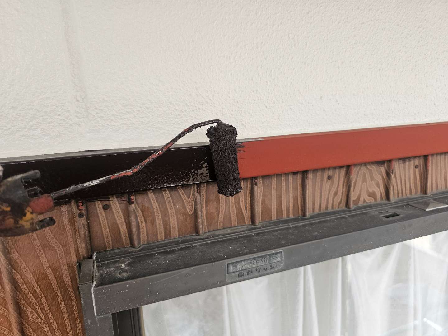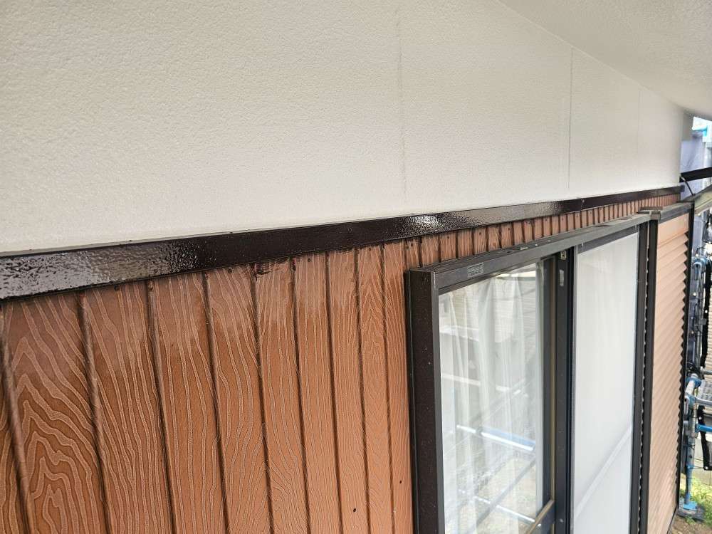 Y様邸の昨日の作業は、付帯部塗装の庇・水切り・雨樋の上塗り1回目塗装作業を