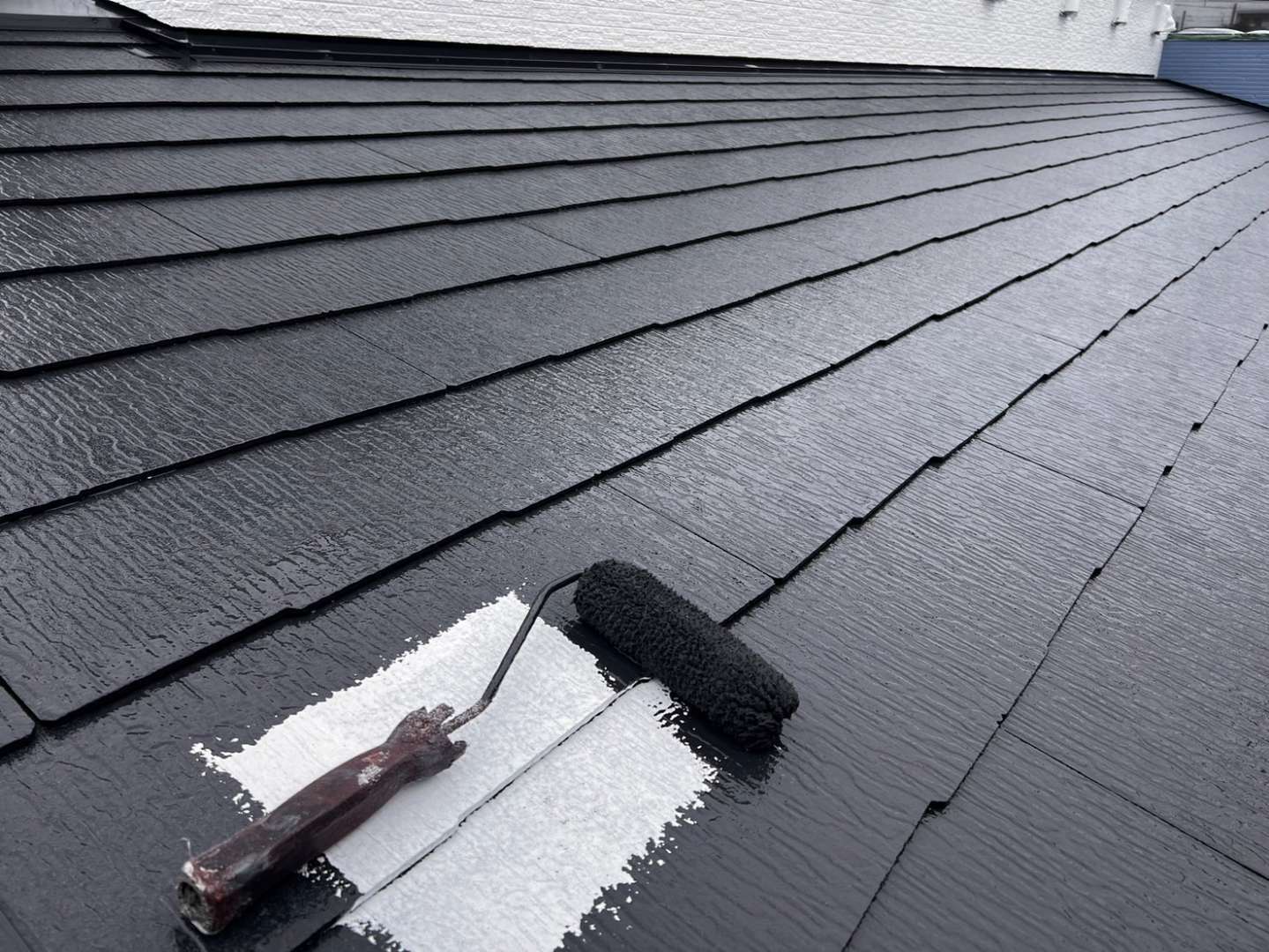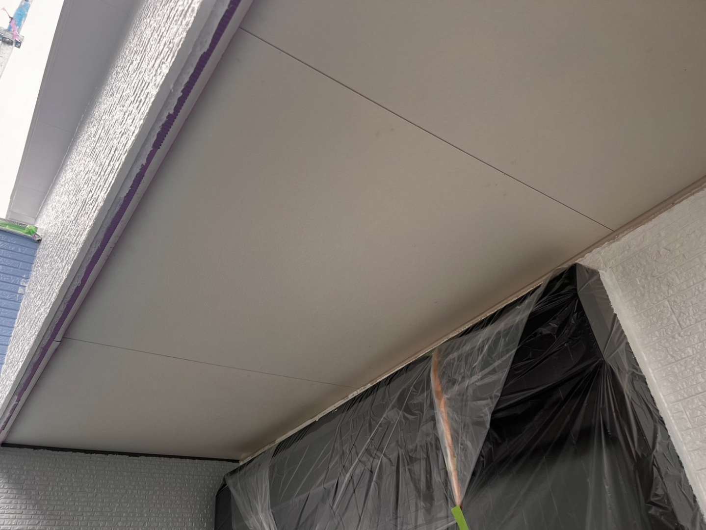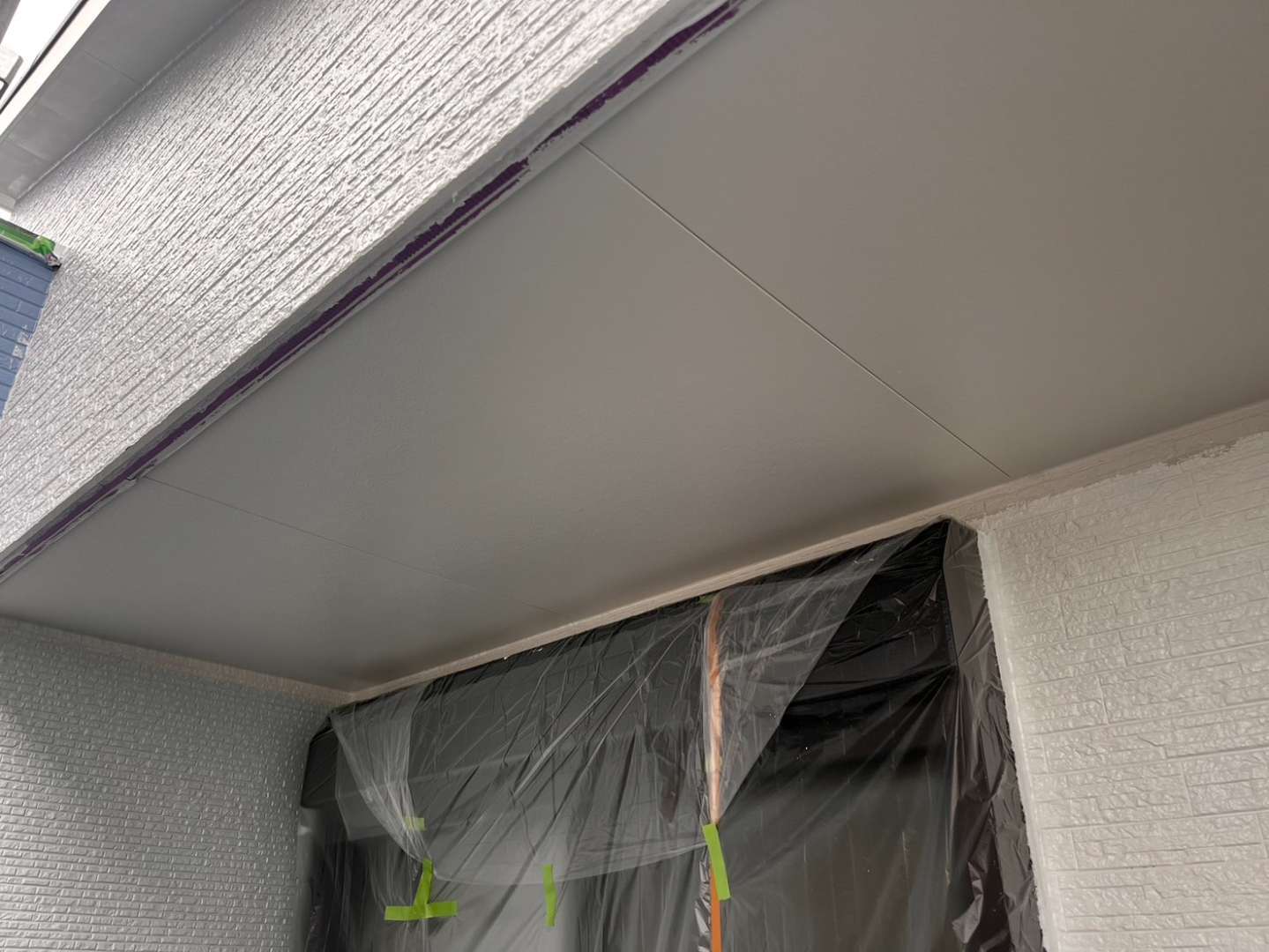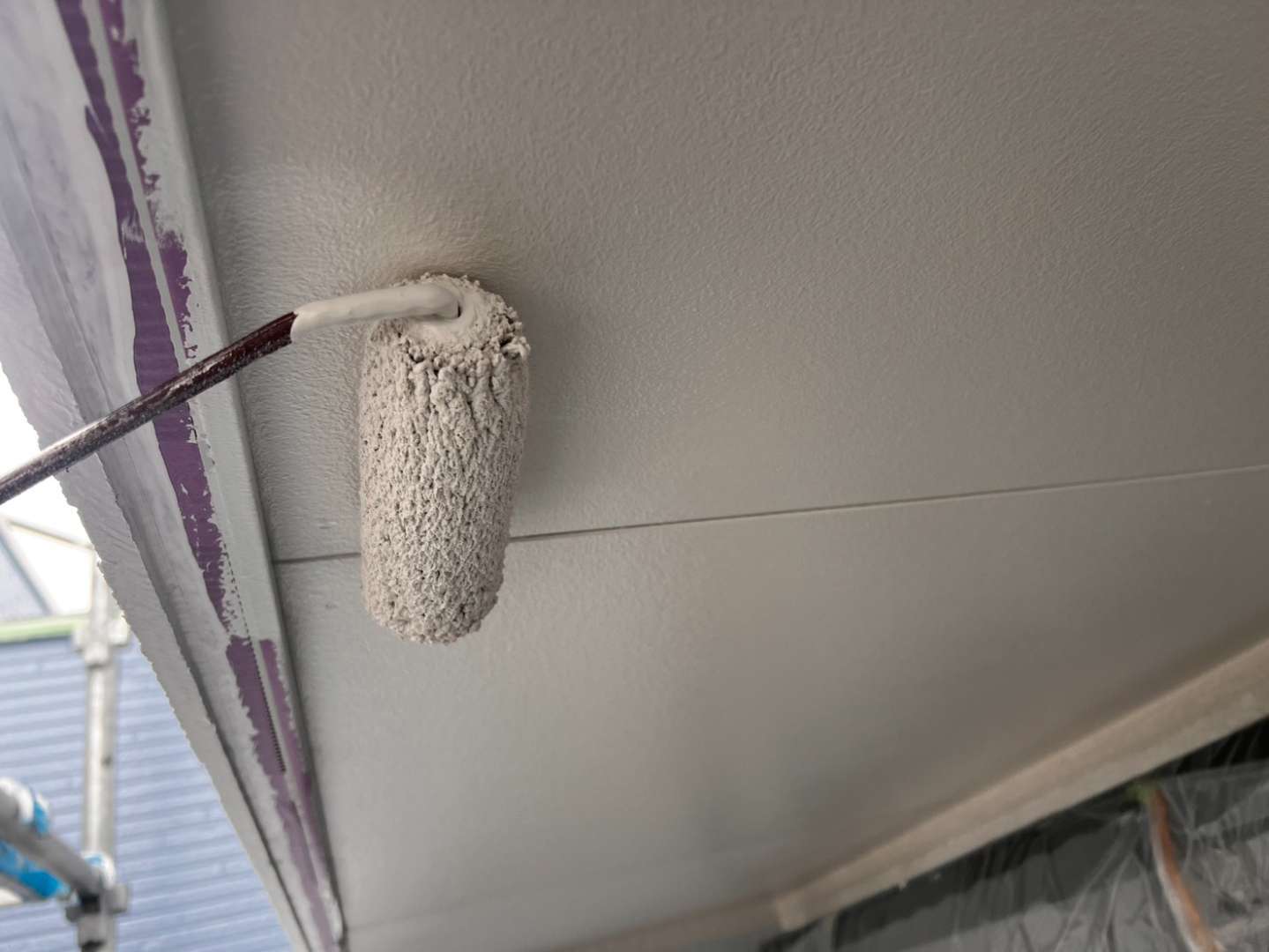 外壁の上塗り塗装、屋根中塗り塗装、軒天塗装作業を行っていました。