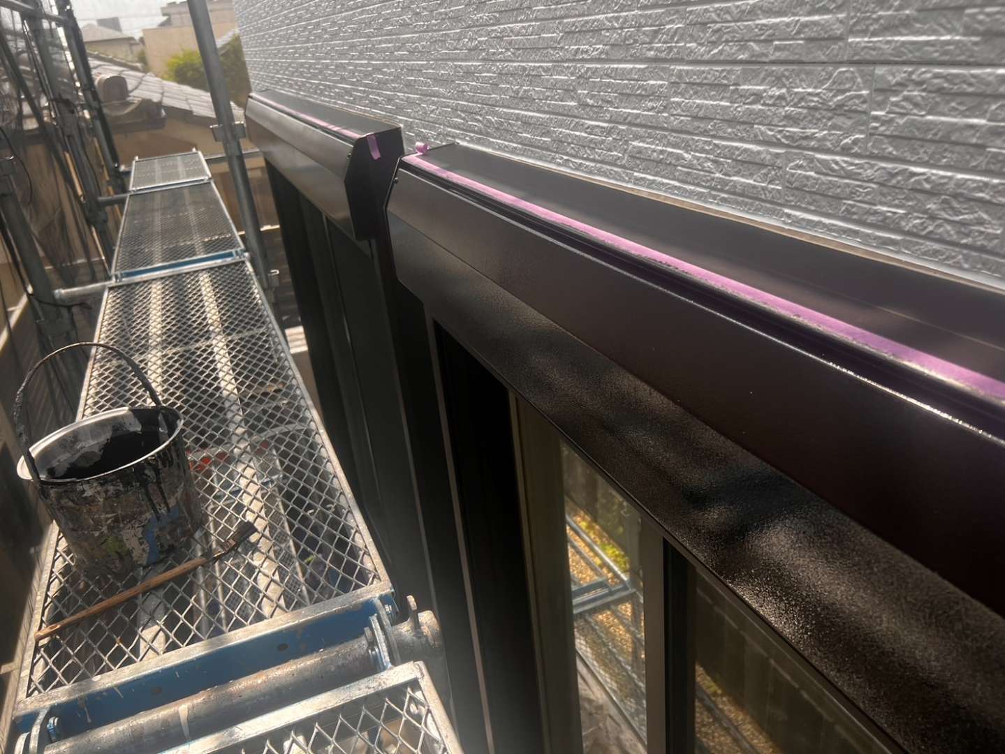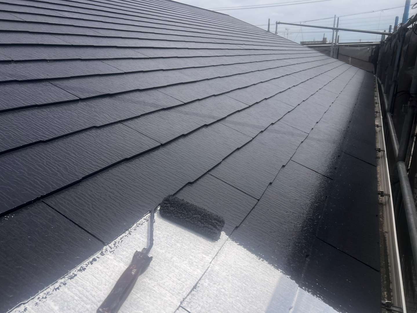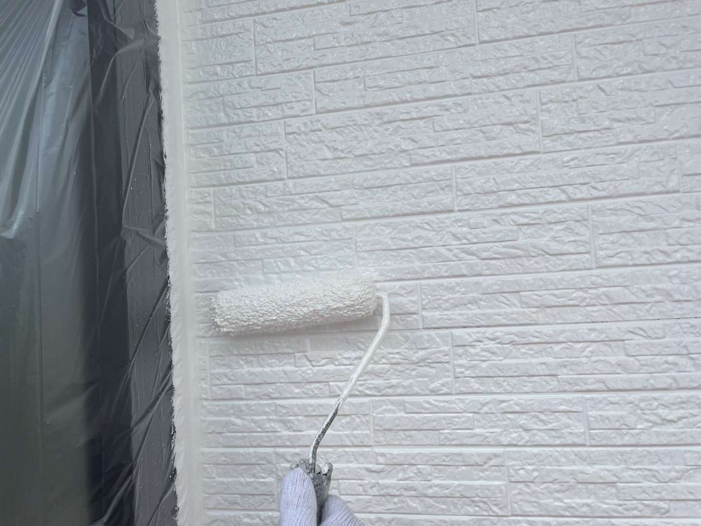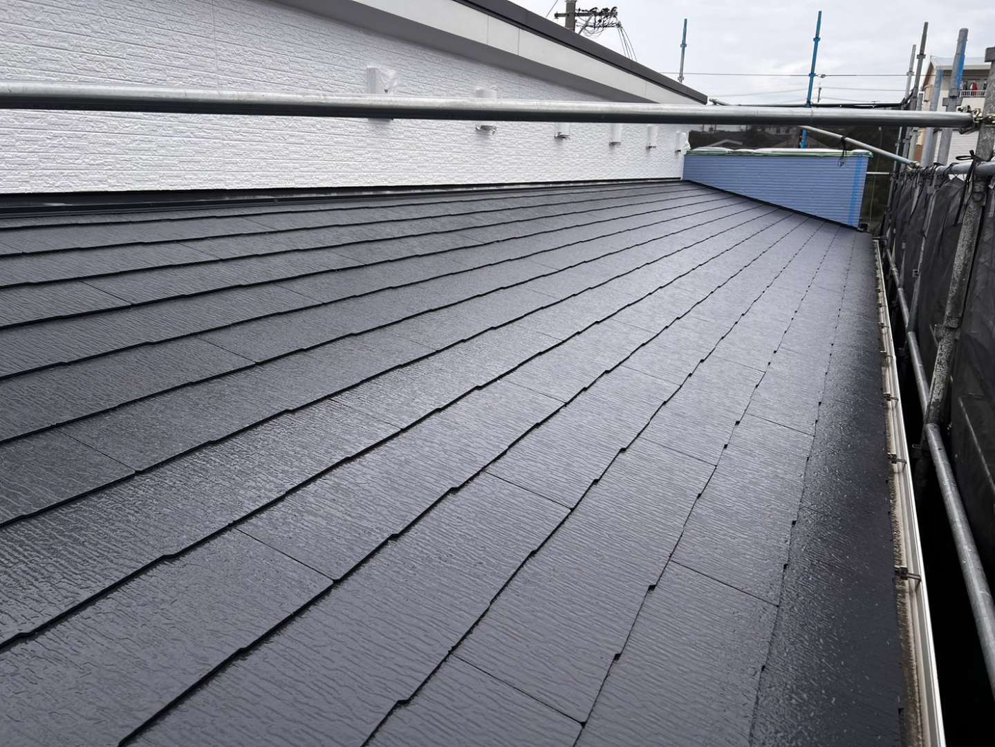 外壁の上塗り塗装、屋根中塗り塗装、軒天塗装作業を行っていました。