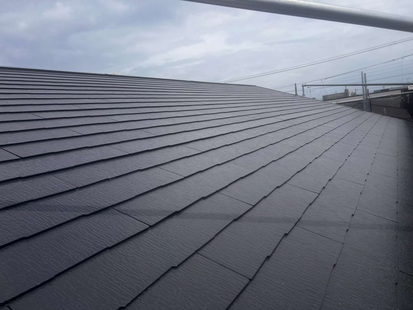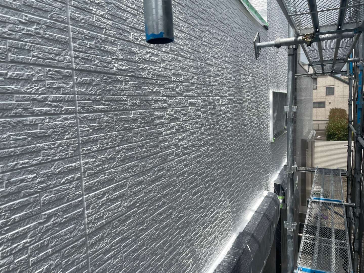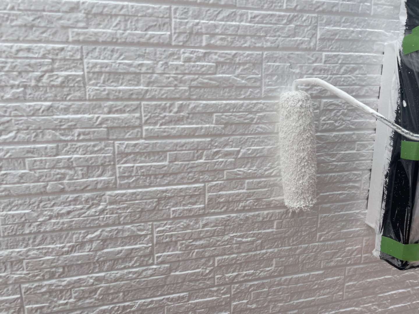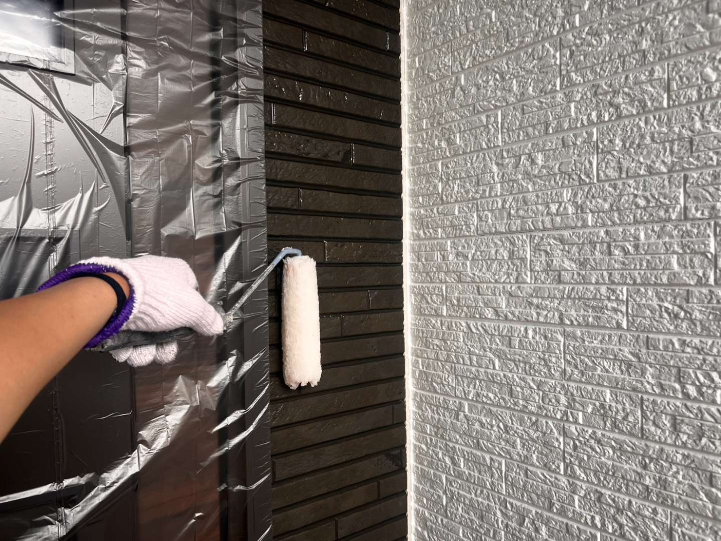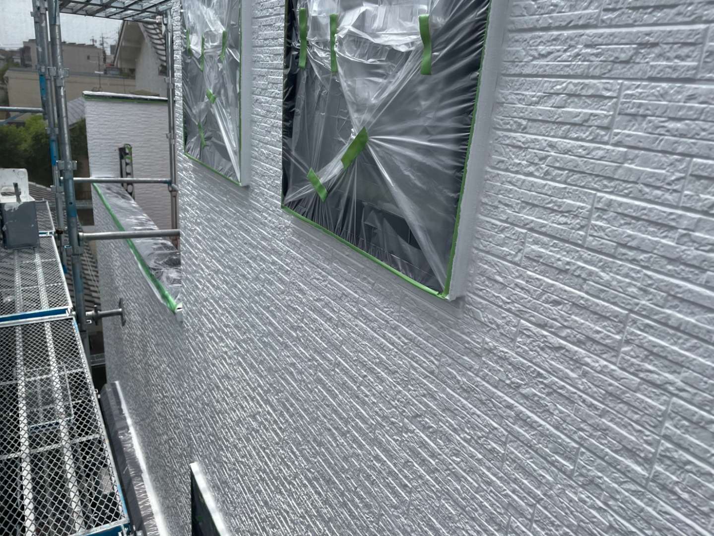 外壁の上塗り塗装、屋根中塗り塗装、軒天塗装作業を行っていました。