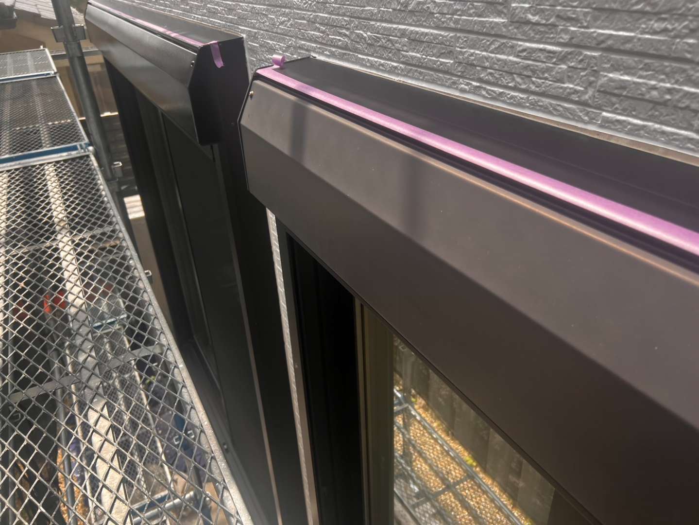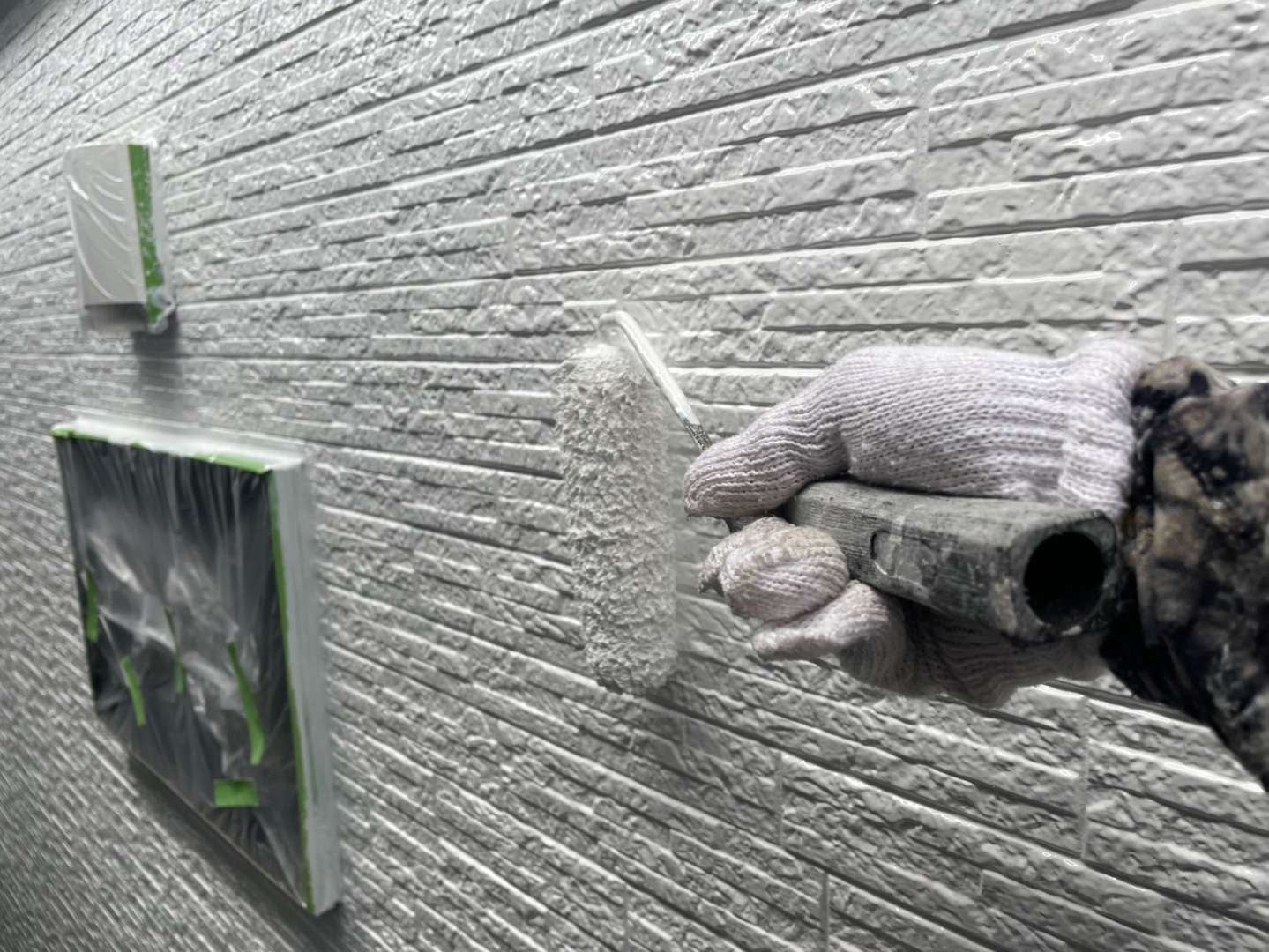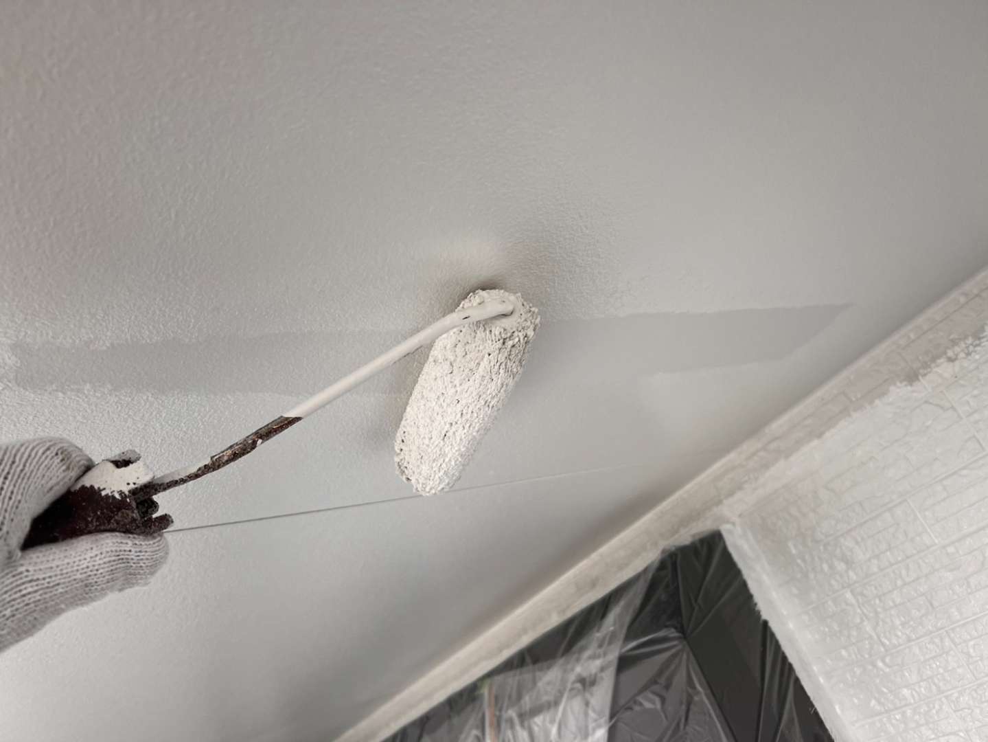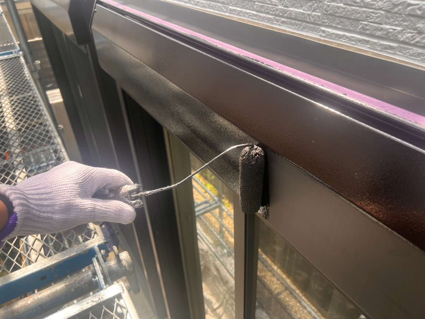 外壁の上塗り塗装、屋根中塗り塗装、軒天塗装作業を行っていました。