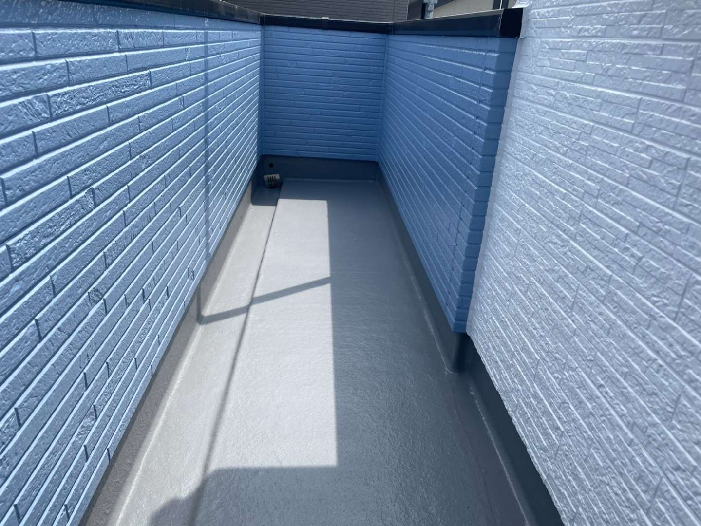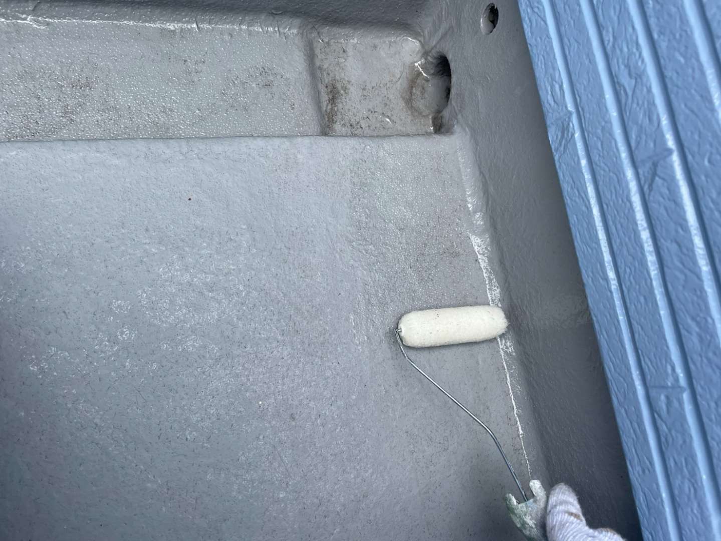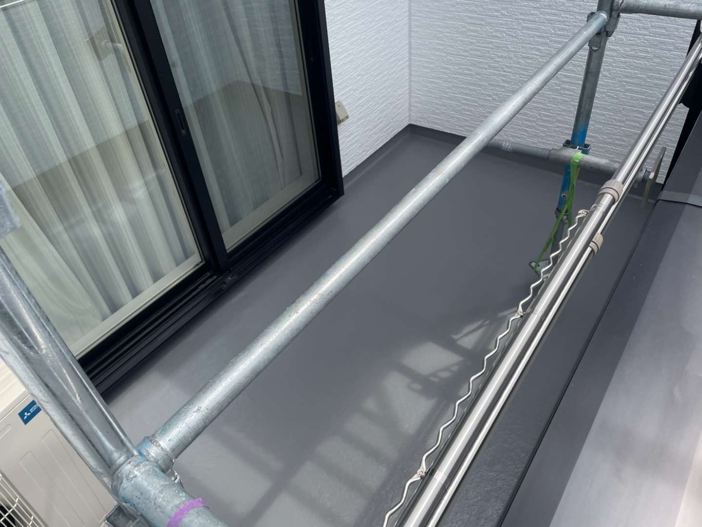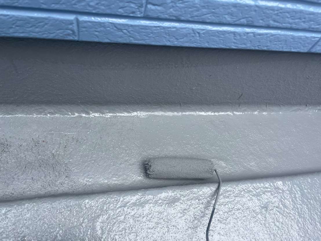 Y様邸の作業は、ベランダのトップコート塗装作業のプライマー・トップコート塗装が完了して