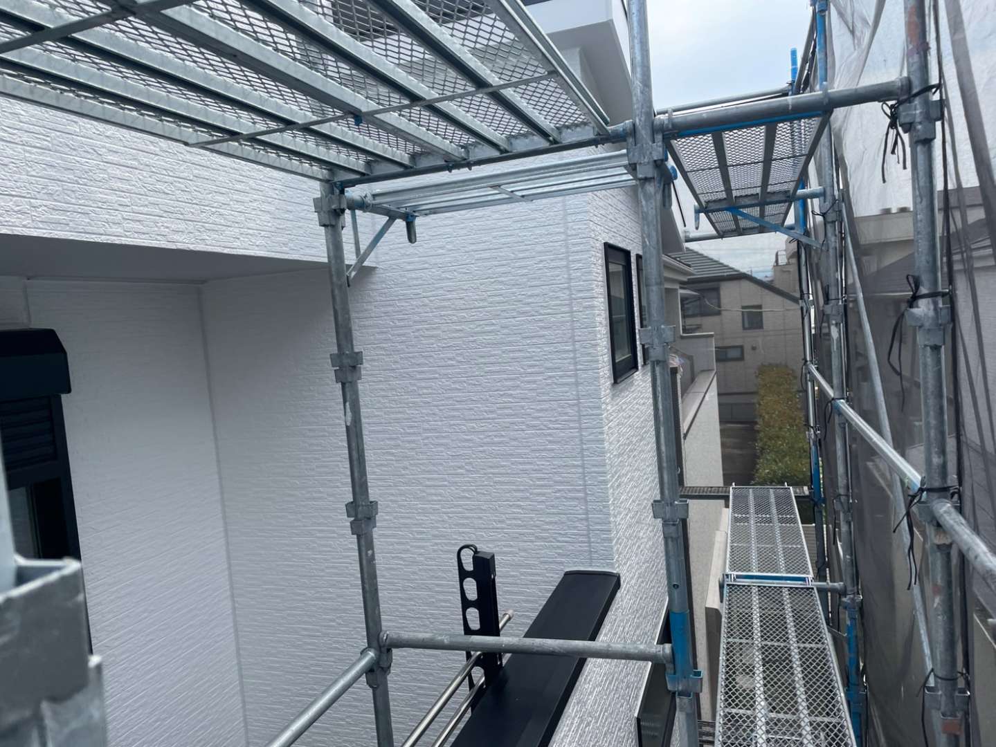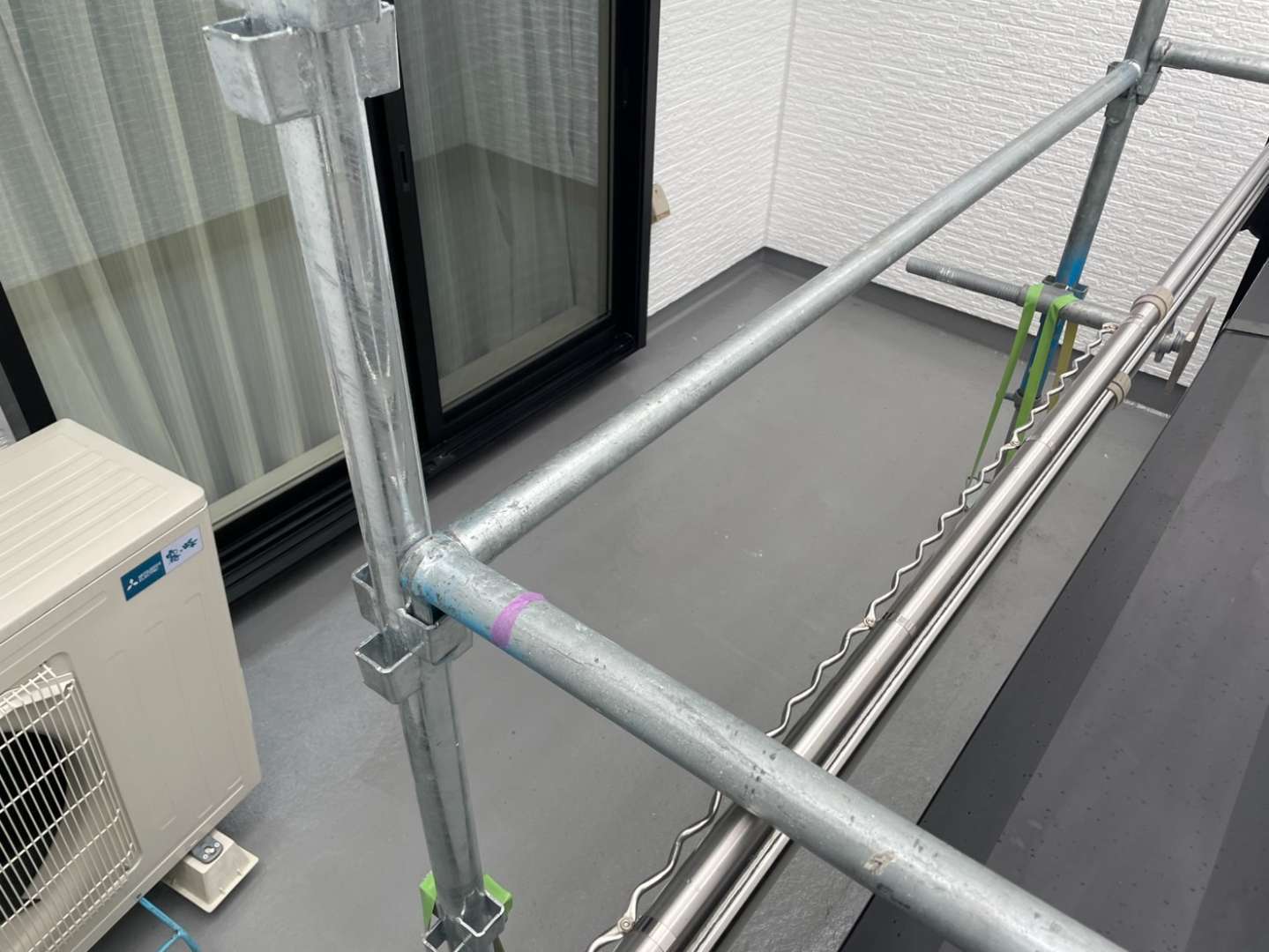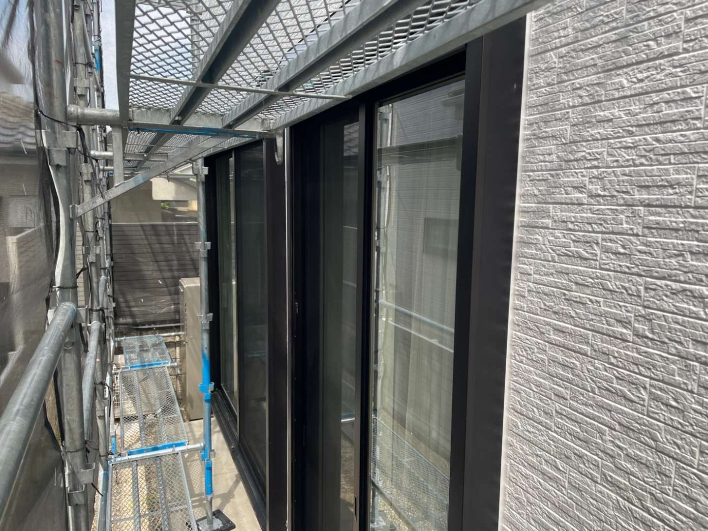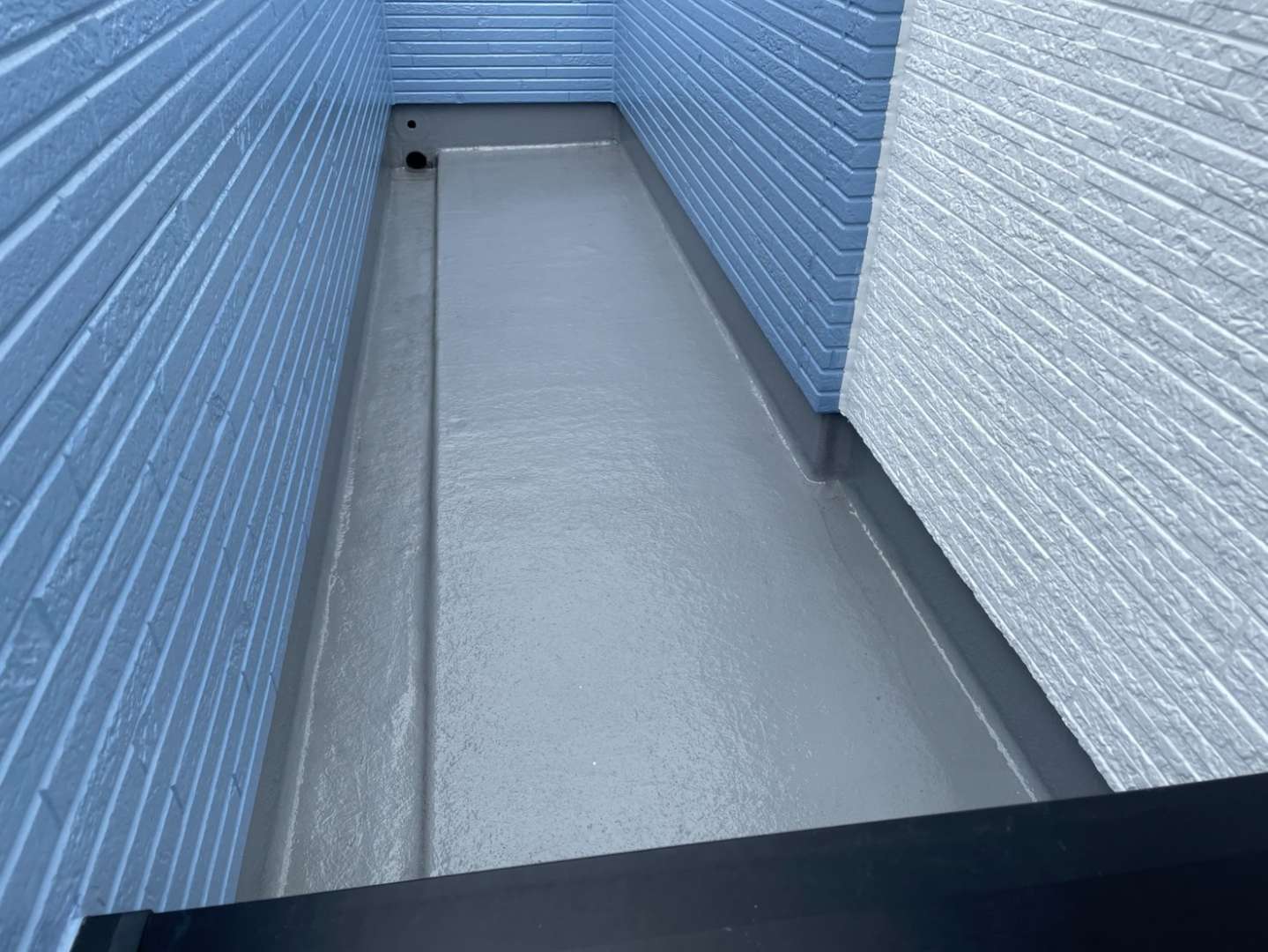 Y様邸の作業は、ベランダのトップコート塗装作業のプライマー・トップコート塗装が完了して