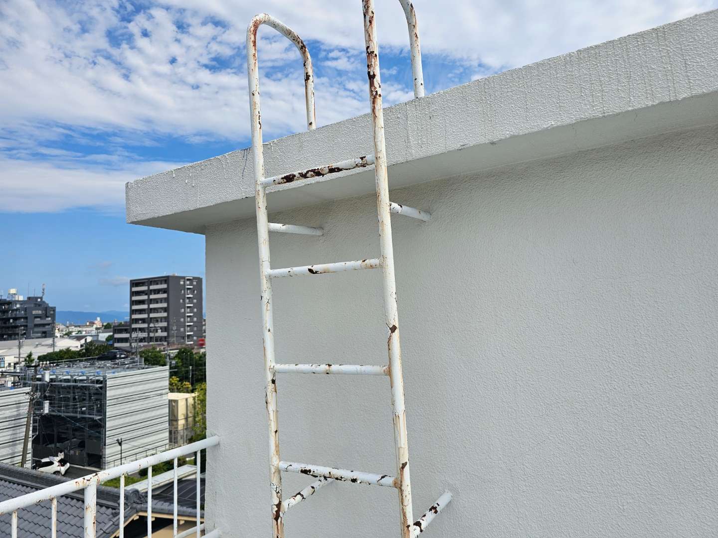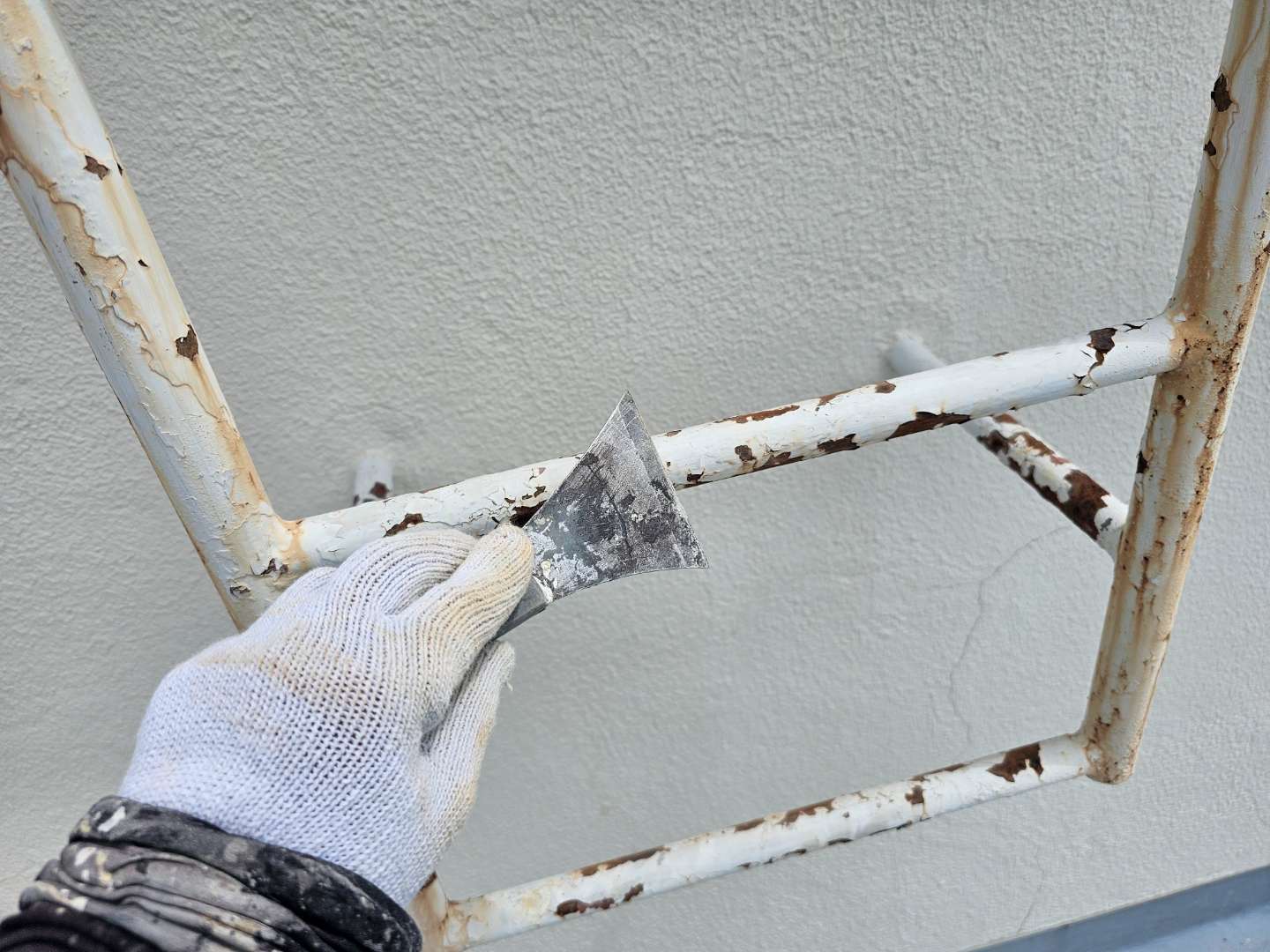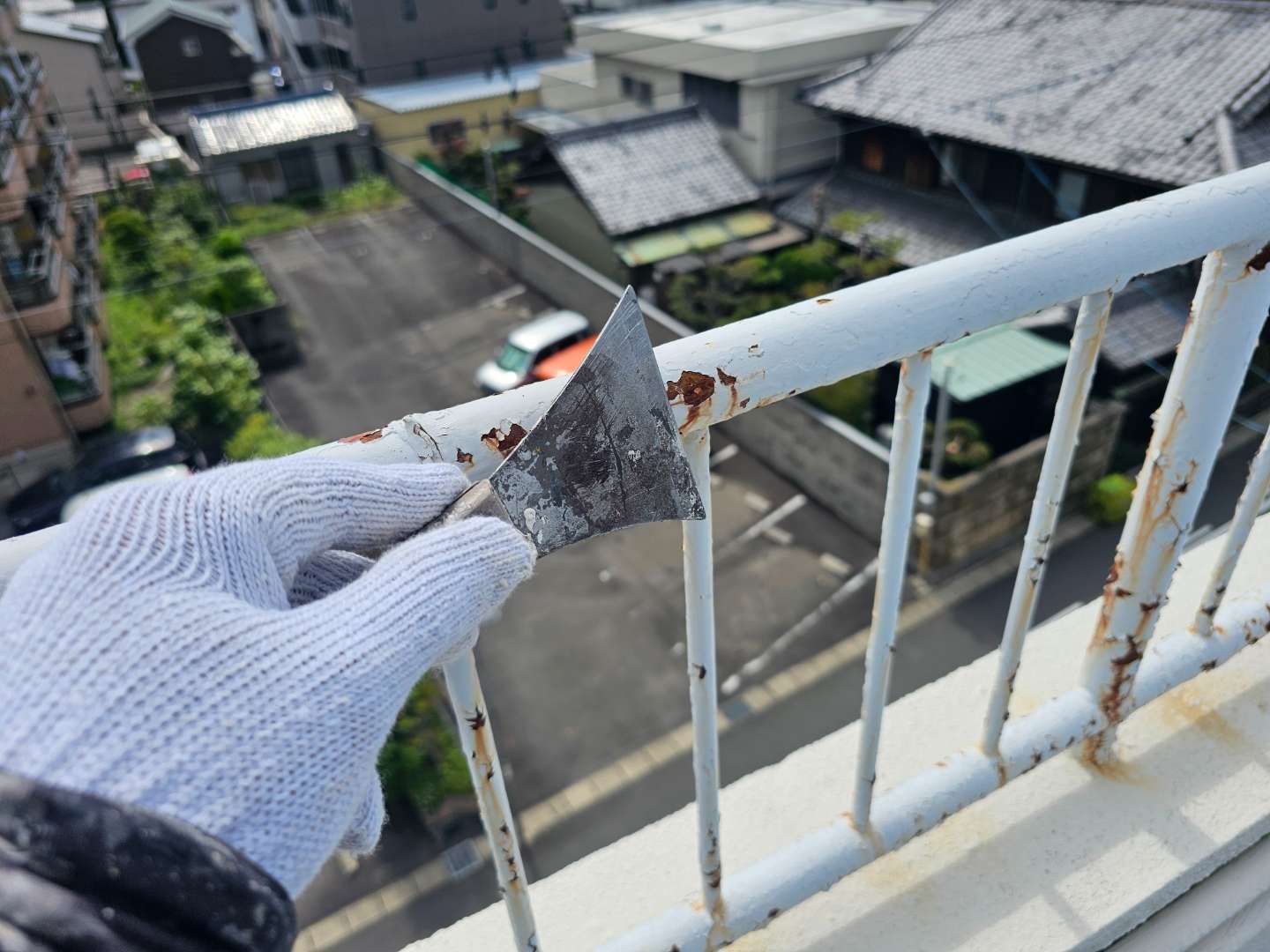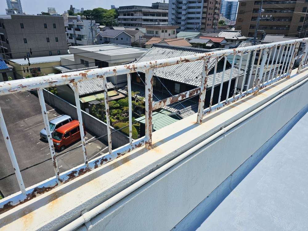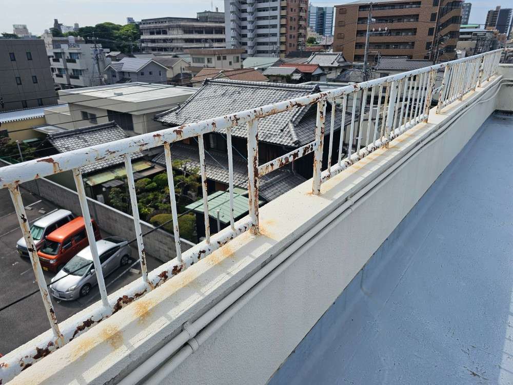 昨日の作業は、鉄部手摺のケレン作業・洗浄作業を行っていました。