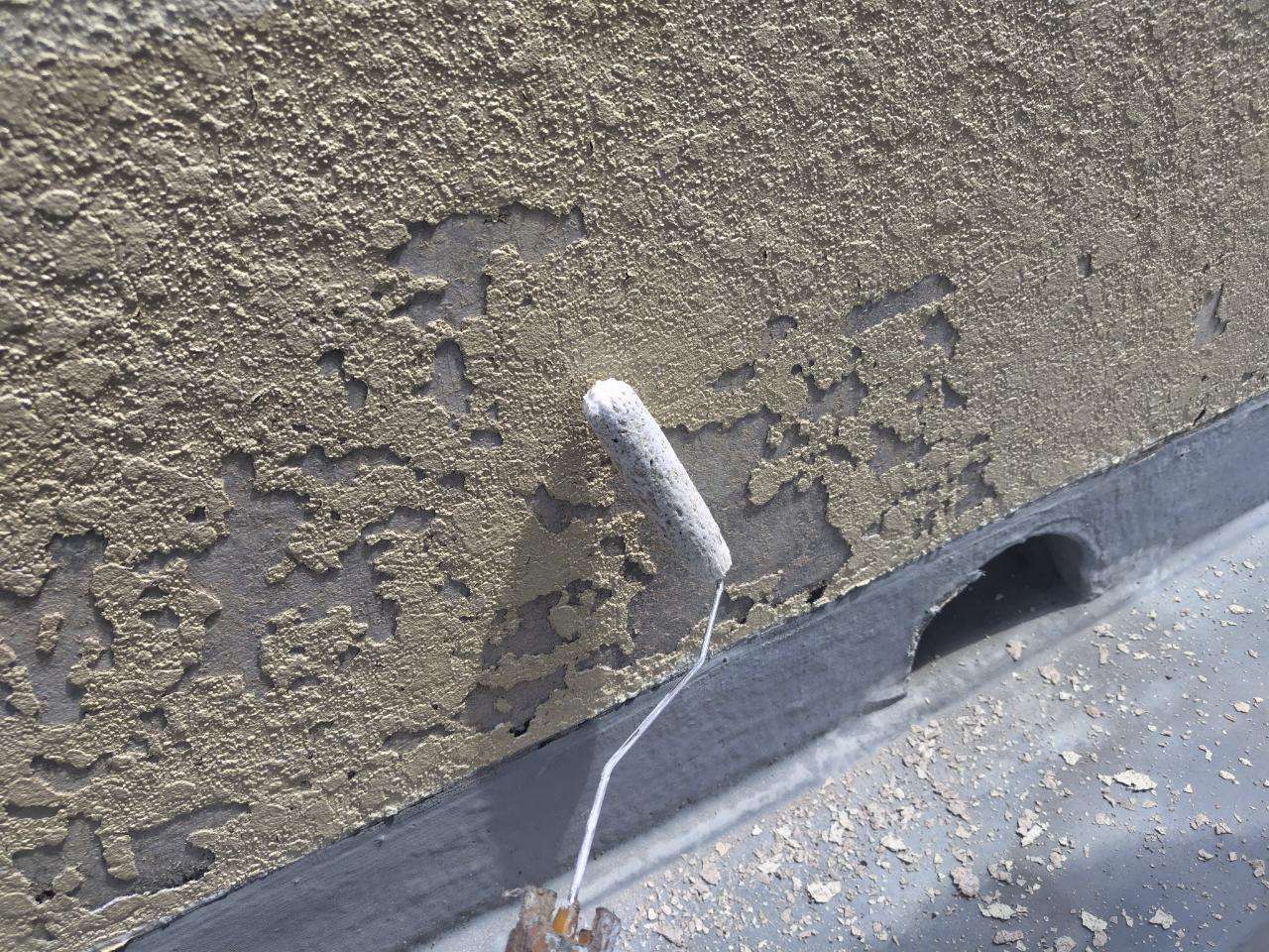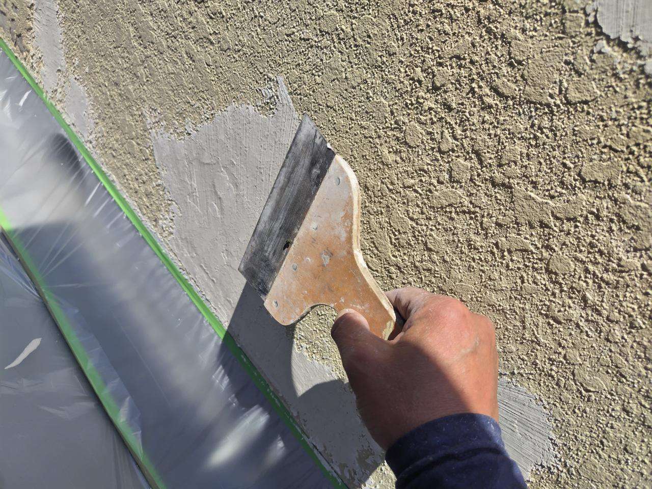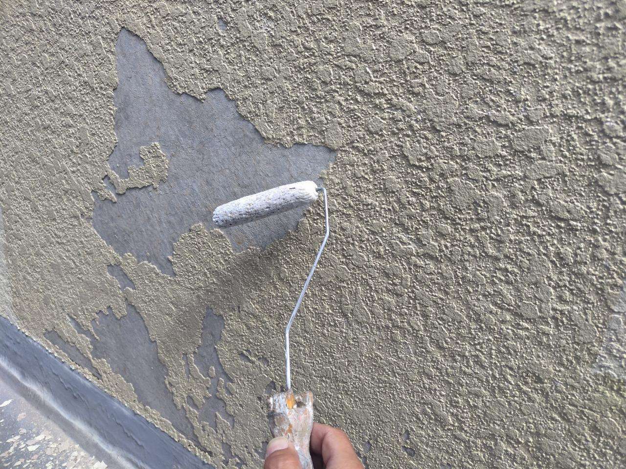O様邸の昨日の作業は、外壁の劣化部のケレン・シーラー・パテ補修作業と養生作業を行っていました。