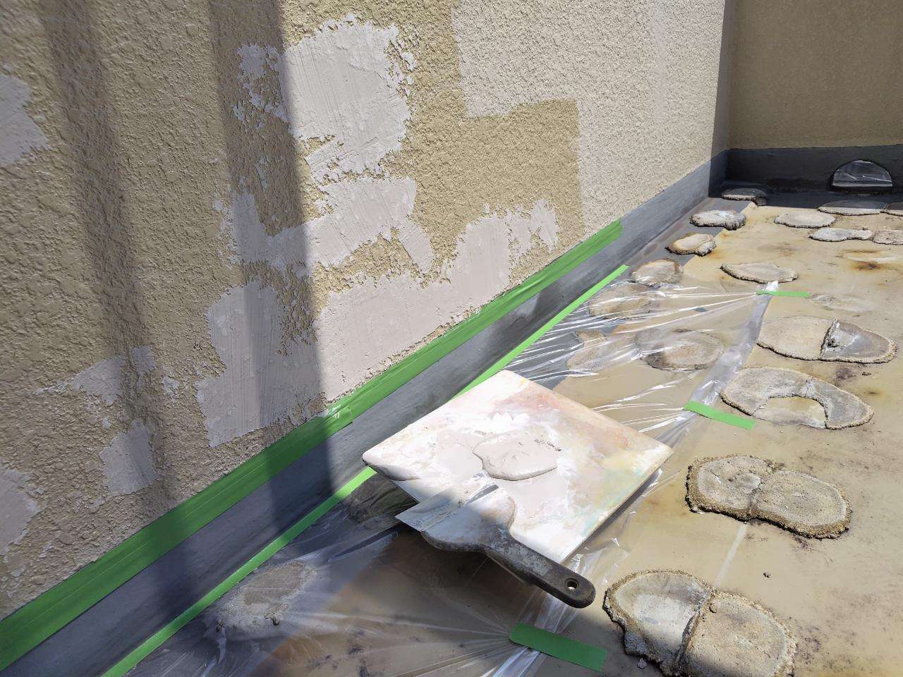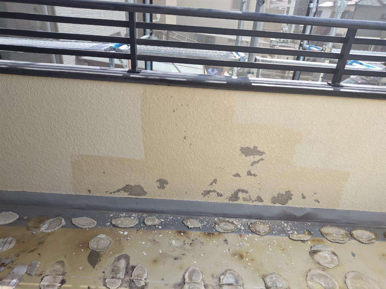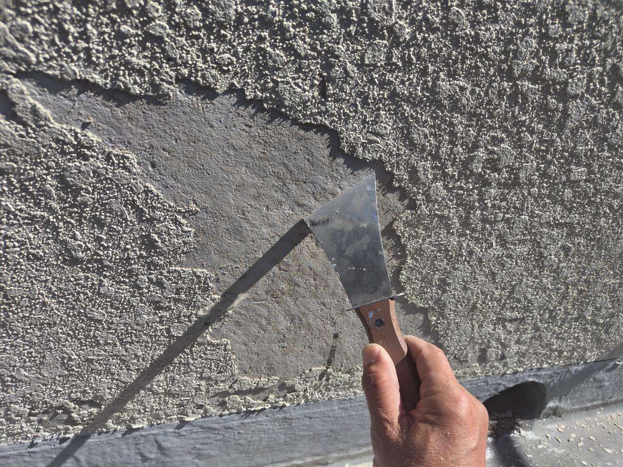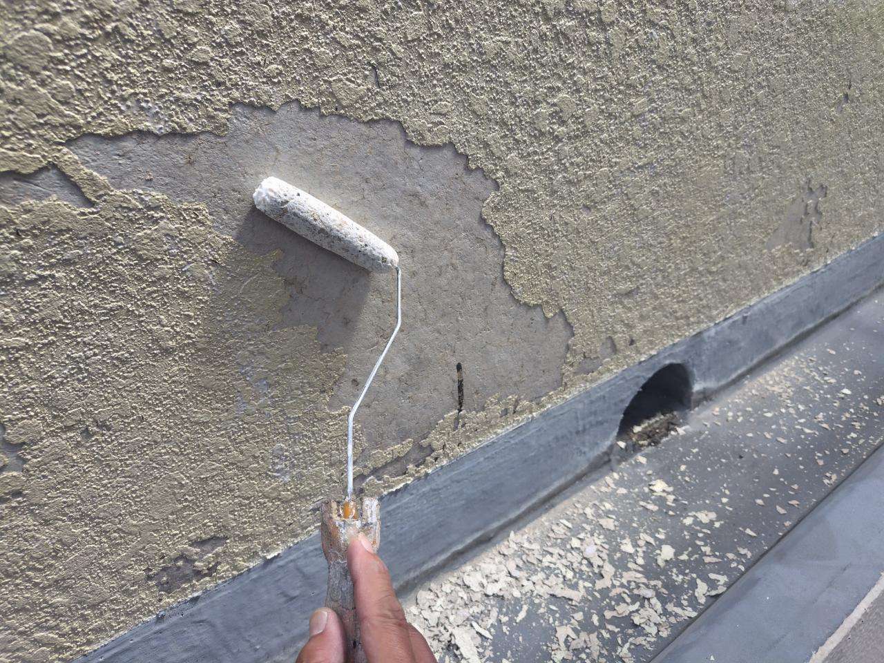 O様邸の昨日の作業は、外壁の劣化部のケレン・シーラー・パテ補修作業と養生作業を行っていました。