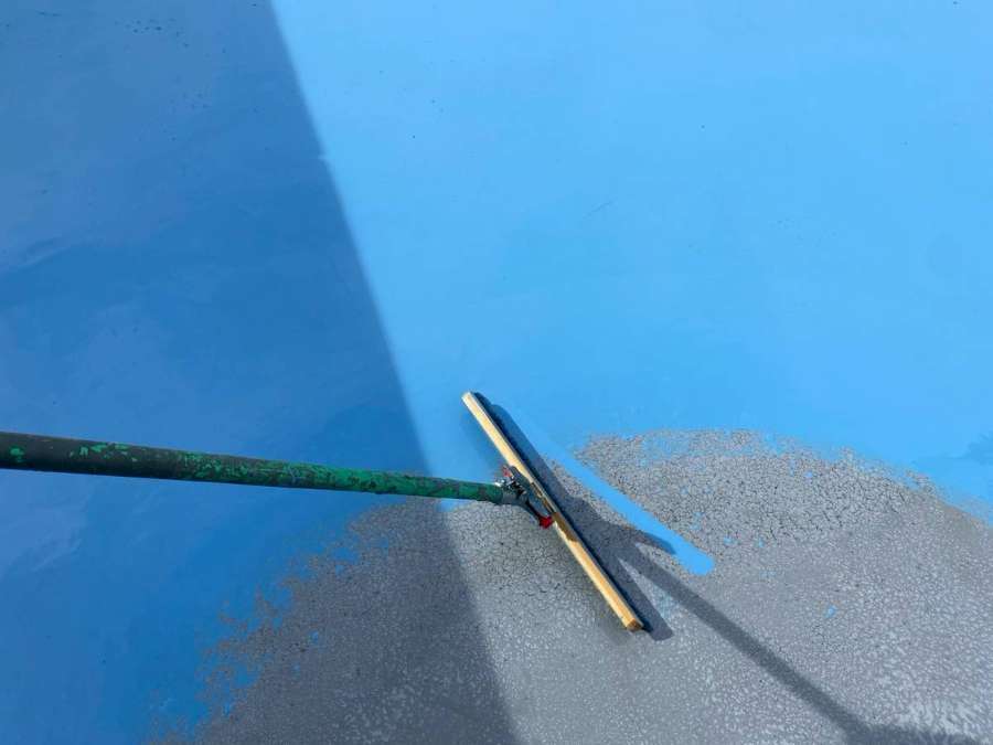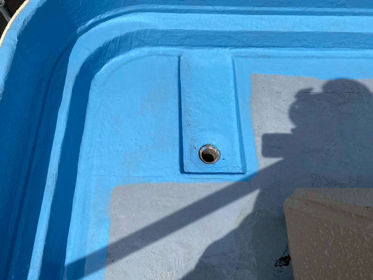 立上り・側溝部ウレタン樹脂2層目塗装作業