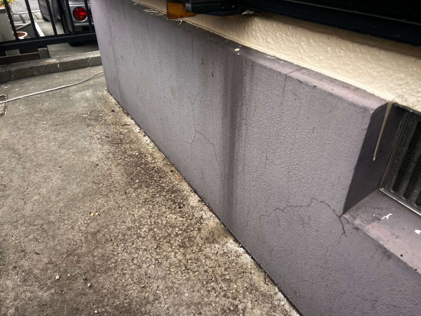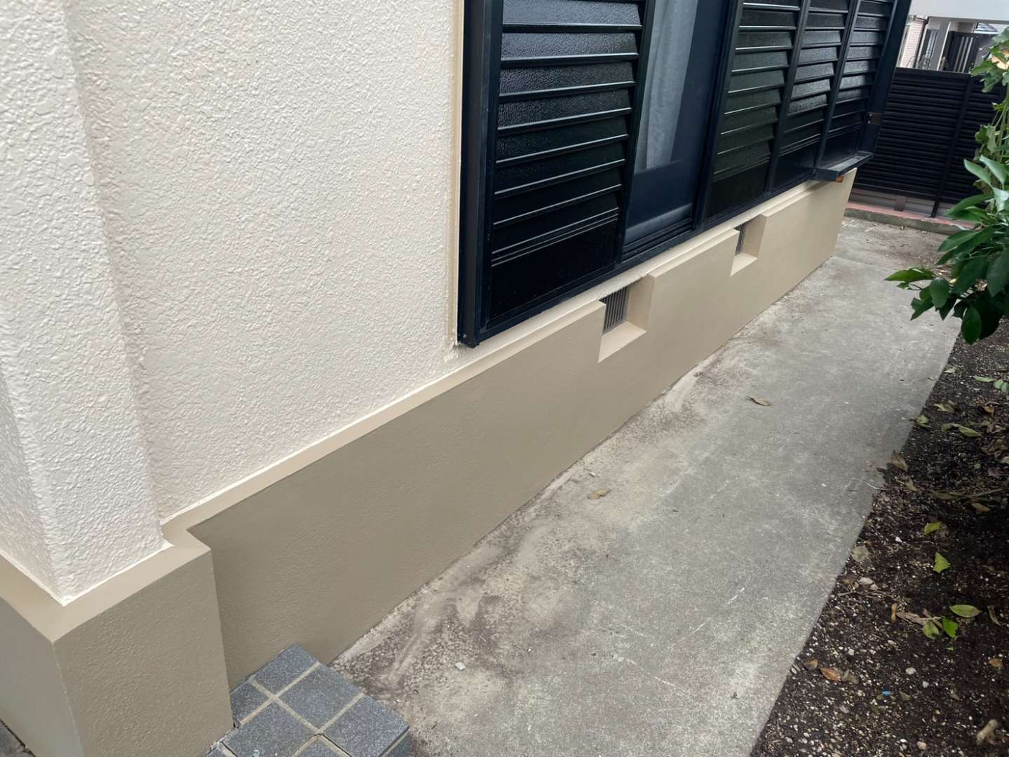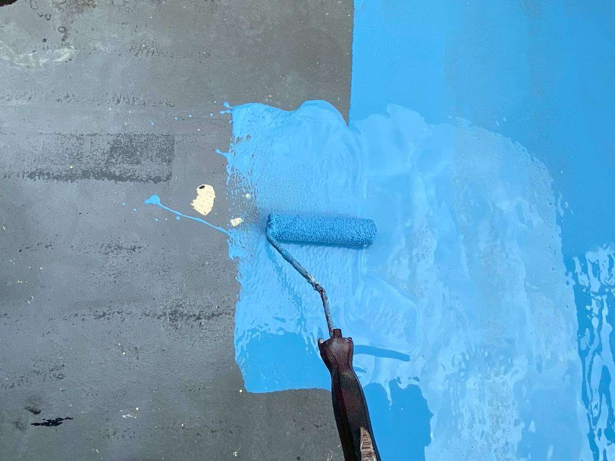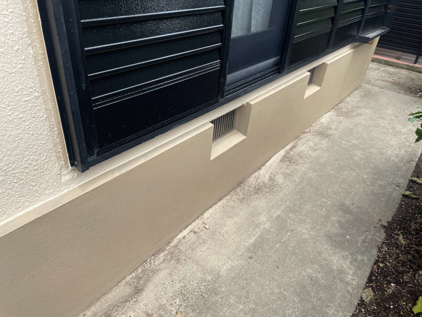 ベランダのウレタン防水のプライマー塗装、立上り・側溝・平場部のウレタン樹脂1層目塗装、基礎・と塀の塗装作業を行っていました。