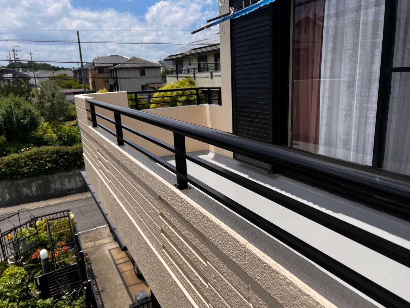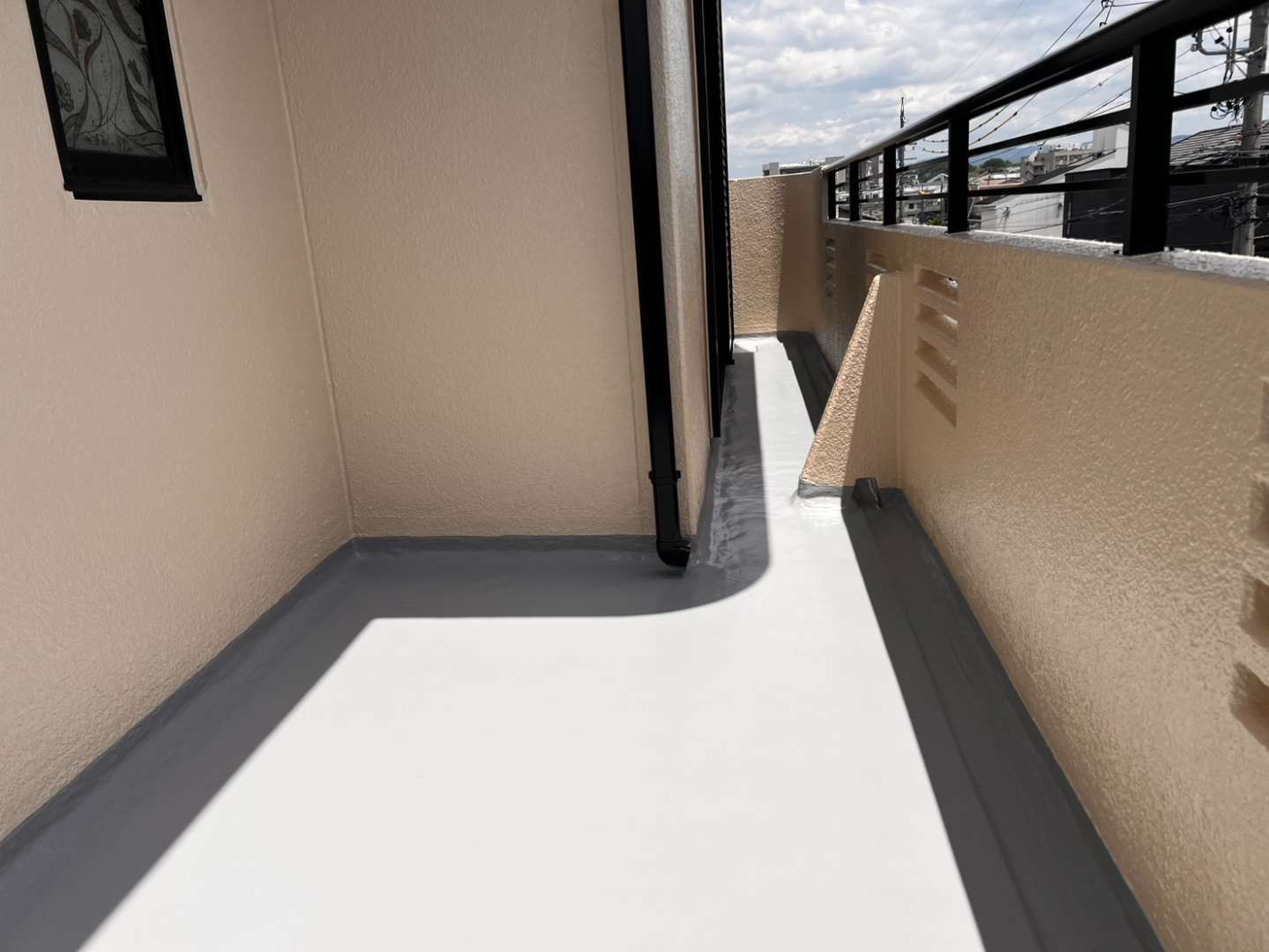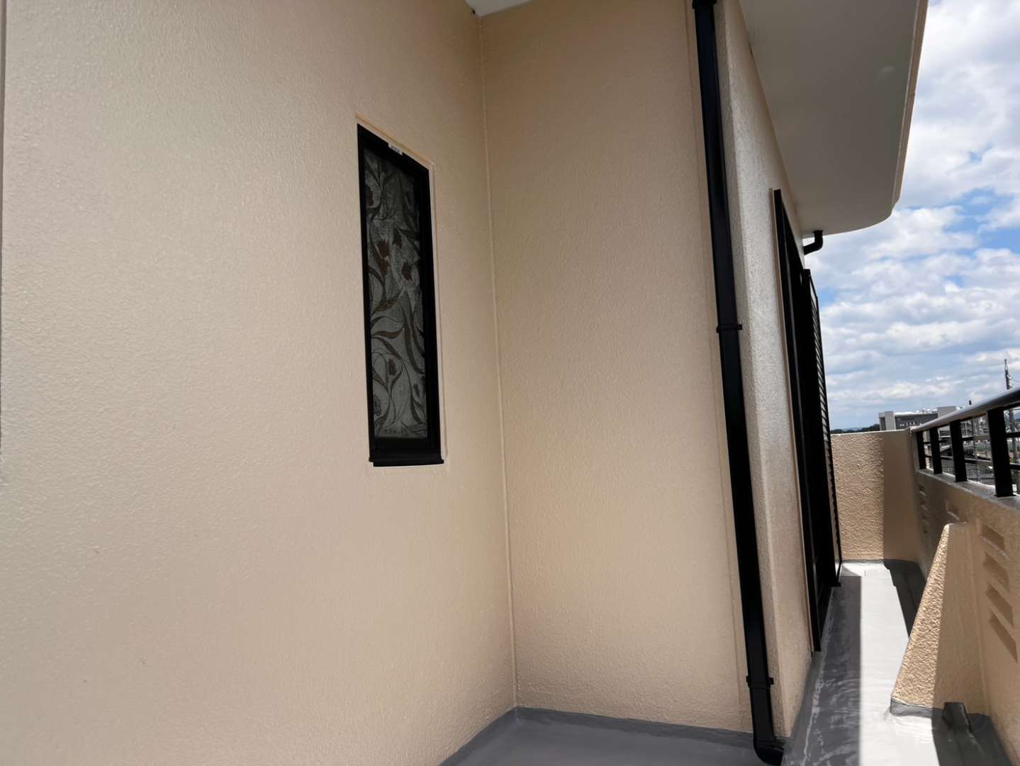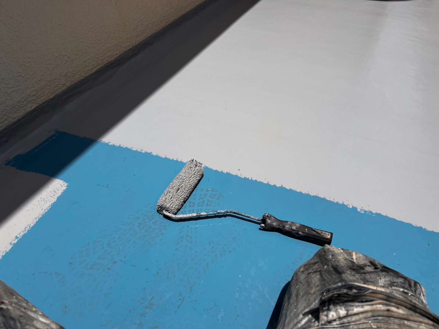 S様邸の作業は、ウレタン防水作業でベランダのトップコート塗装・1階部分の塗装の点検作業を行っていました。