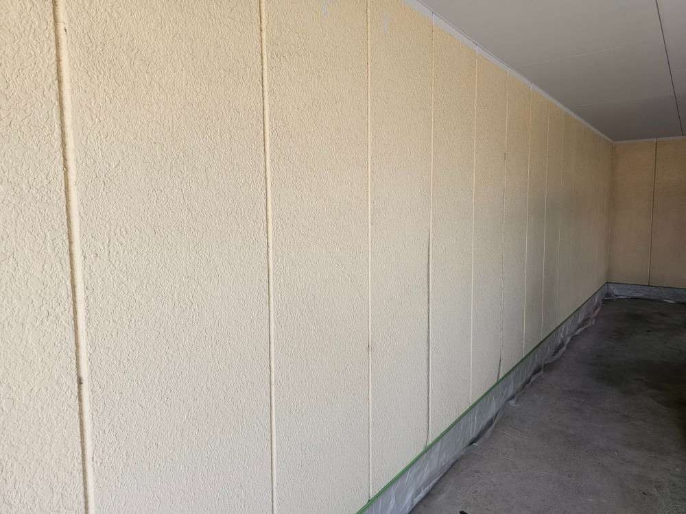 N様邸の昨日の作業は、駐車場外壁の下塗り塗装・ALC部の中塗り塗装・タイル部補修箇所の旧シーリング材撤去・ベランダ物干し金物の塗装作業を行っていました。