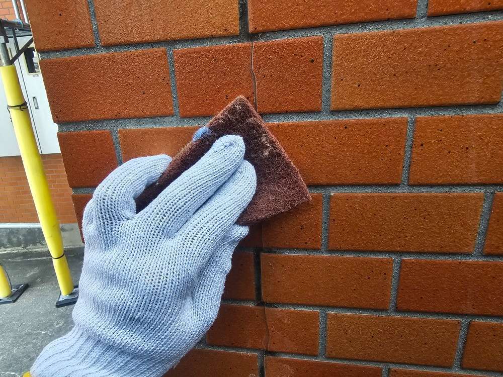 タイル補修部の旧シーリング材撤去作業