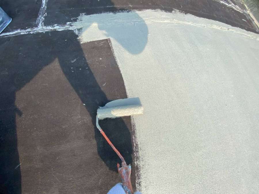 N様邸の今日の作業は、引き続きタイル部撥水剤塗装作業と屋上防水作業予定です。