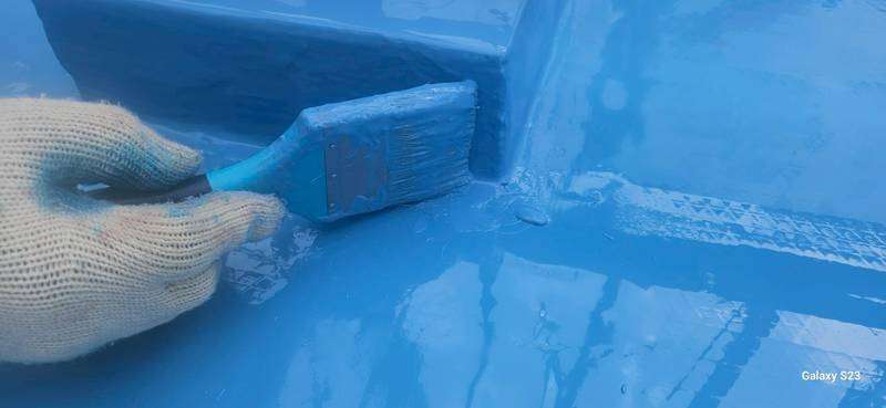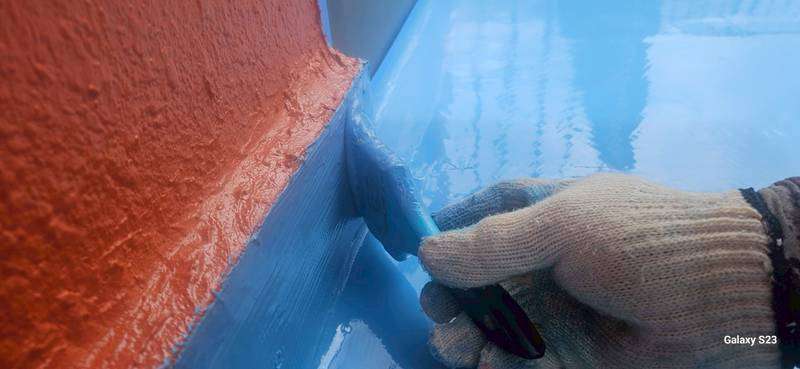 今日の作業も引き続き防水作業を行っています。
