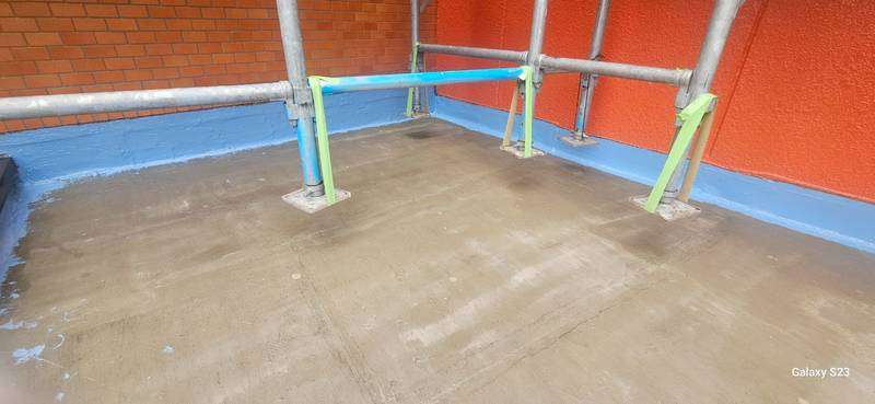 N様邸の作業は、防水作業を行っており、ペントハウス部・階段上部のウレタン樹脂1層目塗装と屋上のウレタン樹脂2層目塗装作業まで完了しています。