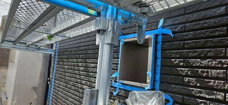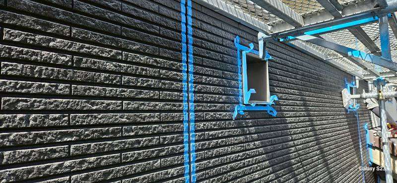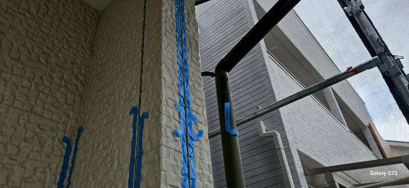 長浜市のI様邸の昨日の作業内容は、コーキング(シーリング)打替え工事の旧シーリング材撤去作業、シーリング養生テープ貼り作業、鼻隠し板部のシーリング作業を行っています。