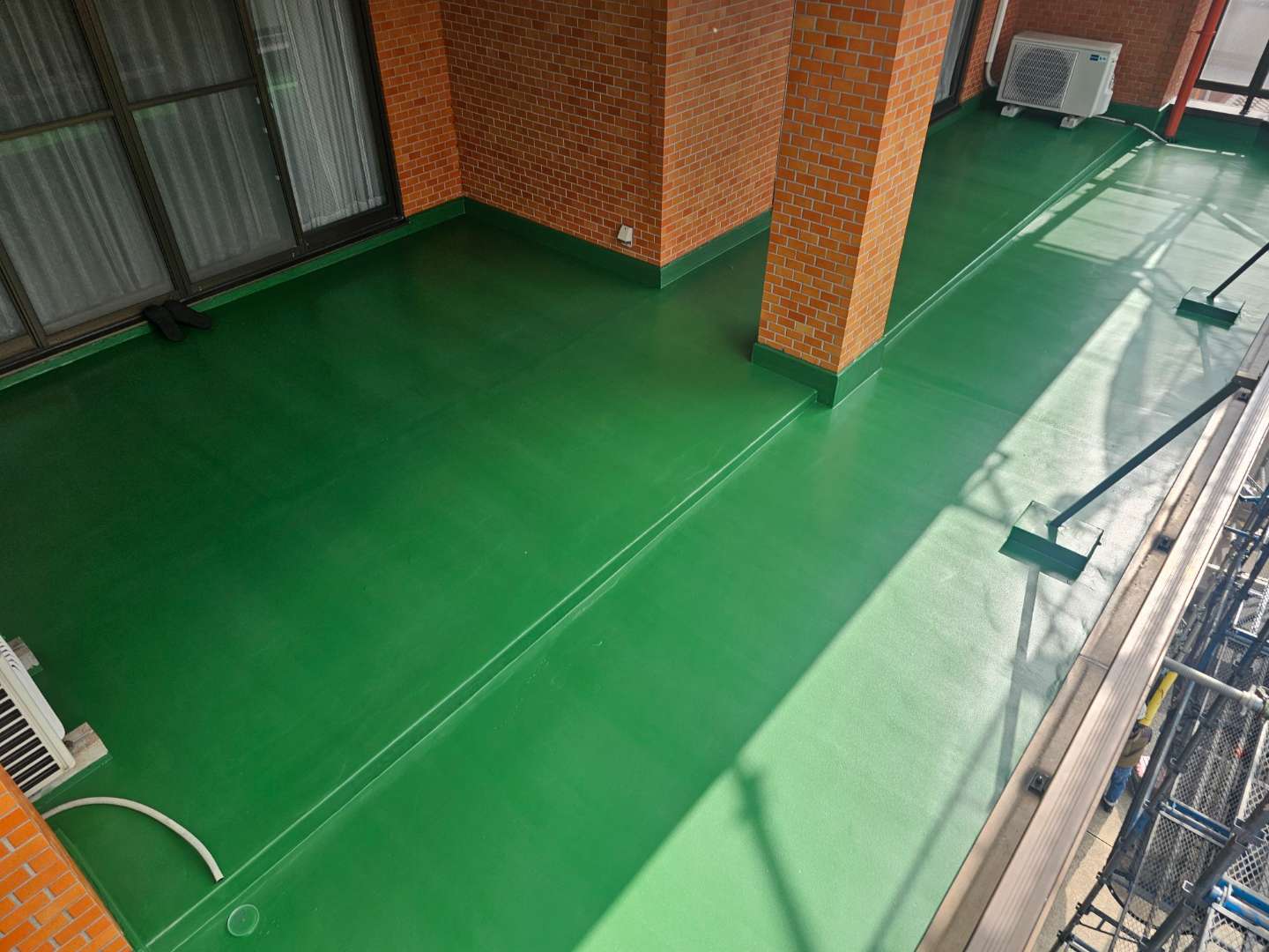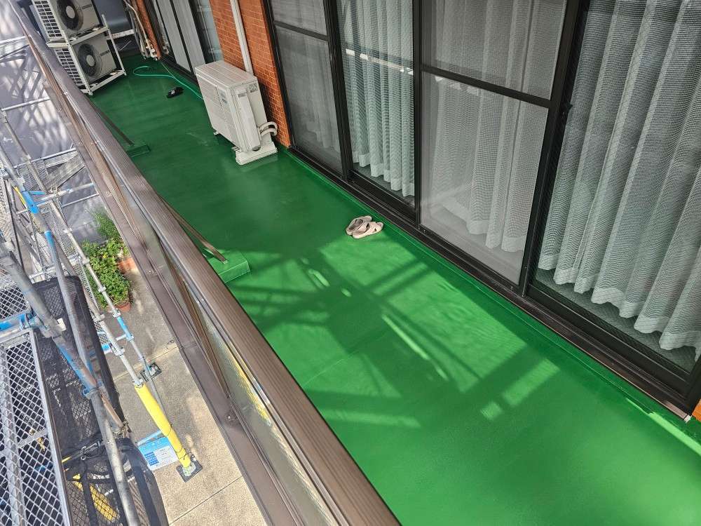 港区のI様邸の作業内容は、タイル割れ部クリヤーコーキング(シーリング)作業と塗装部の点検作業を行っています。