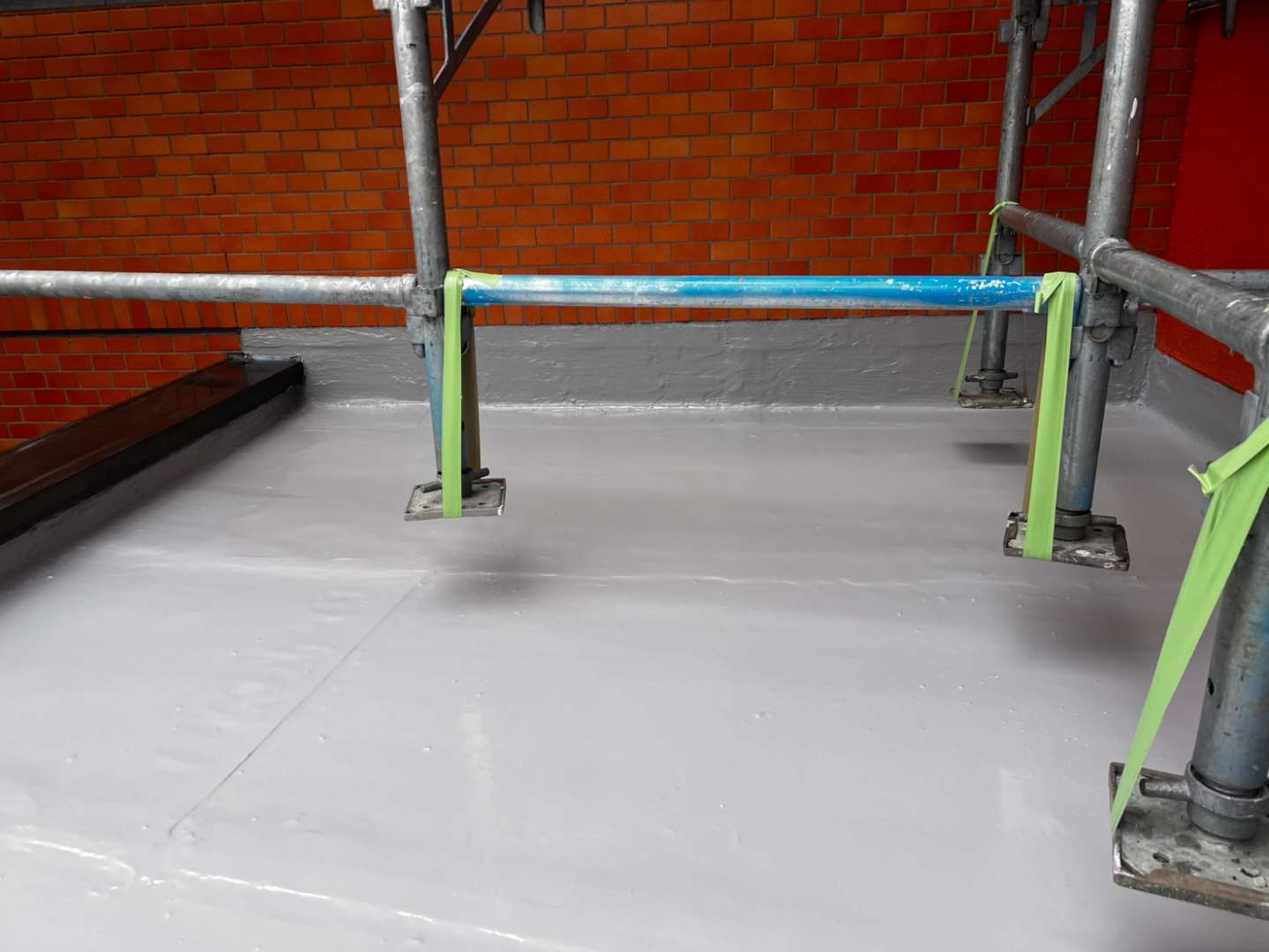 港区のN様邸の今日の作業は、基礎部のコーキング作業と仮設足場解体作業中です。