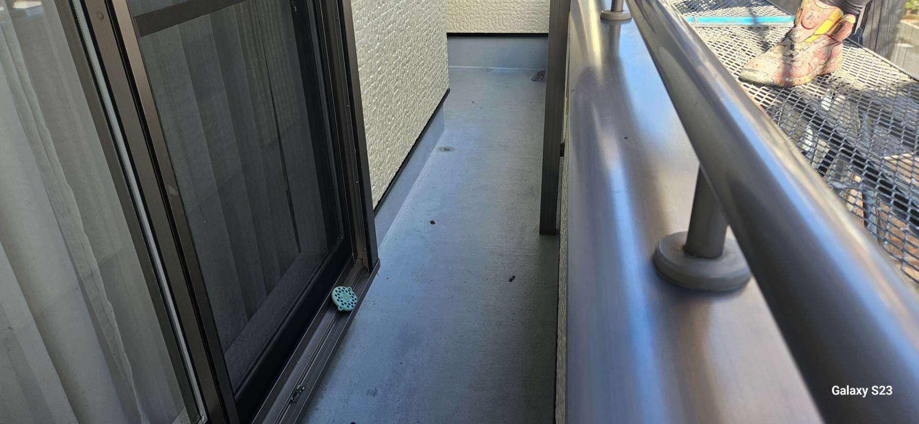 今日の作業は、引き続きベランダの塗装作業予定です。