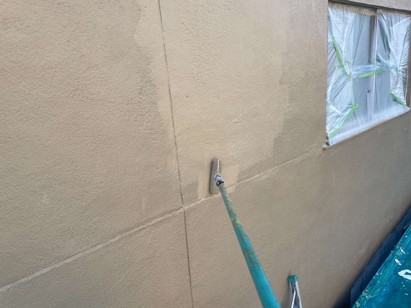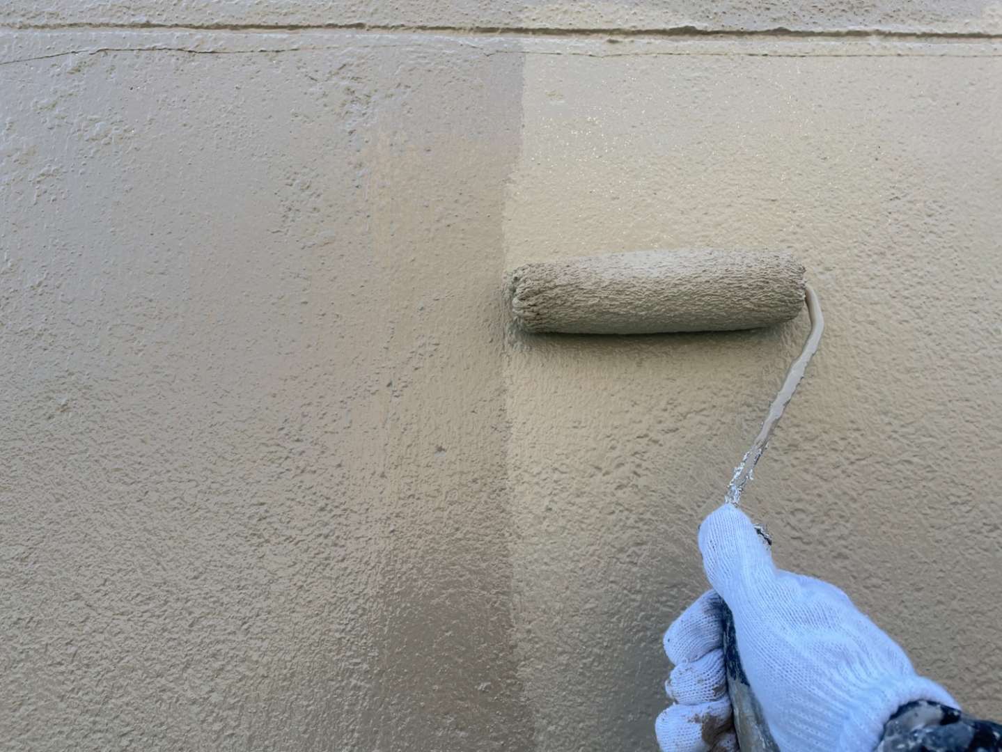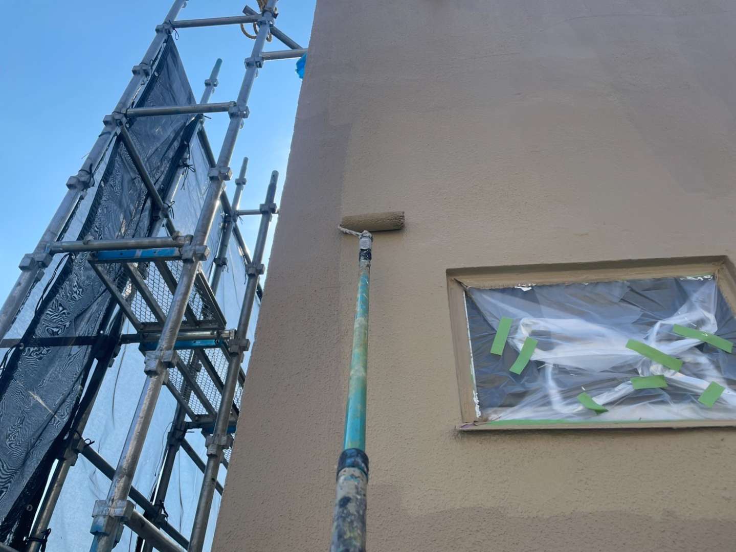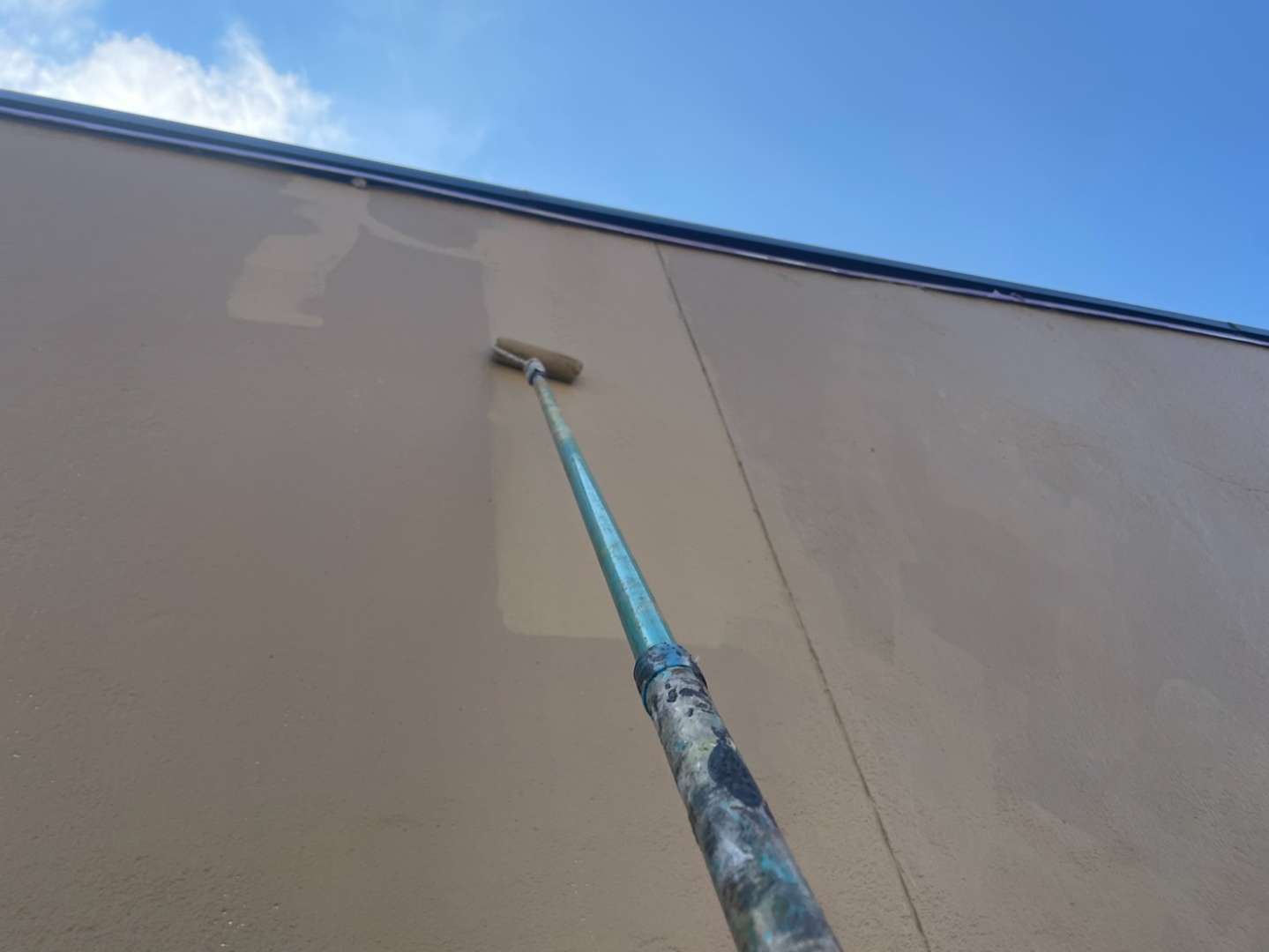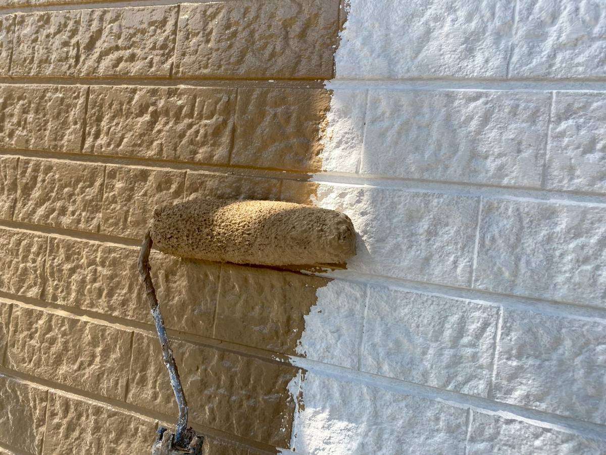 N様邸の昨日の作業は、外壁の中塗り塗装・上塗り塗装作業を行っていました。