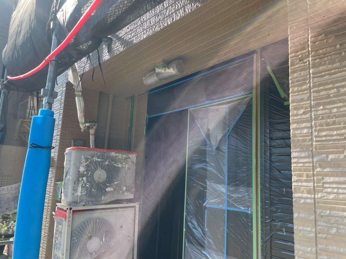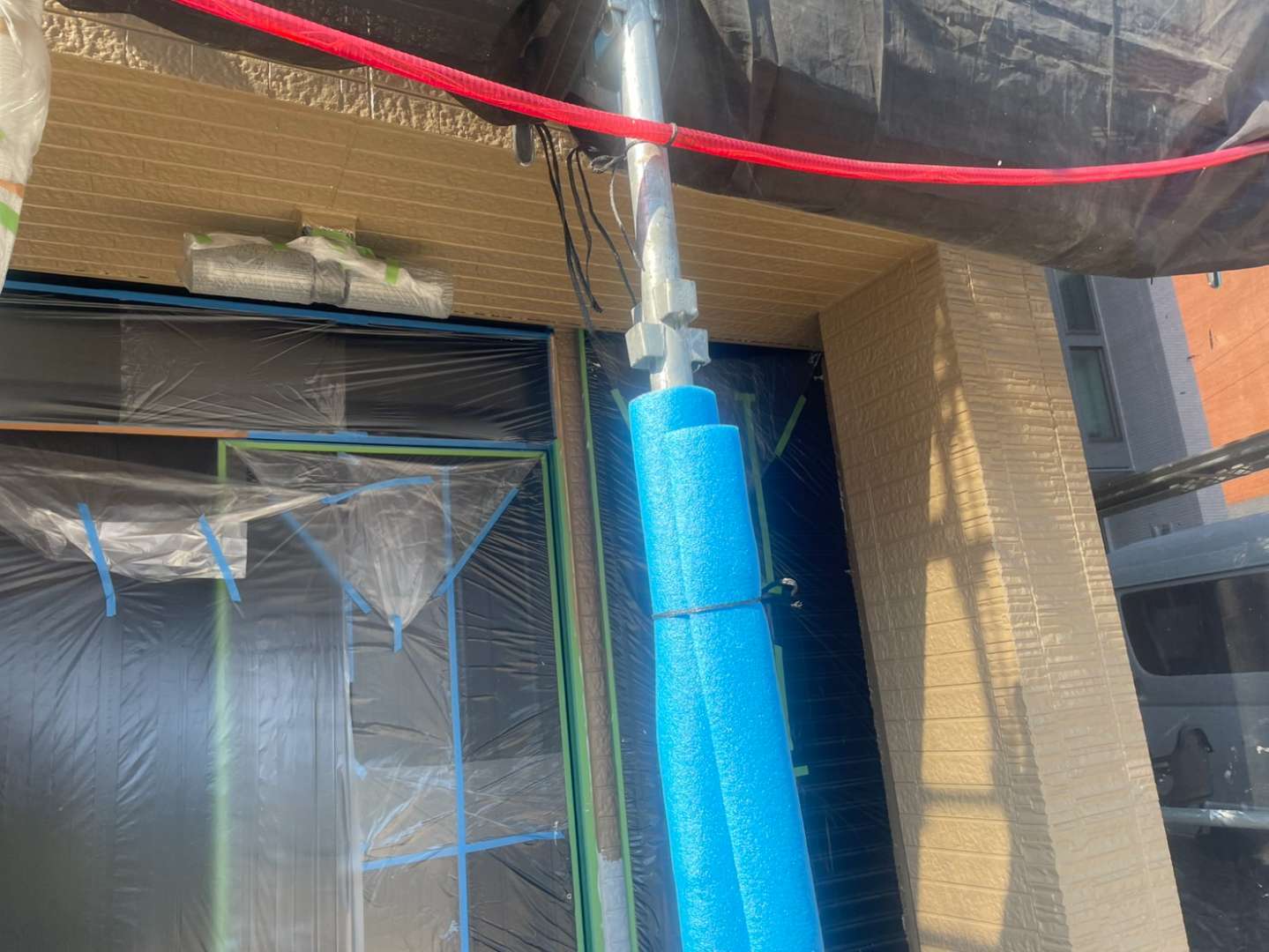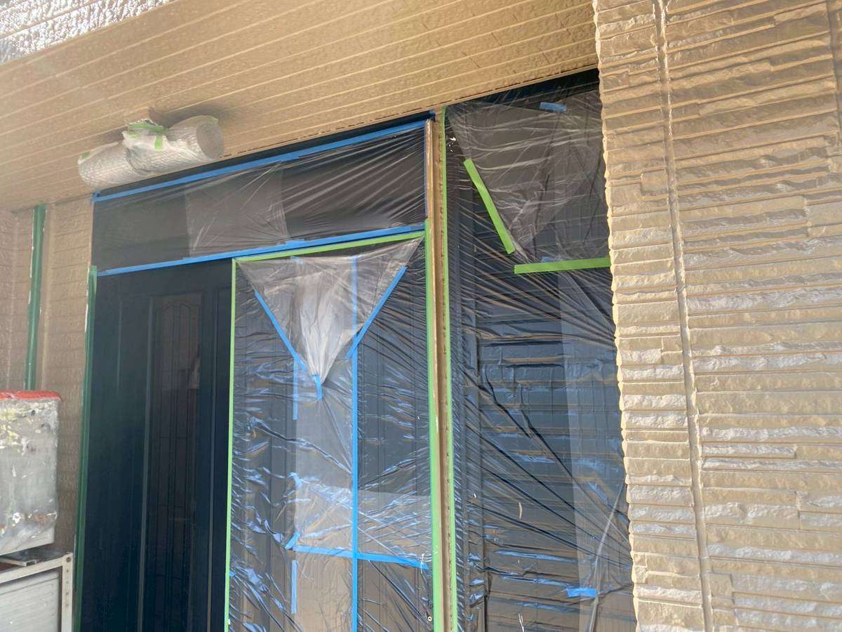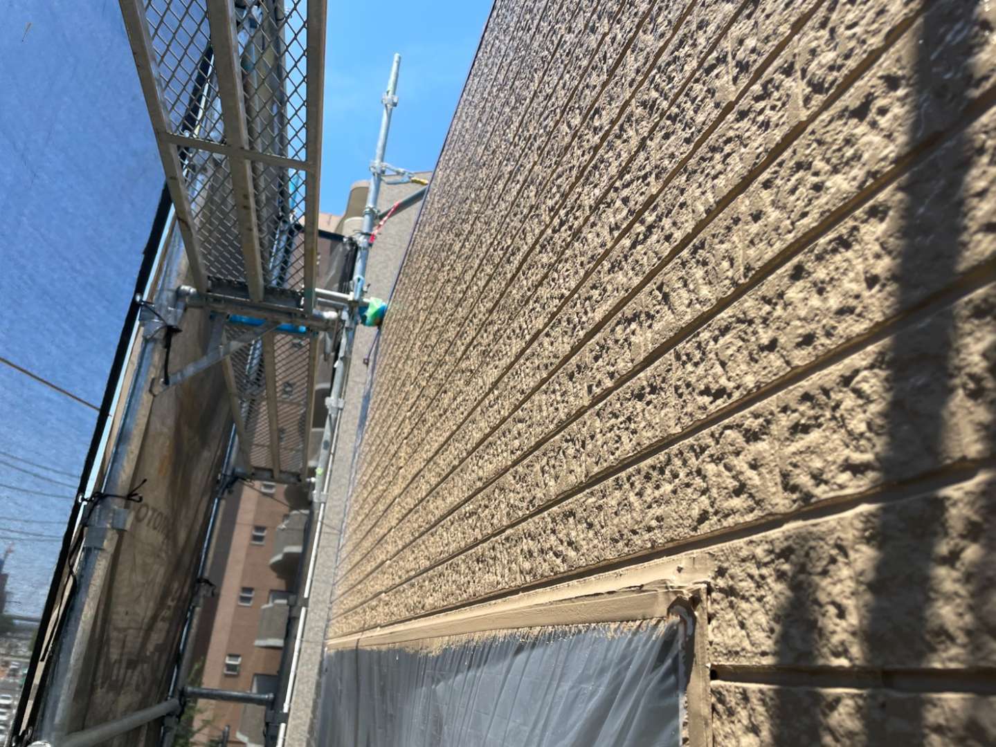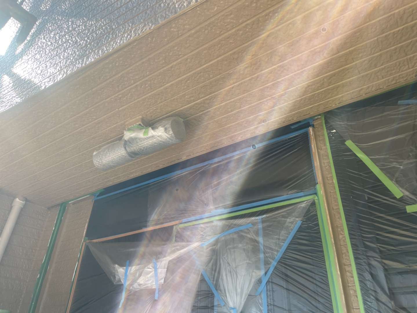 N様邸の昨日の作業は、外壁の中塗り塗装・上塗り塗装作業を行っていました。