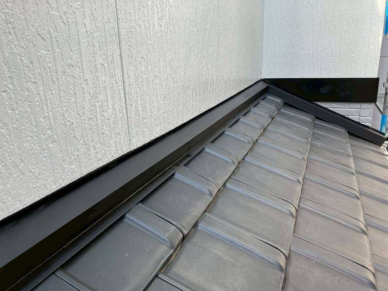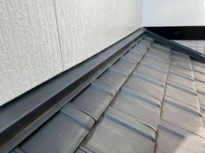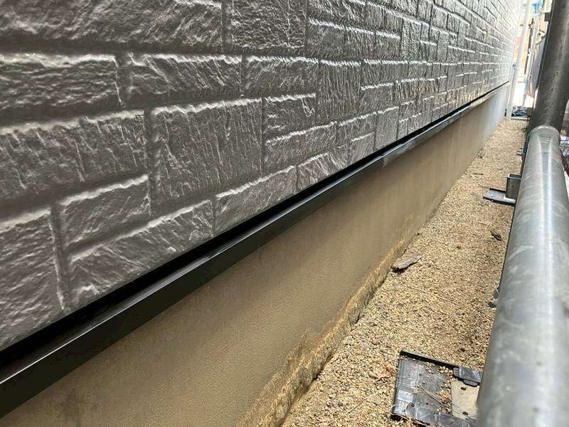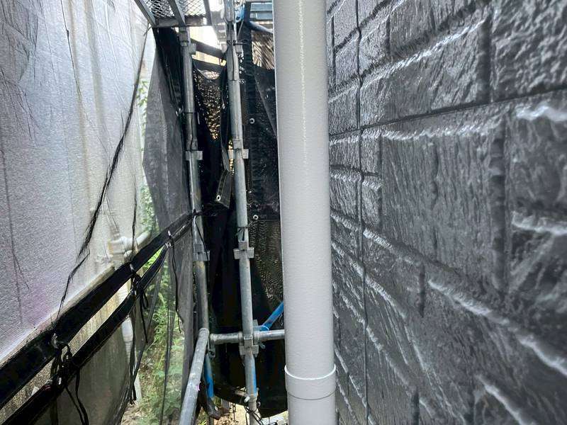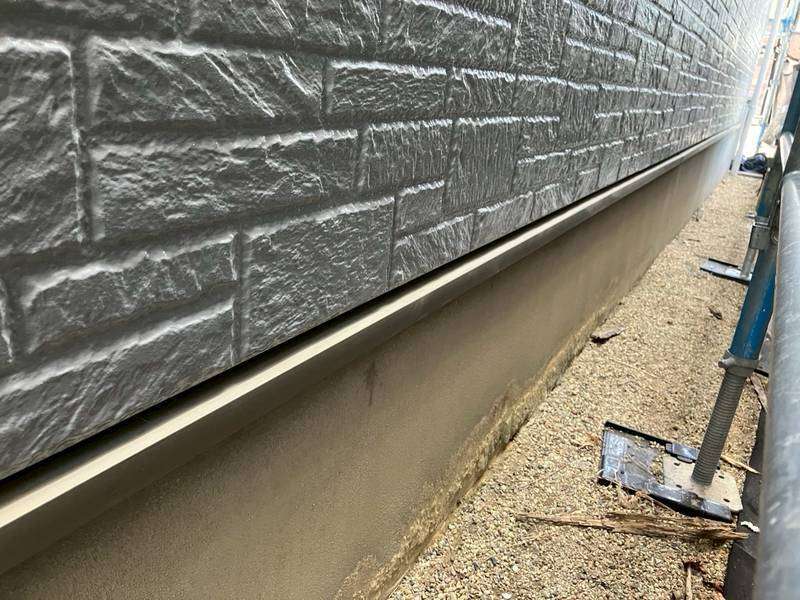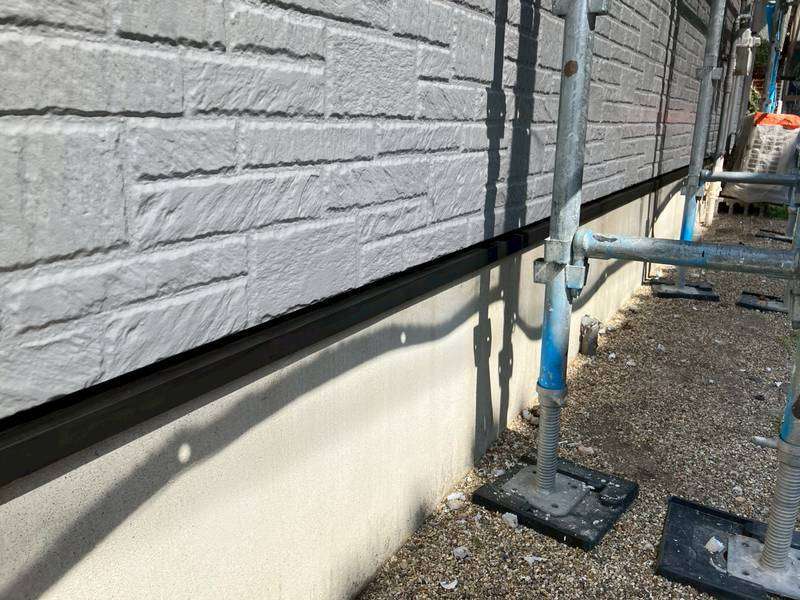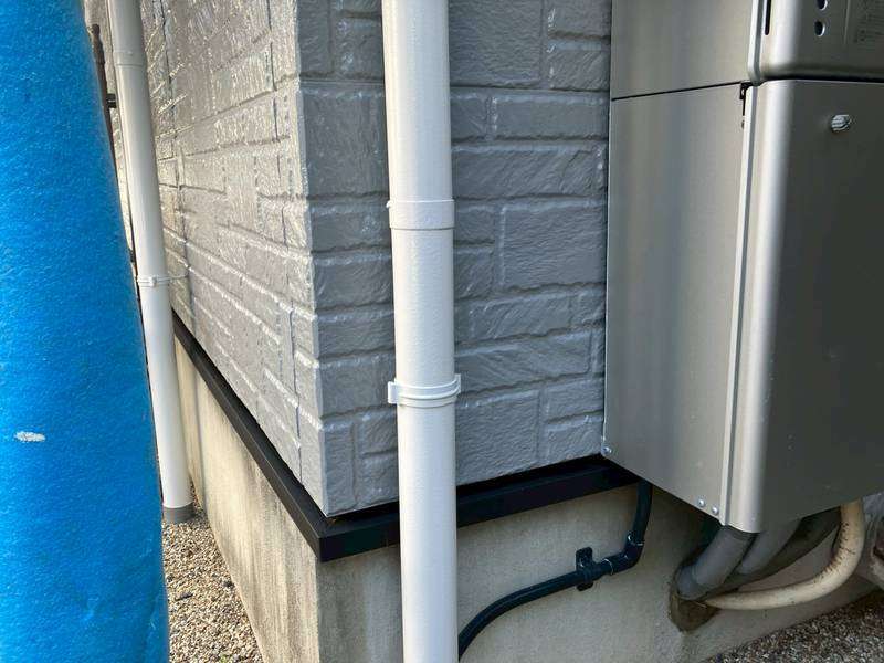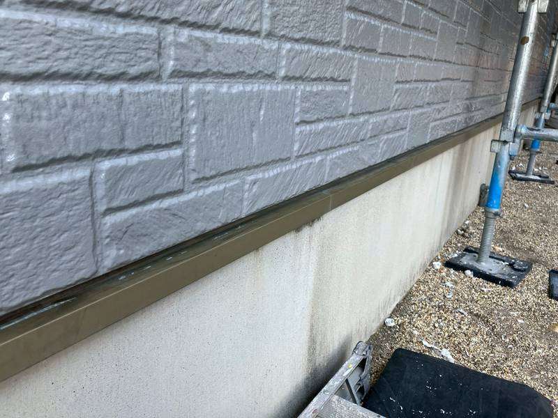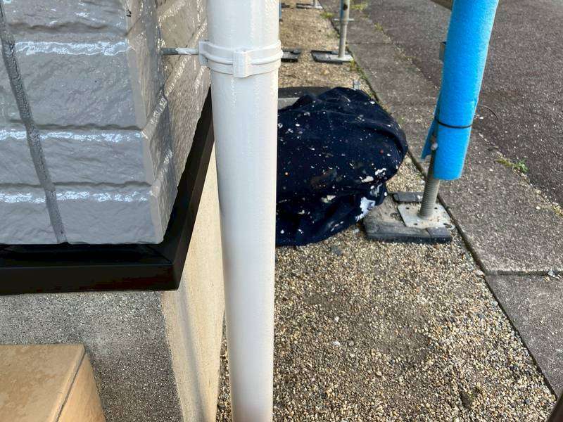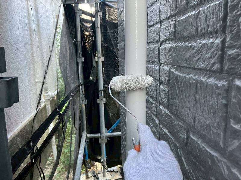 破風板・鼻隠し板・軒樋の上塗り2回目塗装、水切りの下塗り(錆止め)塗装、雨樋の上塗り1回目・2回目塗装です。