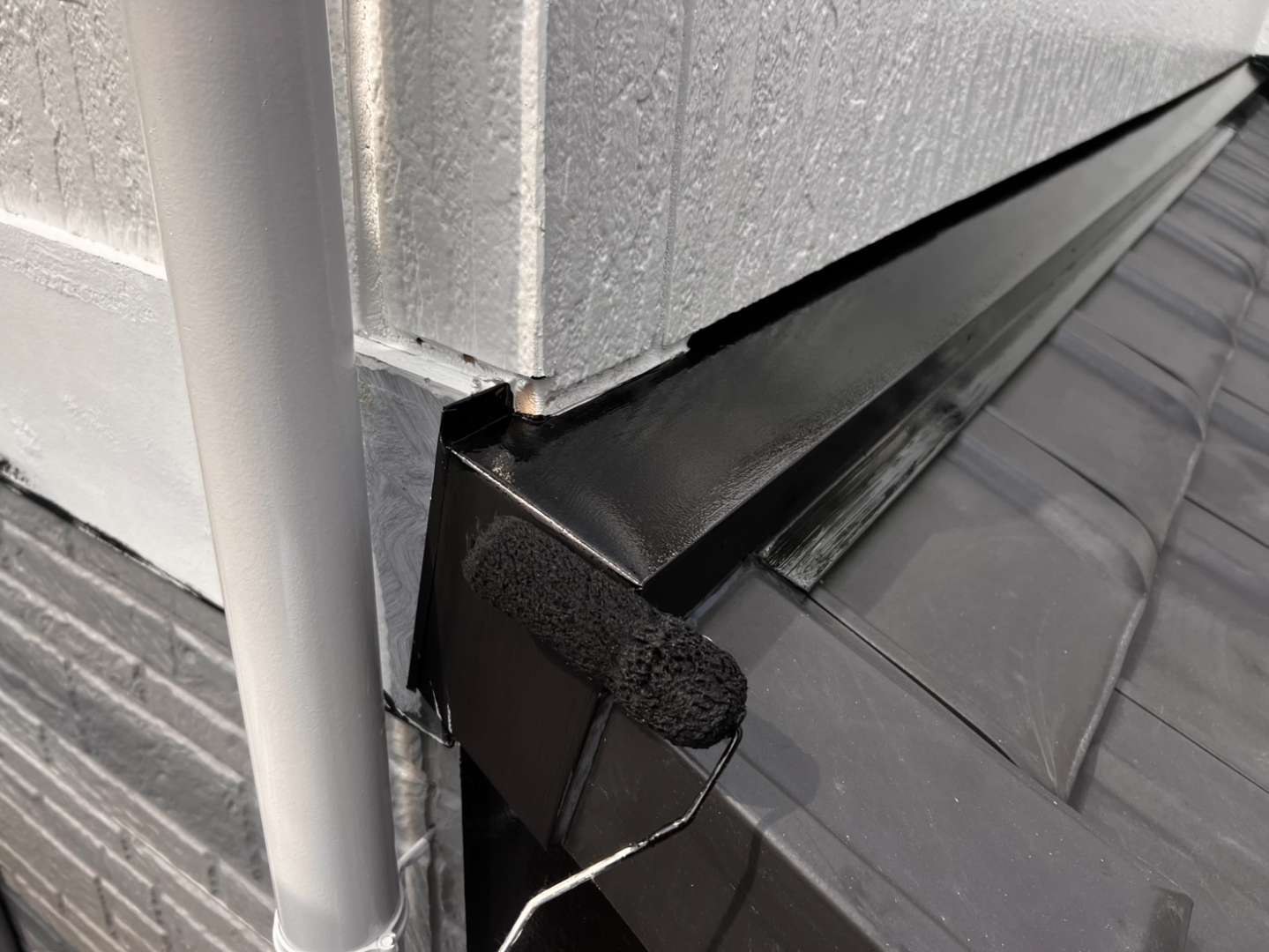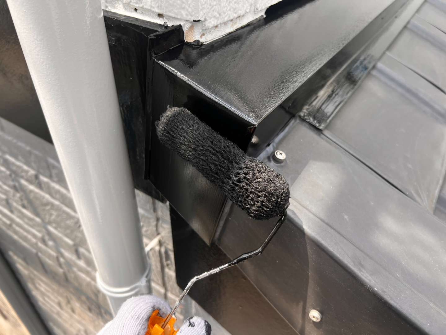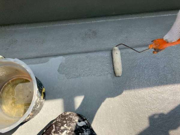 T様邸の昨日の作業は、付帯部(シャッターボックス・帯・水切り)塗装・ベランダウレタン防水工事のプライマー塗装作業を行っていました。